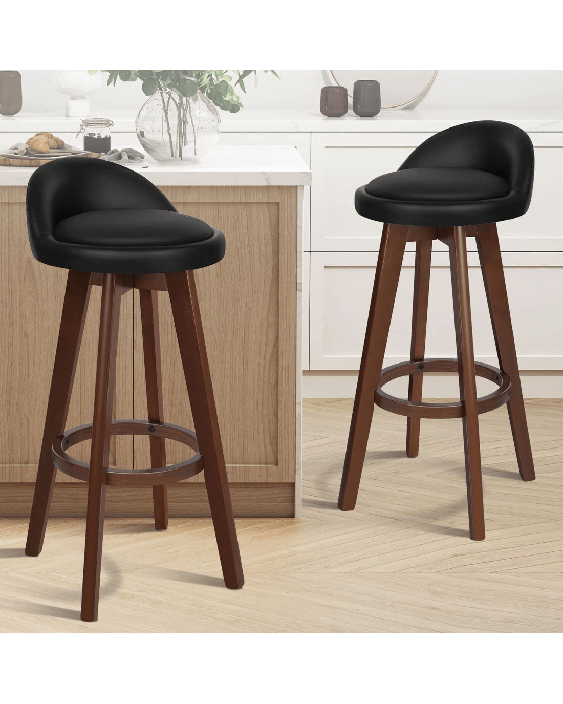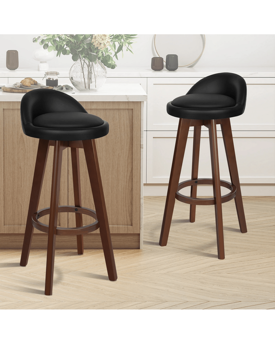 Sold by Aussie Union GroupAlfordson 2x Bar Stools Liam Kitchen Wooden Swivel Chairs Black - Black