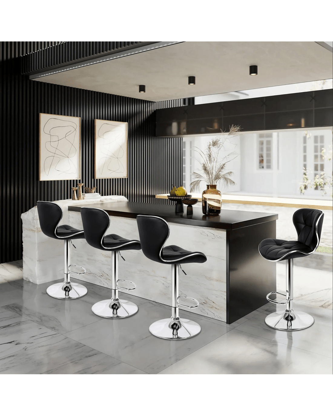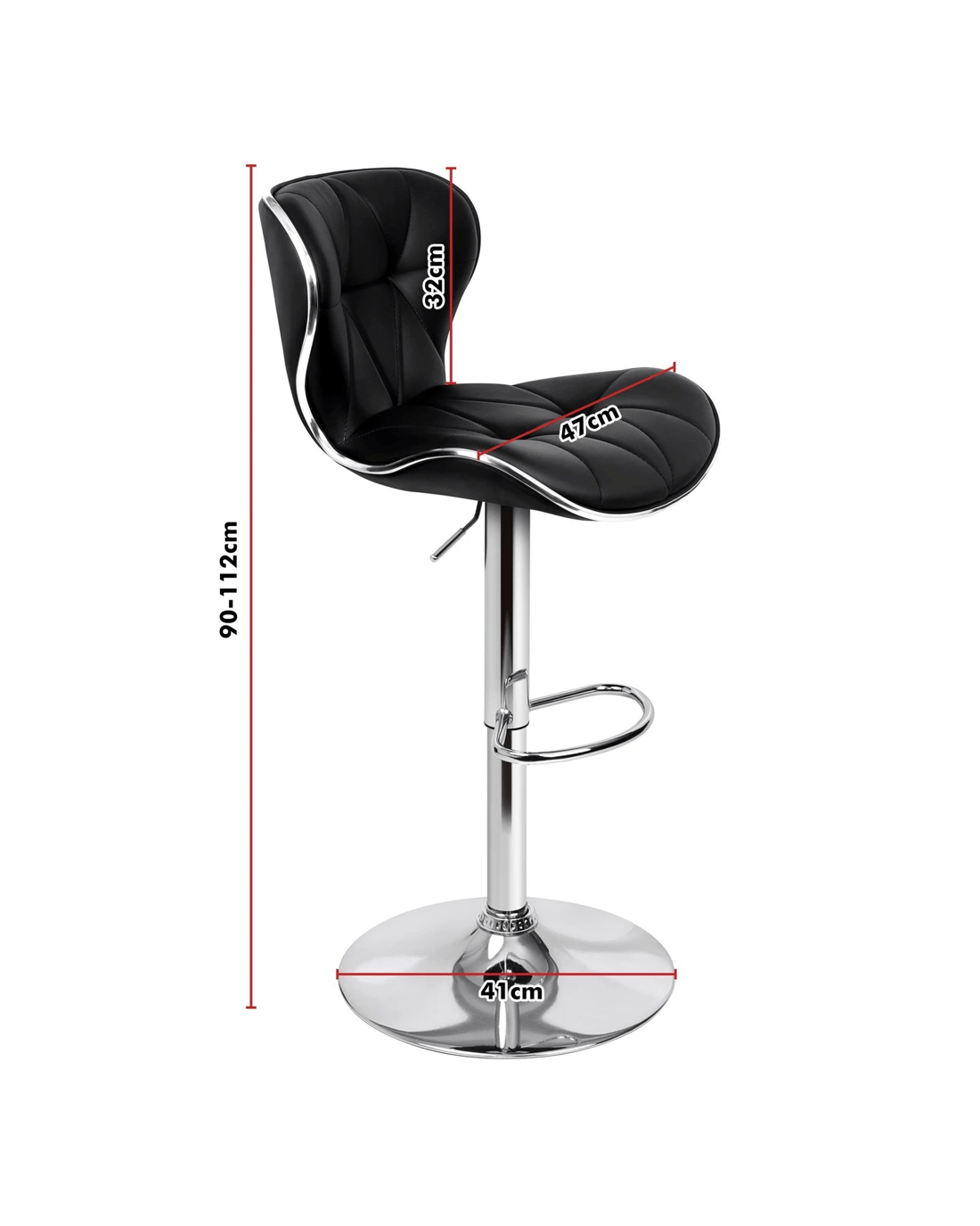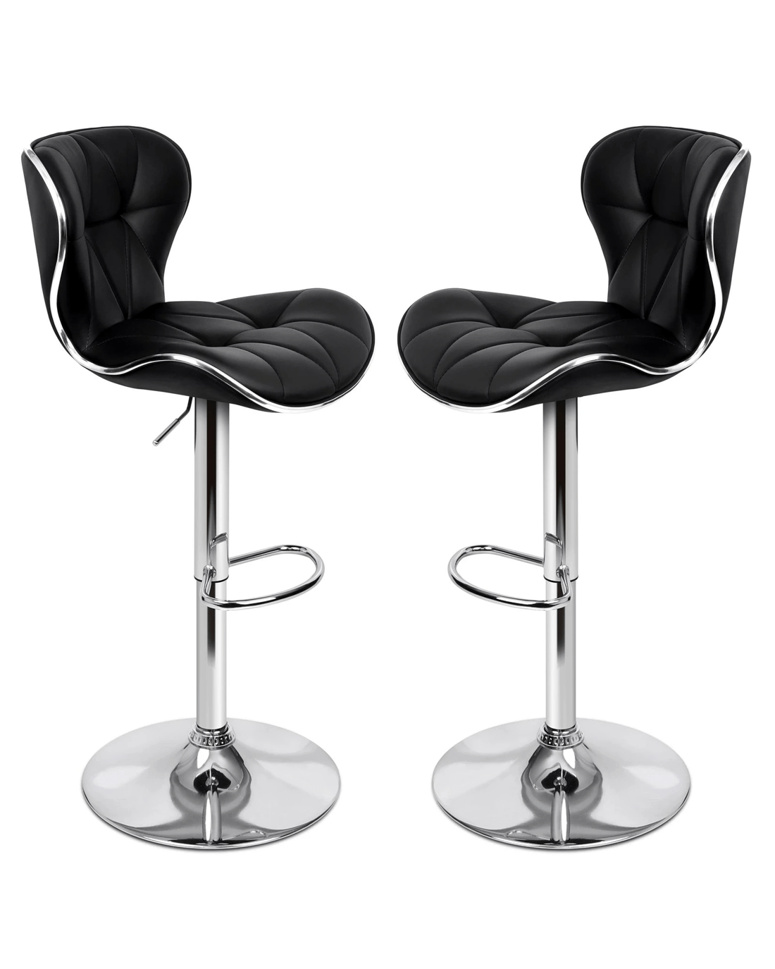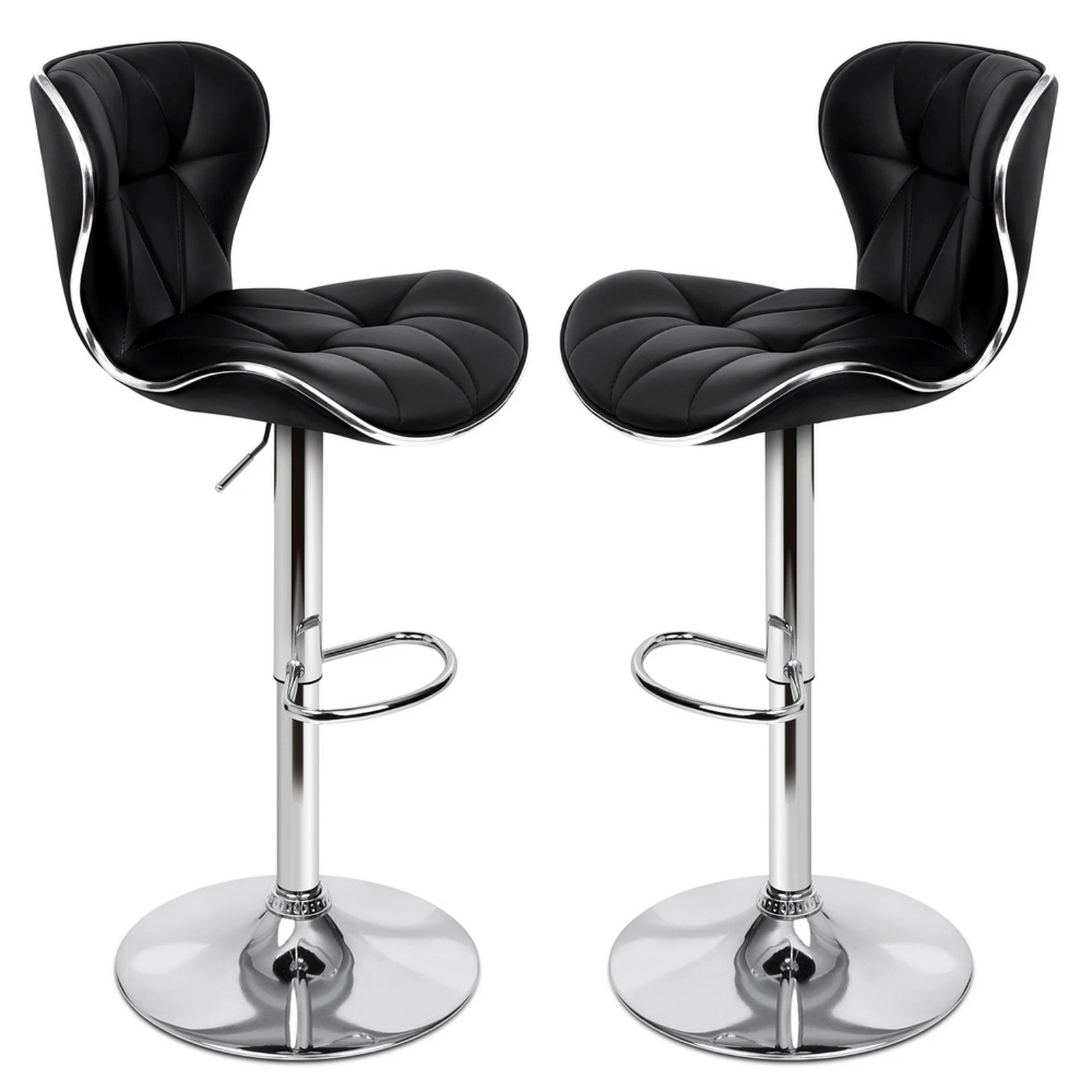 Alfordson 2x Bar Stools Luna Kitchen Swivel Chair Leather Gas Lift - Black