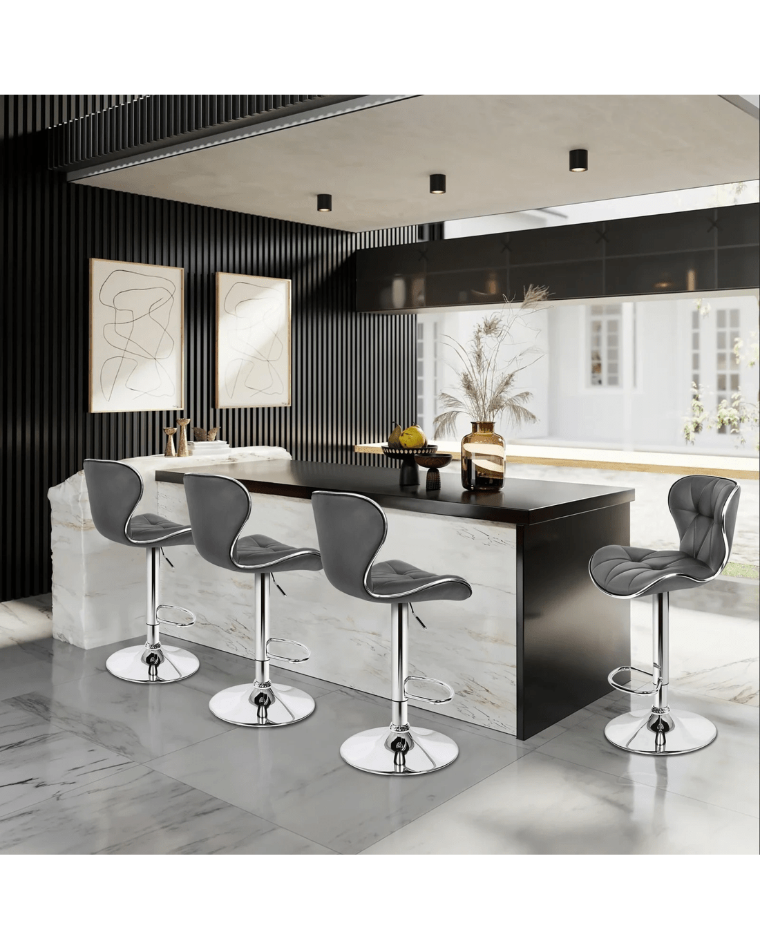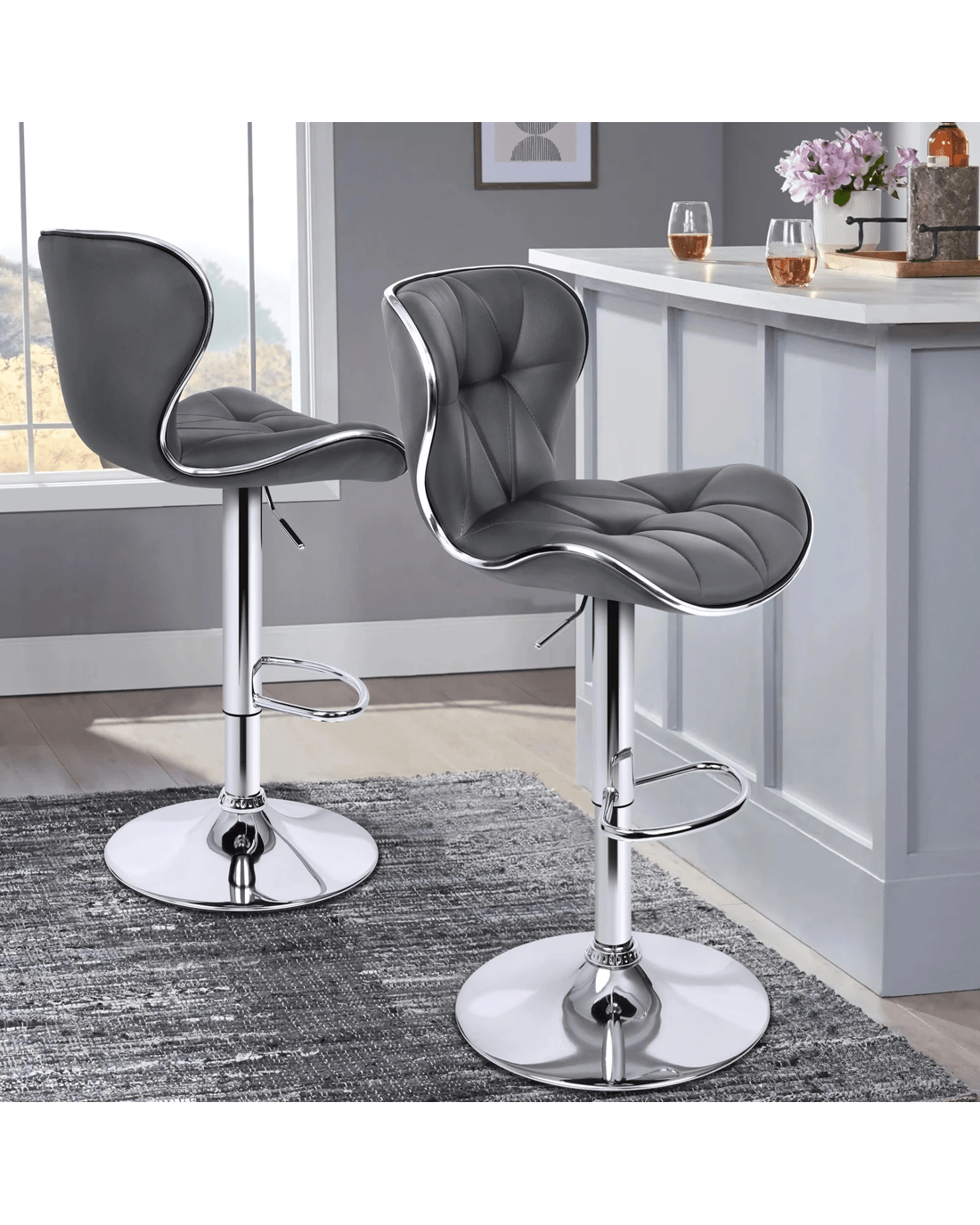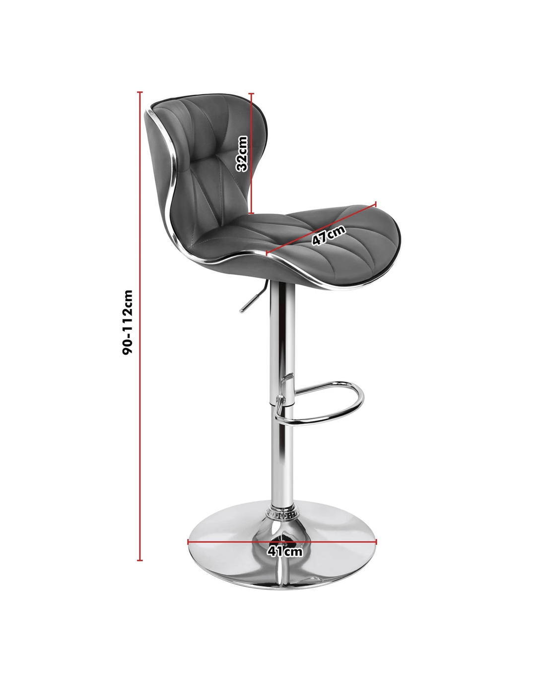 Alfordson 2x Bar Stools Luna Kitchen Swivel Chair Leather Gas Lift - Grey