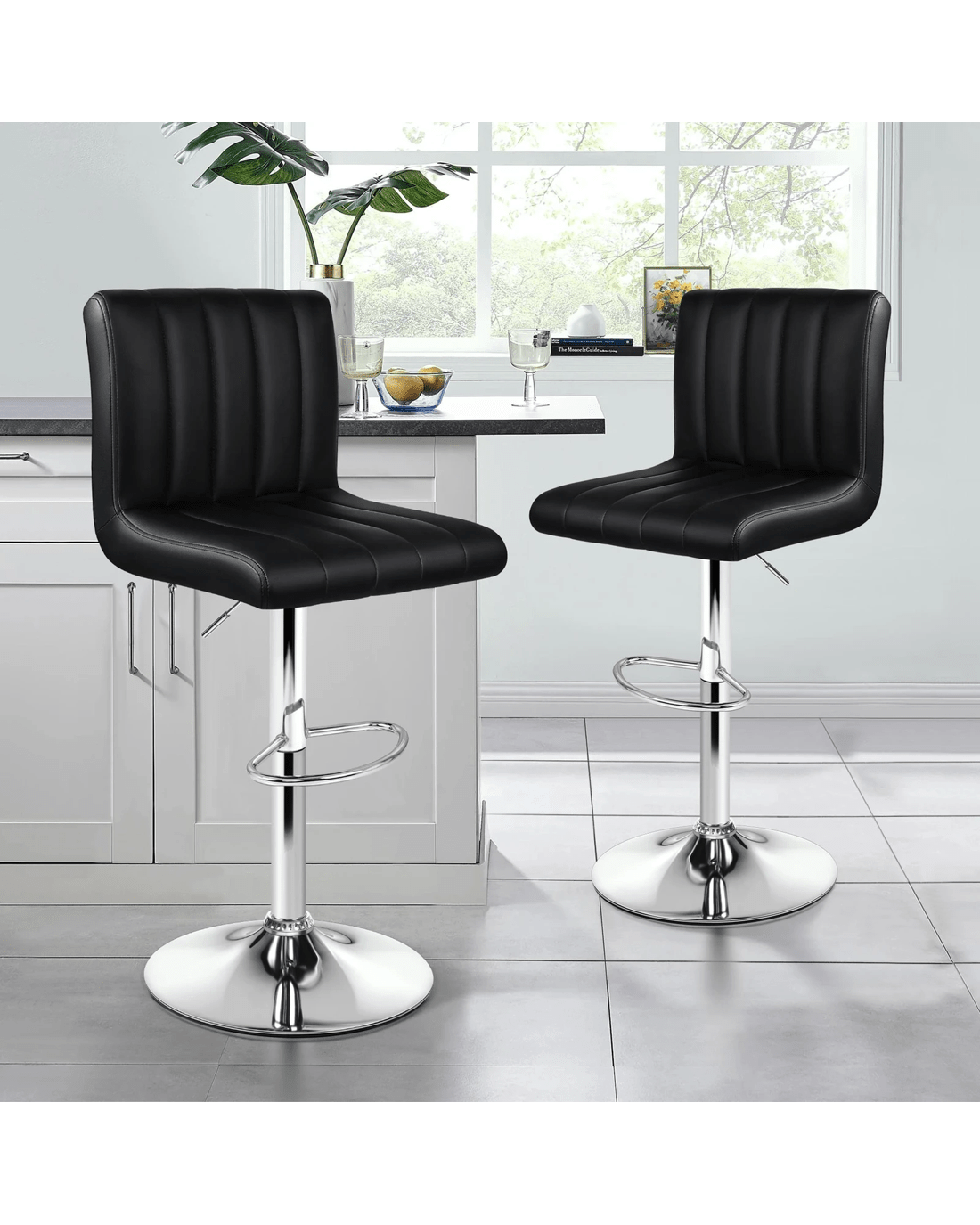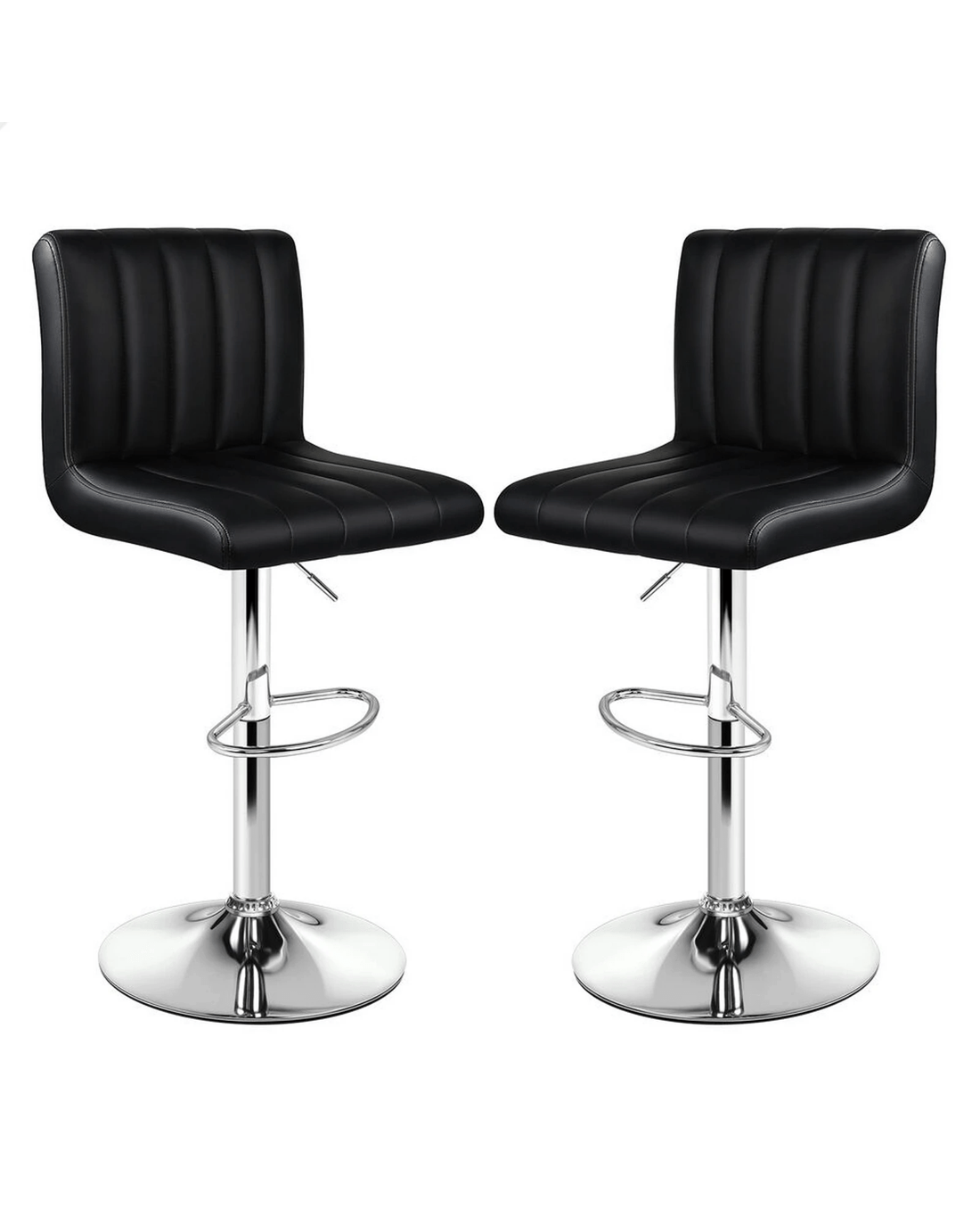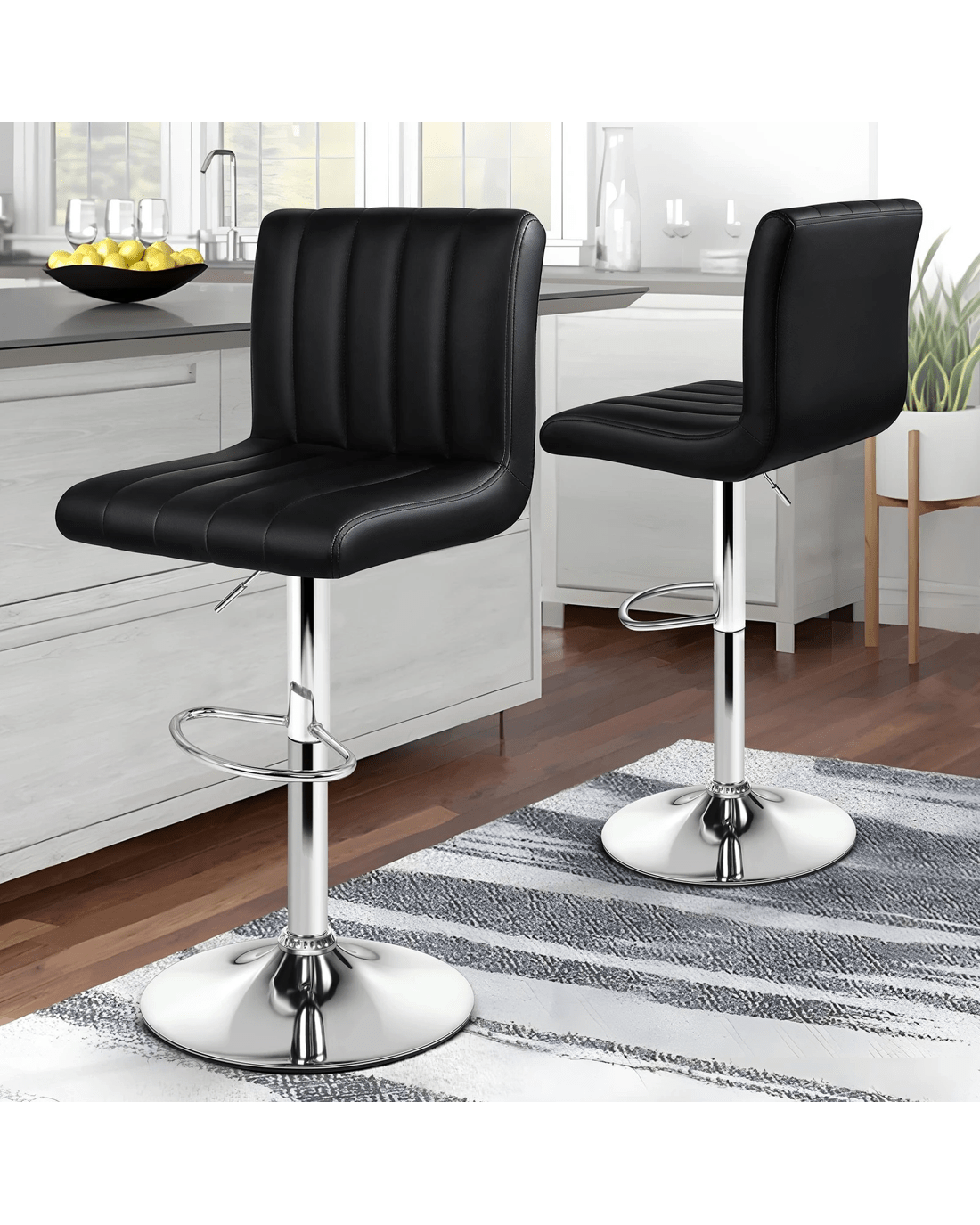 Alfordson 2x Bar Stools Macias Kitchen Swivel Chair Leather Gas Lift - Black