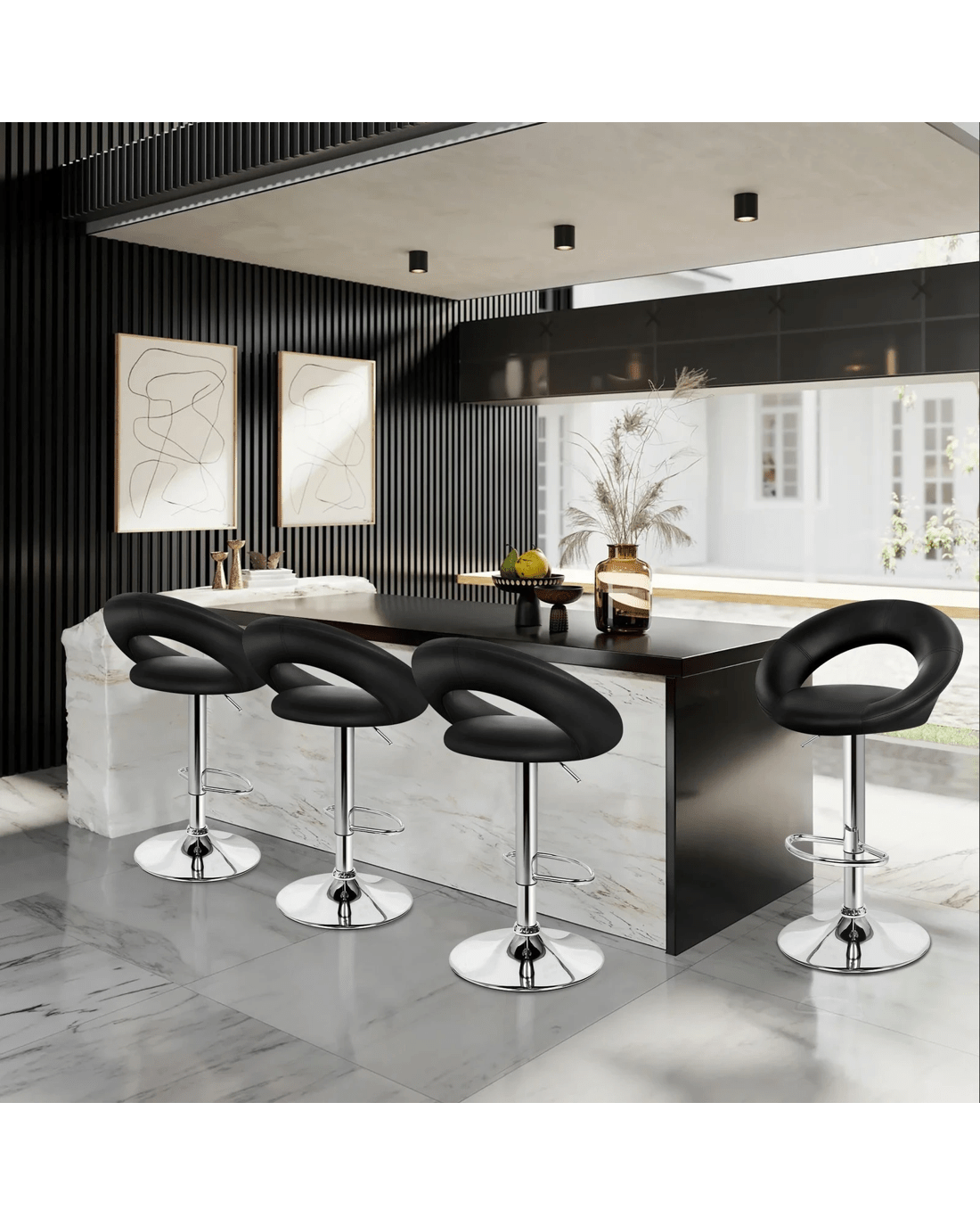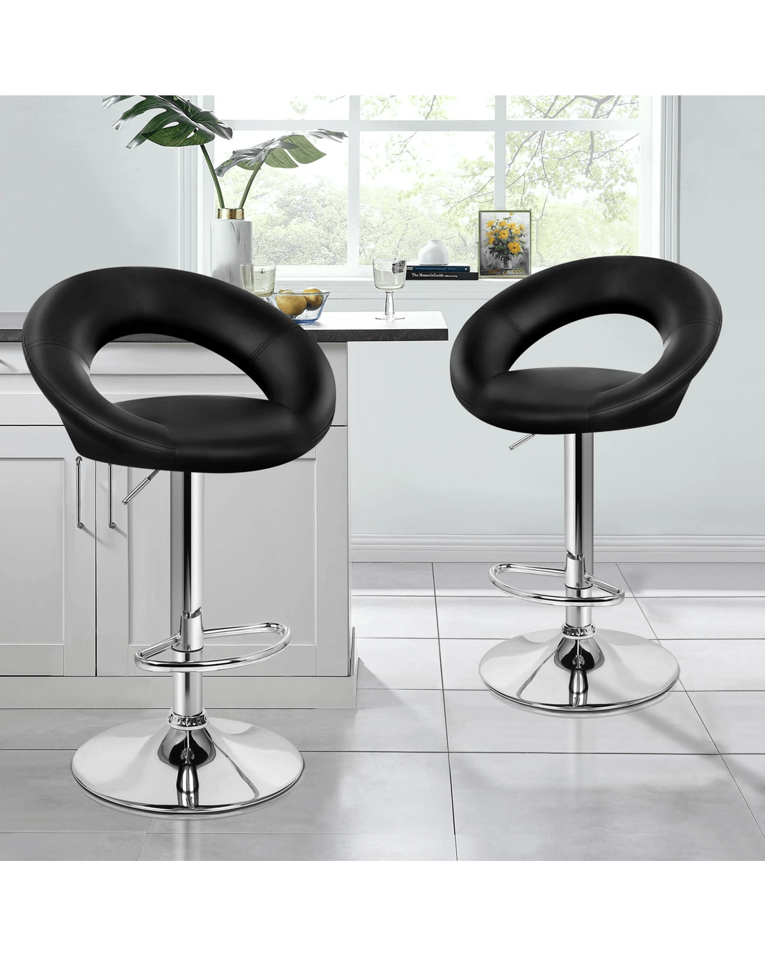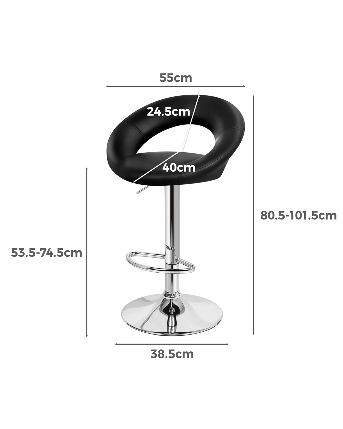 Alfordson 2x Bar Stools Ovadia Kitchen Swivel Chair Leather Gas Lift - Black