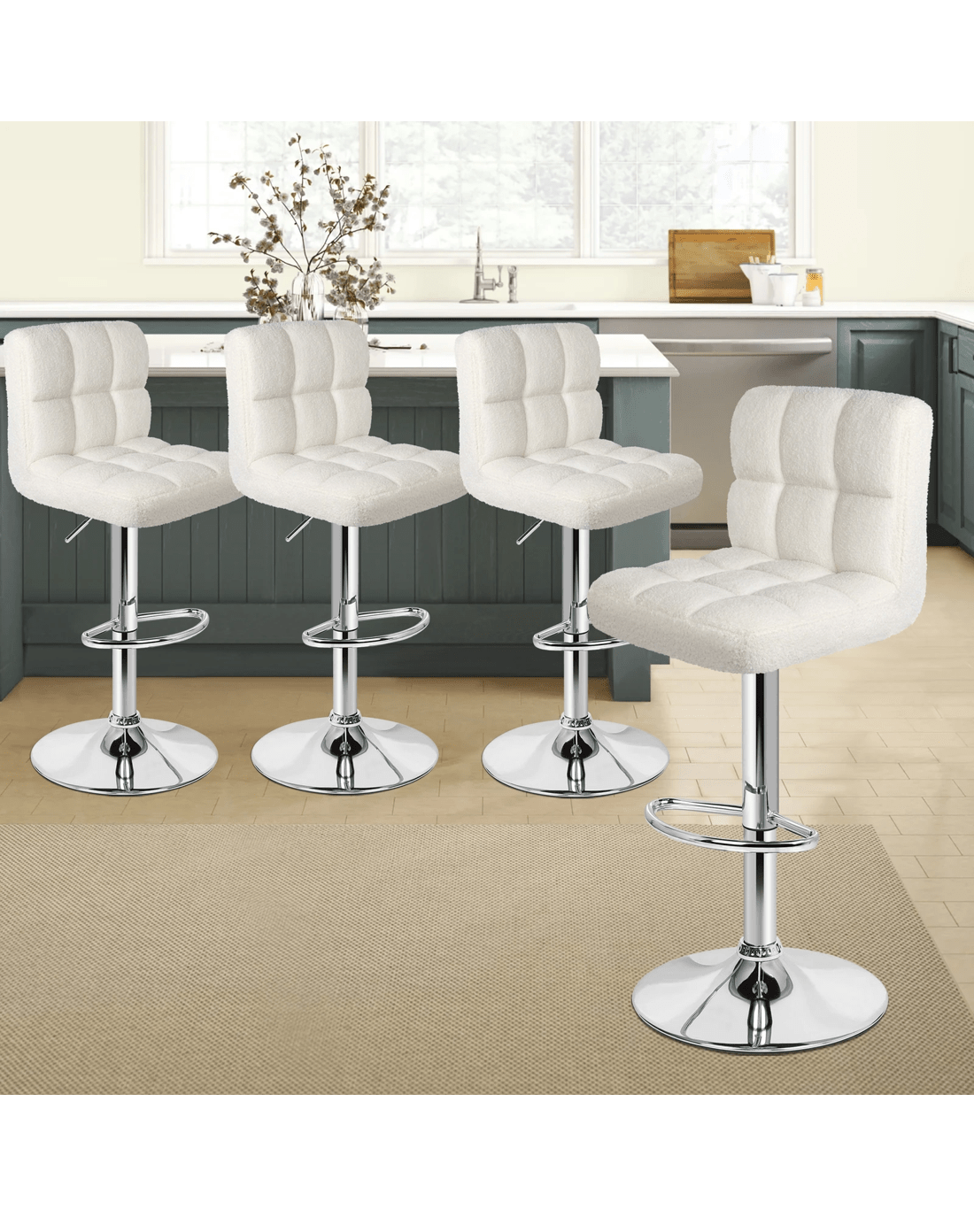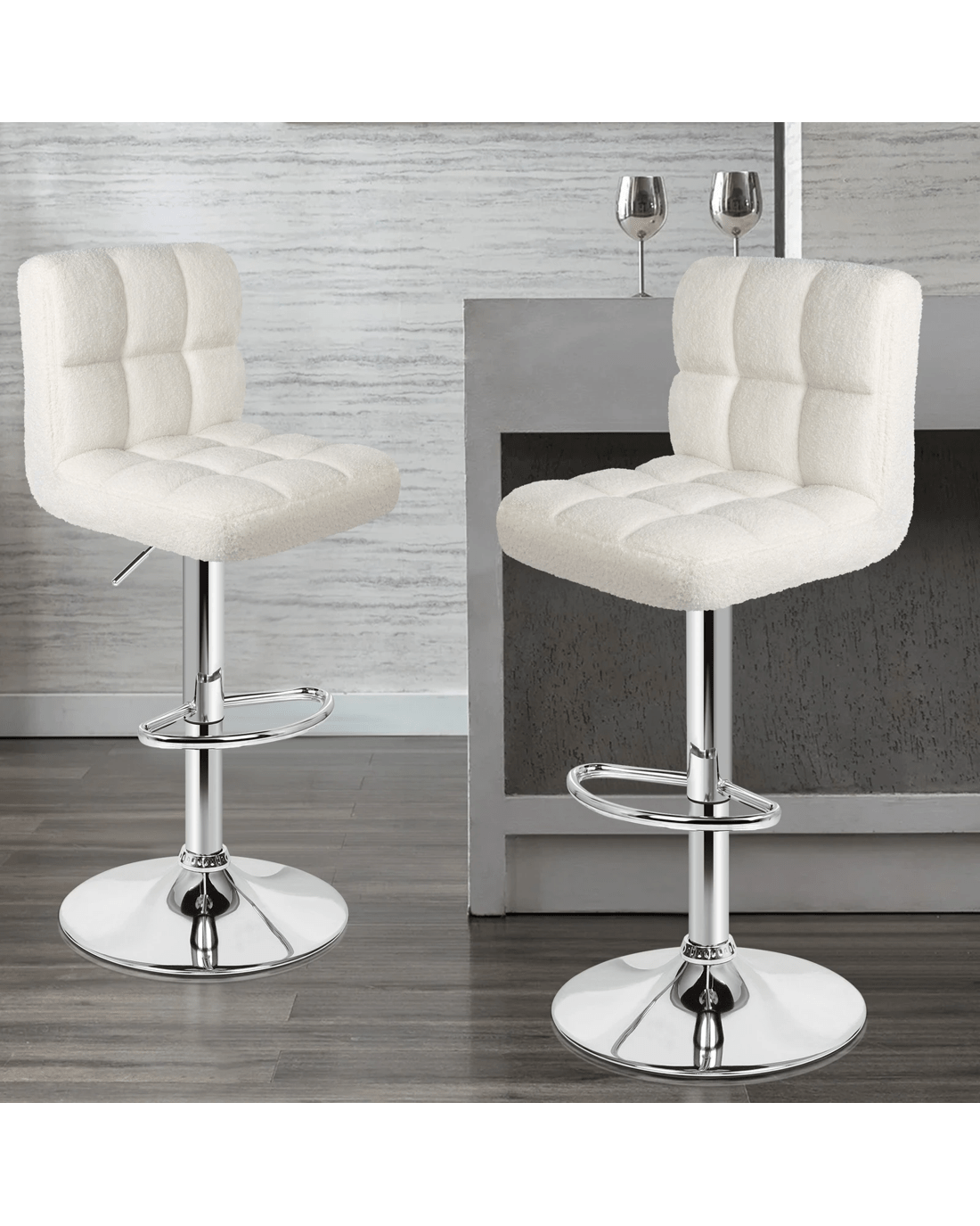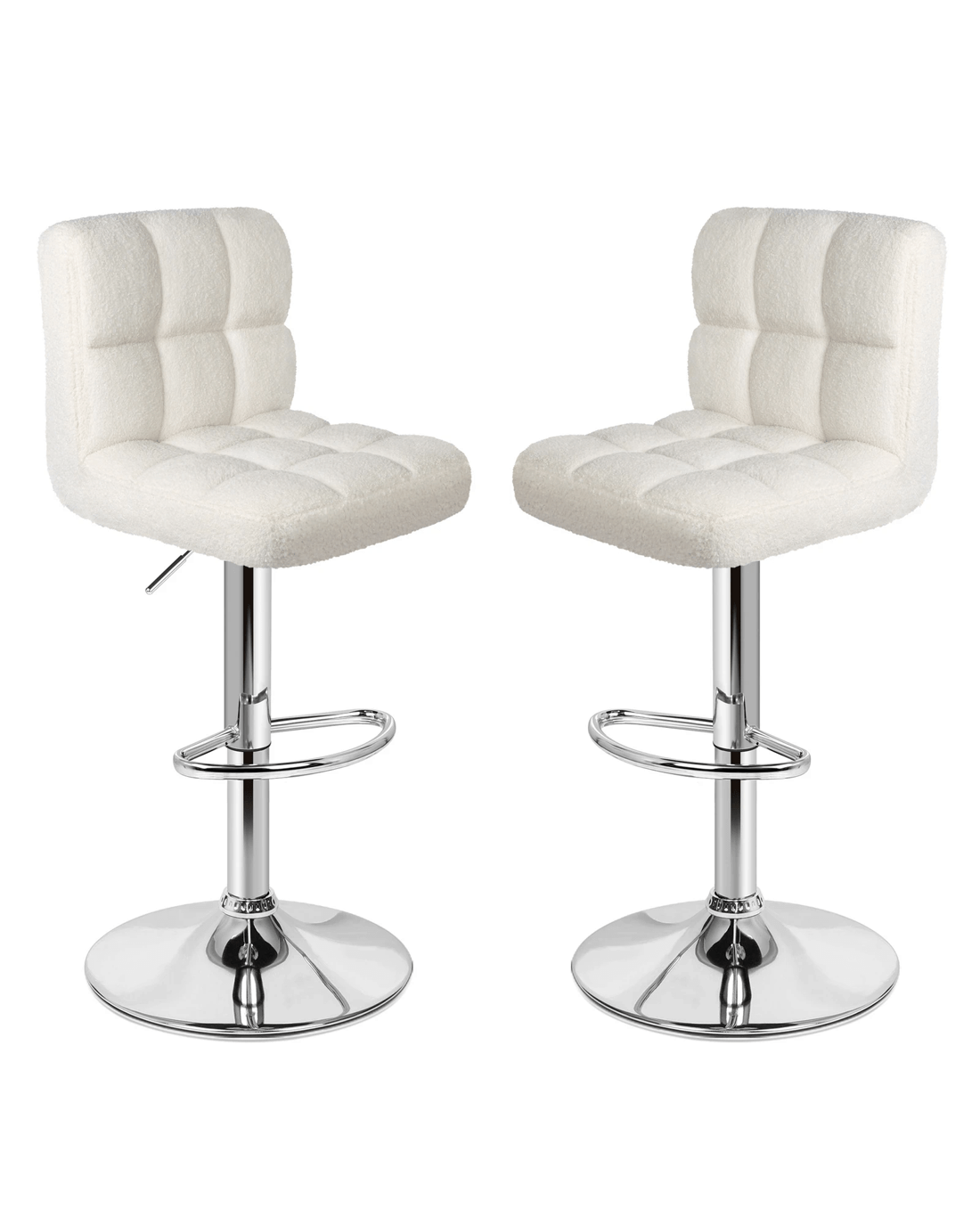 Alfordson 2x Bar Stools Ralph Kitchen Swivel Chair Boucle Gas Lift - White
