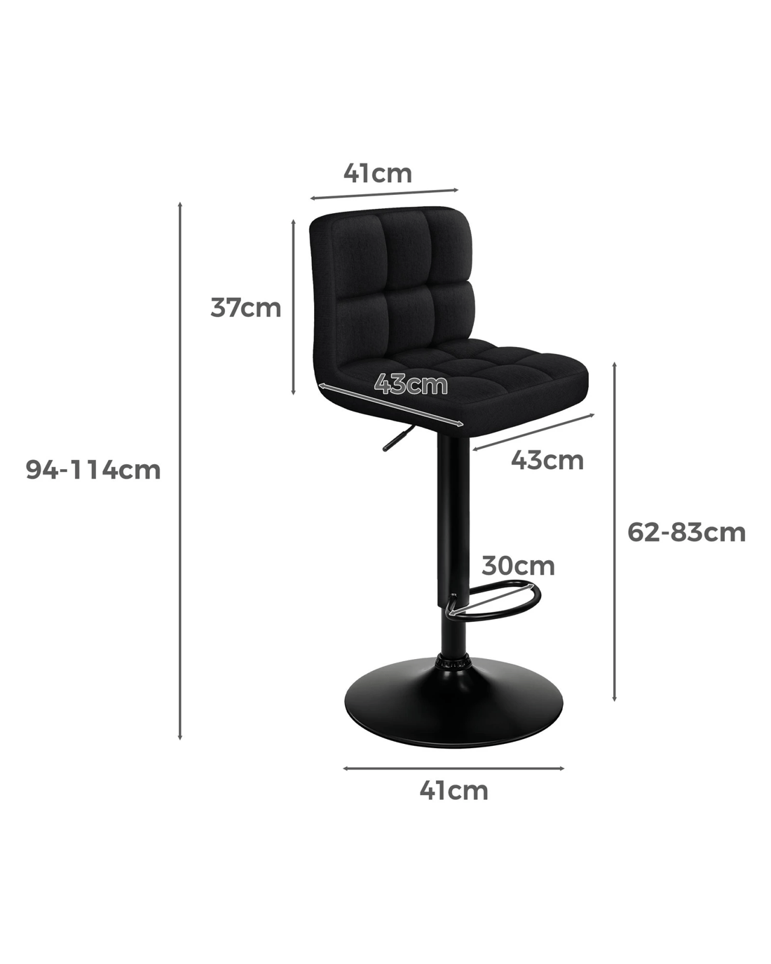 Sold by Aussie Union GroupAlfordson 2x Bar Stools Ralph Kitchen Swivel Chair Fabric Gas Lift - Black