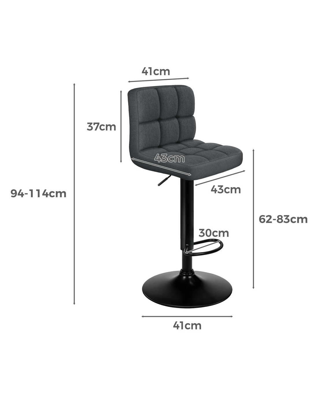 Sold by Aussie Union GroupAlfordson 2x Bar Stools Ralph Kitchen Swivel Chair Fabric Gas Lift - Grey