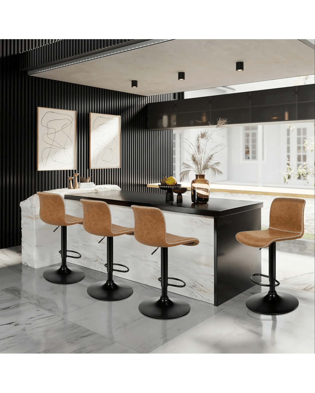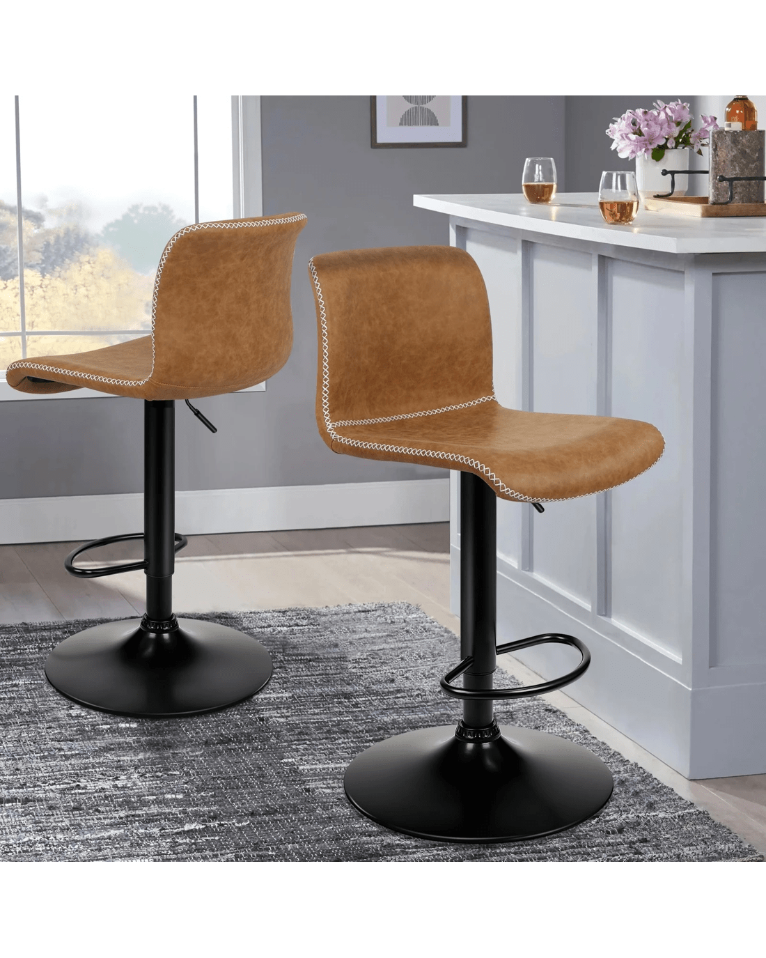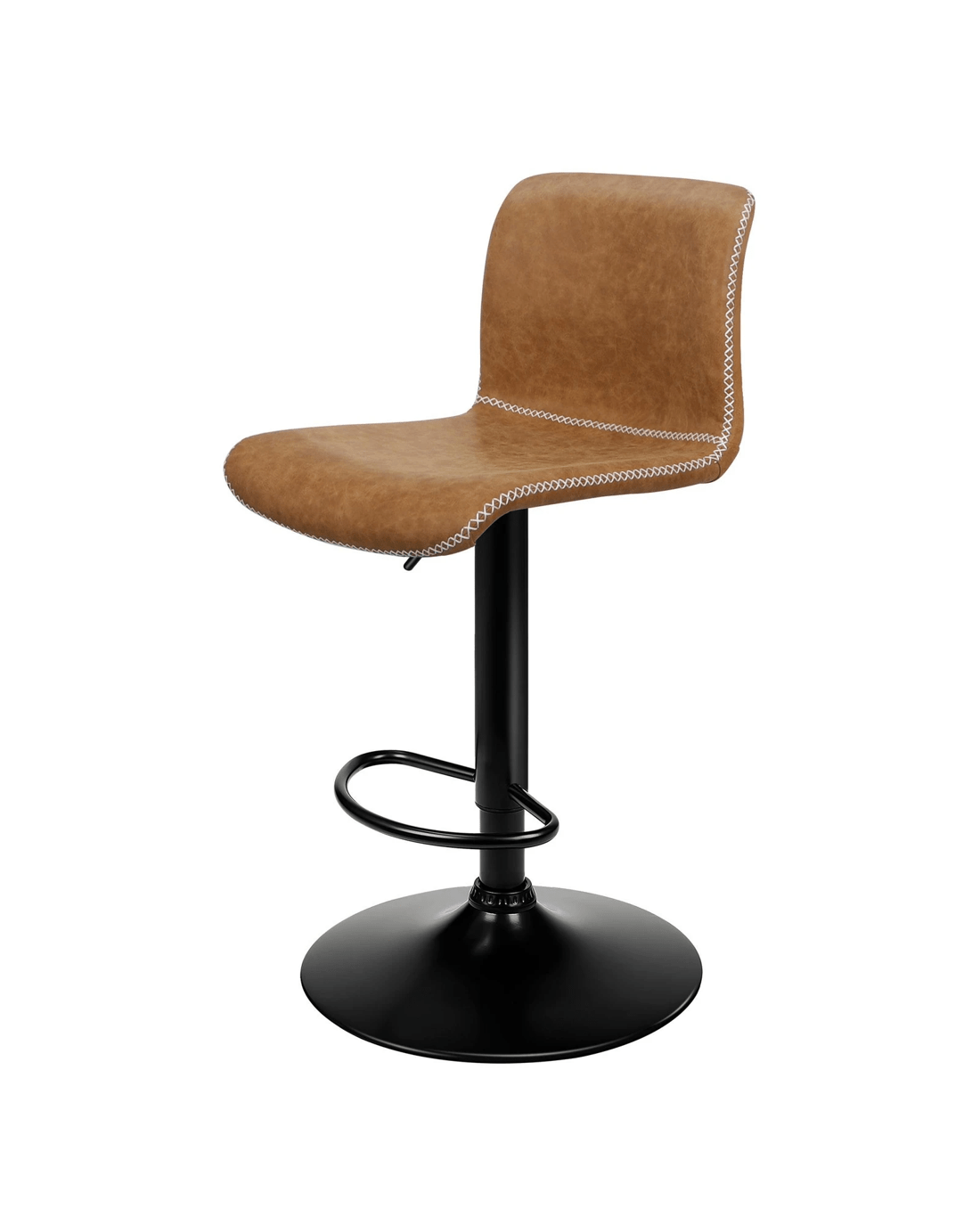 This industrial bar stool stands out with a curvaceous frame, decorative cross-stitching and neat piping trims throughout the upholstery seat, which will add a contemporary atmosphere to your home.