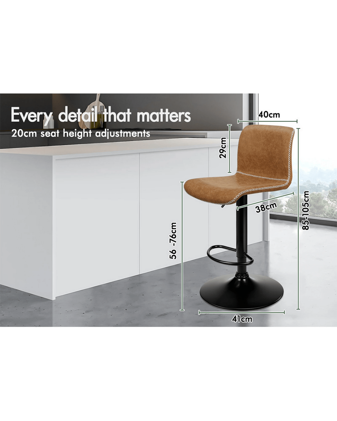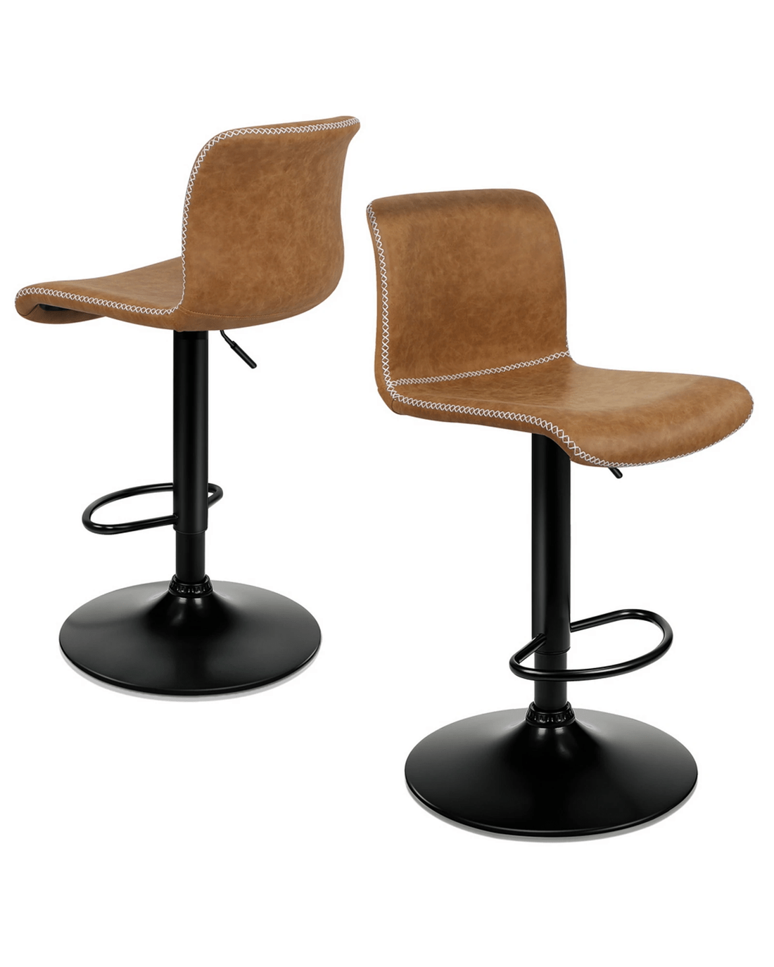 Not only with its iconic design and timeless appeal, but it is also cozy and practical. Upholstered in vintage PU leather, the seat and backrest are filled with high-resilience foam and comfortable padding. Thanks to its high-density foam, they provide adequate support in the right places for a delightful sitting experience. Together with its gas lift, you don't need to worry about explosion. It presents a 360 degree swivel and adjustable seat height, which makes your conversations smoothie and easy.
