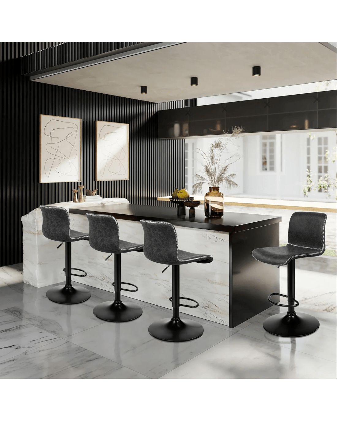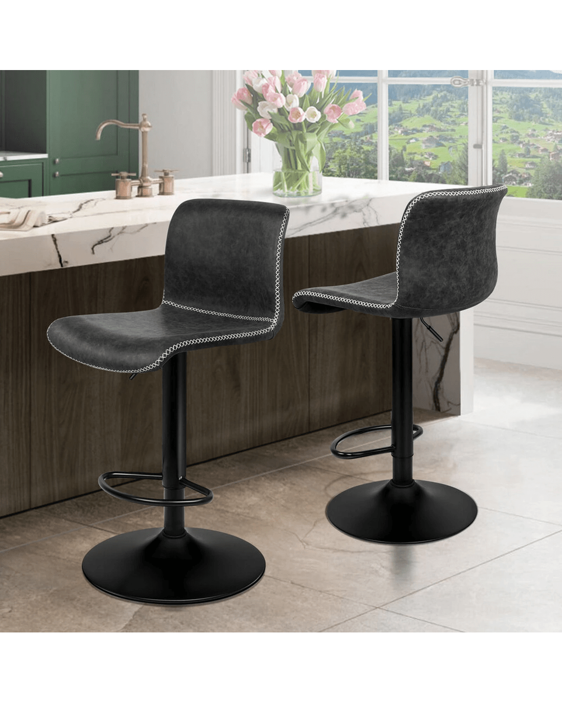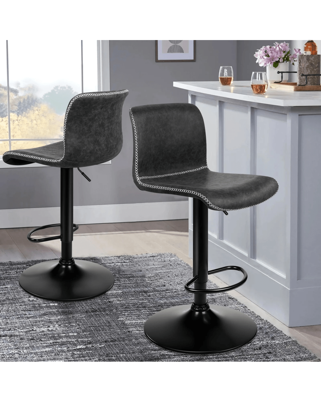 This industrial bar stool stands out with a curvaceous frame, decorative cross-stitching and neat piping trims throughout the upholstery seat, which will add a contemporary atmosphere to your home.