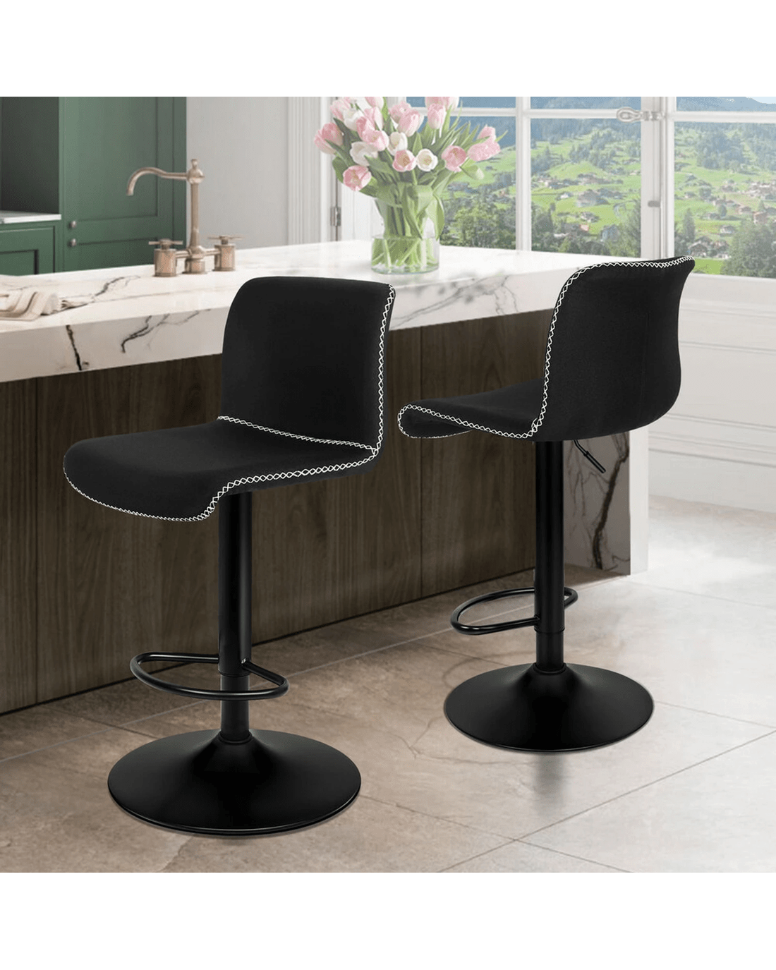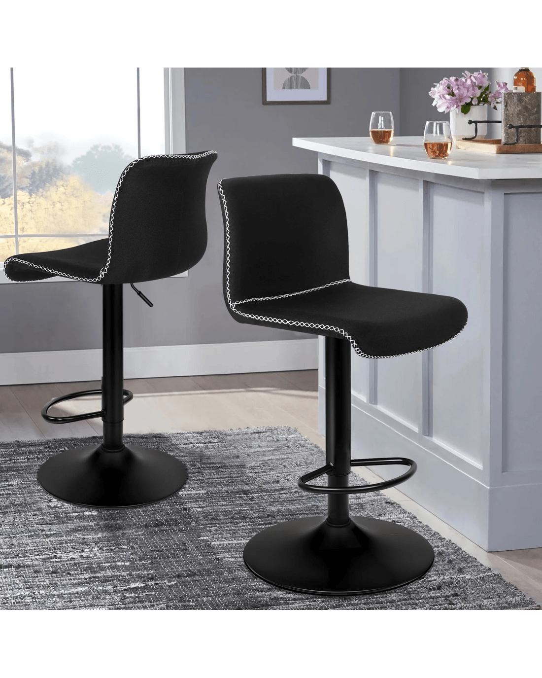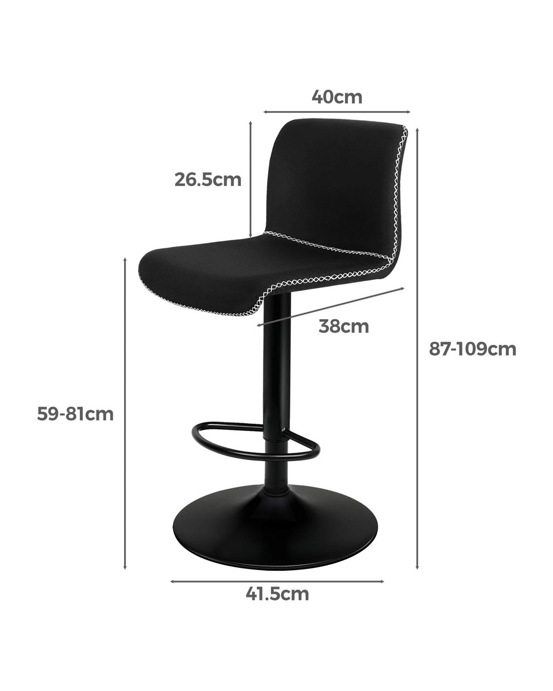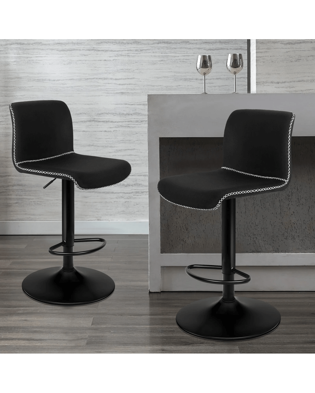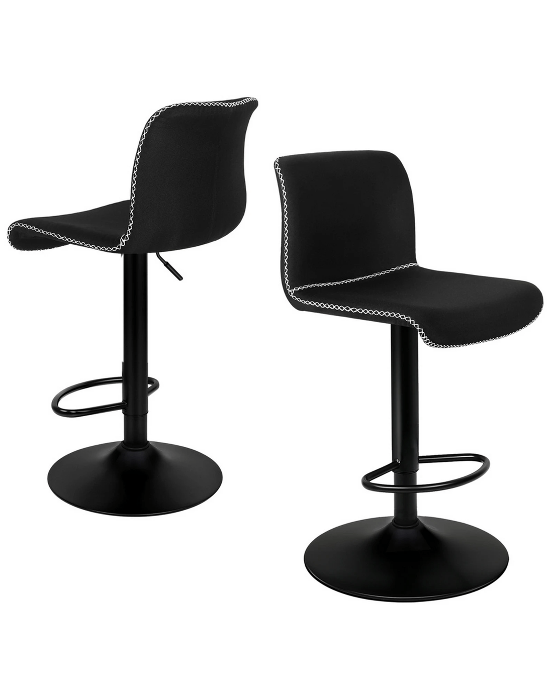 Alfordson 2x Bar Stools Remy Kitchen Gas Lift Swivel Vintage Chair Fabric - Black