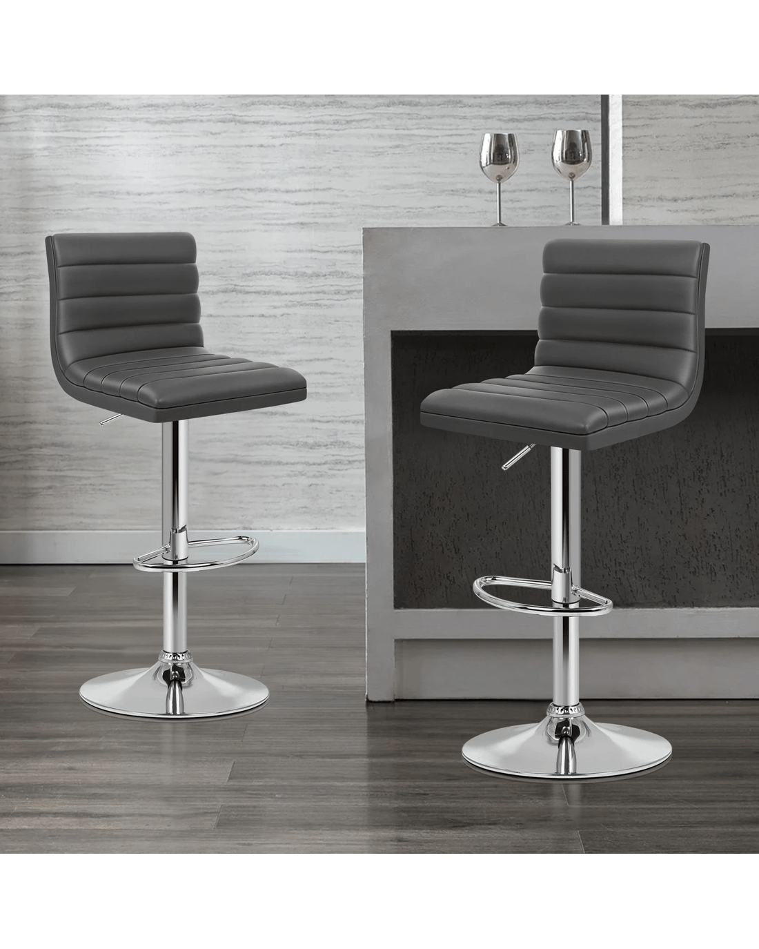 Sold by Aussie Union GroupAlfordson 2x Bar Stools Ruel Kitchen Swivel Chair Leather Gas Lift - Grey