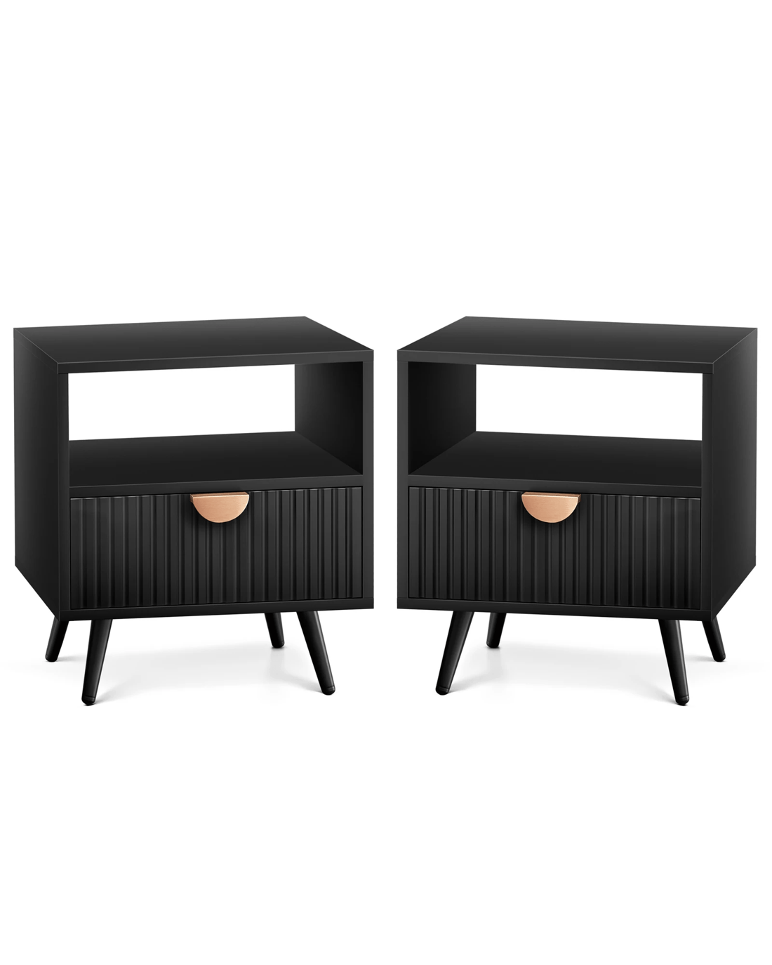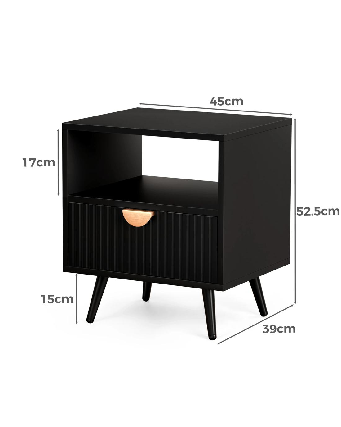 Inspired by extraordinary and authentic sophisticated modern style design, this bedside table can serve as a functional addition at the side of your bed. It provides a surface to place necessary items like a lamp, a laptop, a book, a glass of water, medicine or vitamin pills, or whatever else you may want to keep close by the bed. It also features a open shelf, which provides the perfect spot to slot your latest read, tablet or magazines. Not least, featuring a spacious drawer, it provides ample storage so that those items you store away in the drawers won't gather dust.