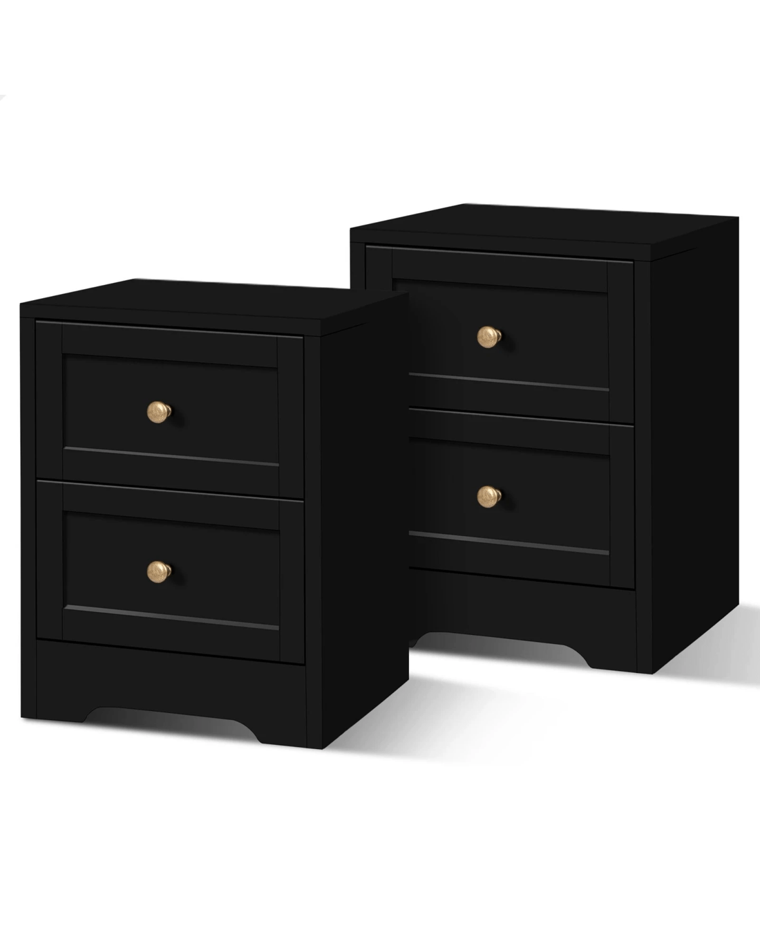 Sold by Aussie Union GroupAlfordson 2x Bedside Table 2 Drawers Hamptons Nightstand - Black