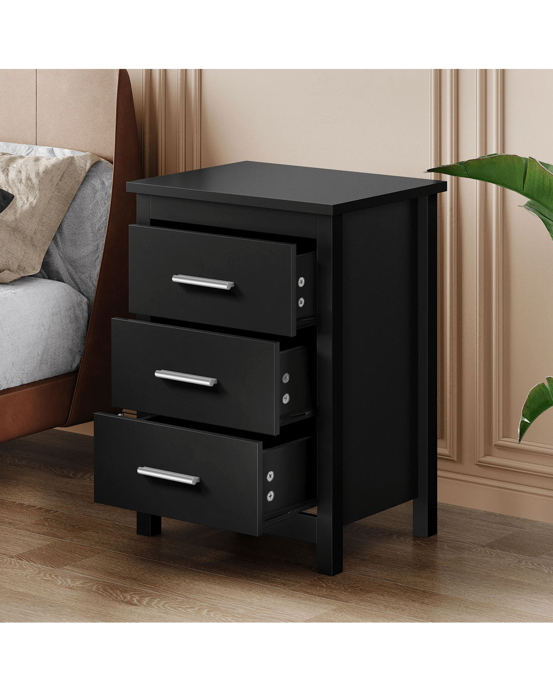 Sold by Aussie Union GroupAlfordson 2x Bedside Table Hamo Nightstand Storage Side End 3 Drawers - Black