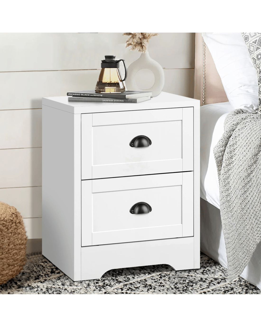 Sold by Aussie Union GroupAlfordson 2x Bedside Table Hamptons Nightstand Storage Side Cabinet - White