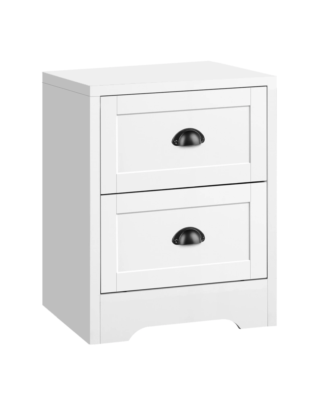 This bedside table can serve as a functional addition at the side of your bed. It provides a surface to place necessary items like a lamp, a laptop, a book, a glass of water, medicine or vitamin pills, or whatever else you may want to keep close by the bed. Not least, featuring 2 spacious drawers, it provides ample storage so that those items you store away in the drawers won't gather dust.