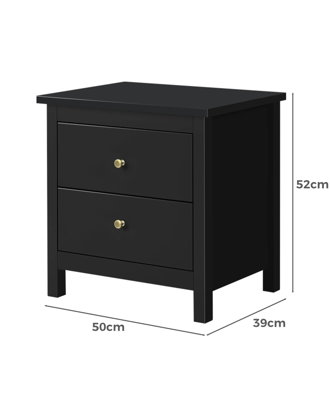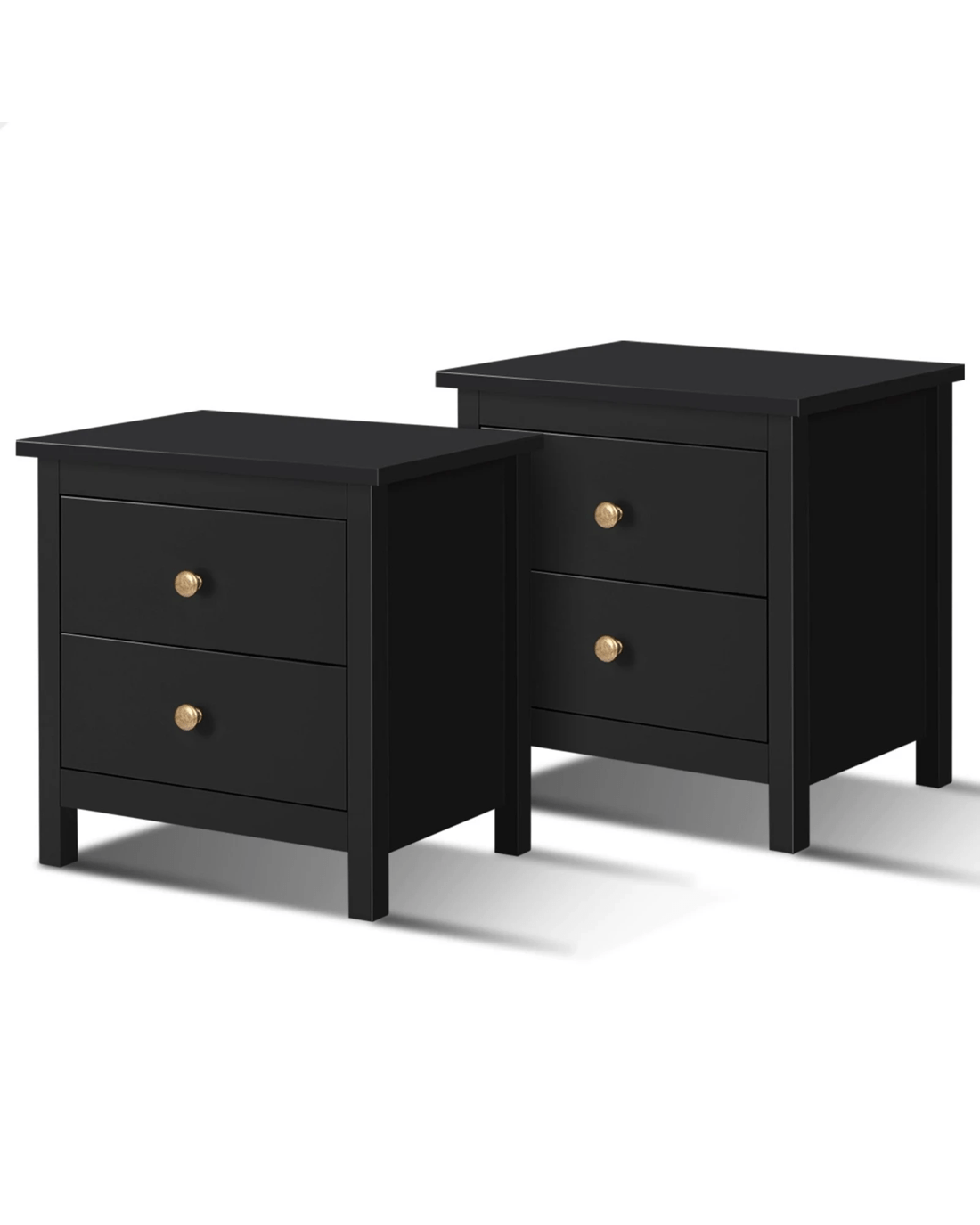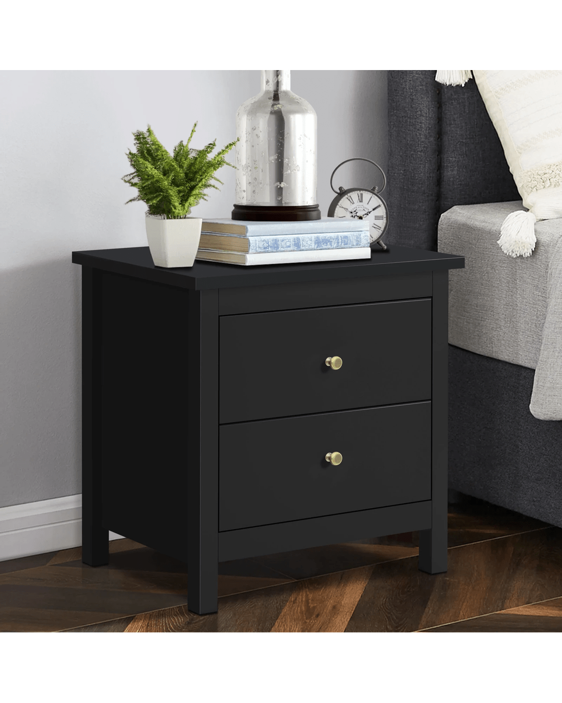 Alfordson 2x Bedside Table Hamptons Nightstand Storage Side End 2 Drawers - Black