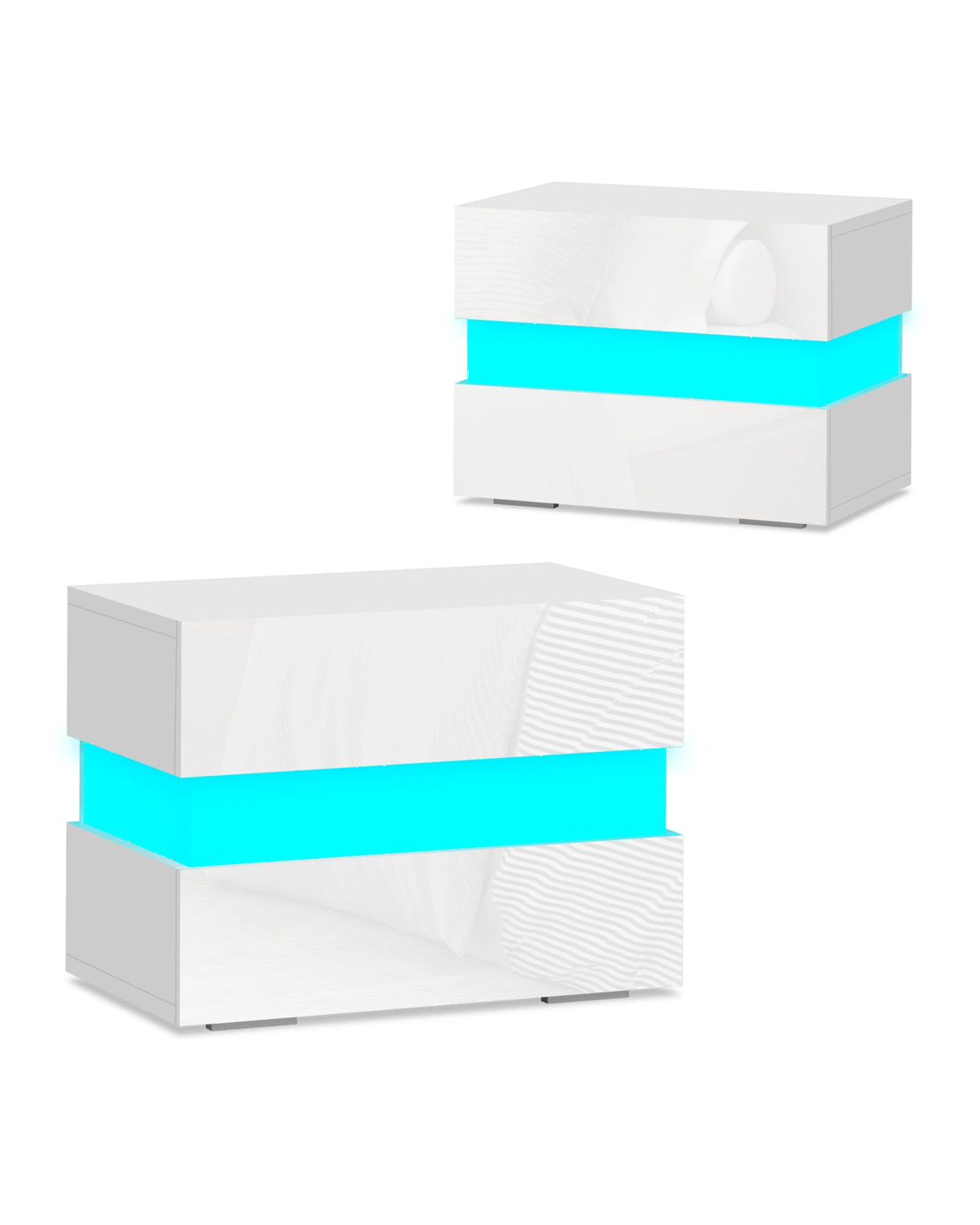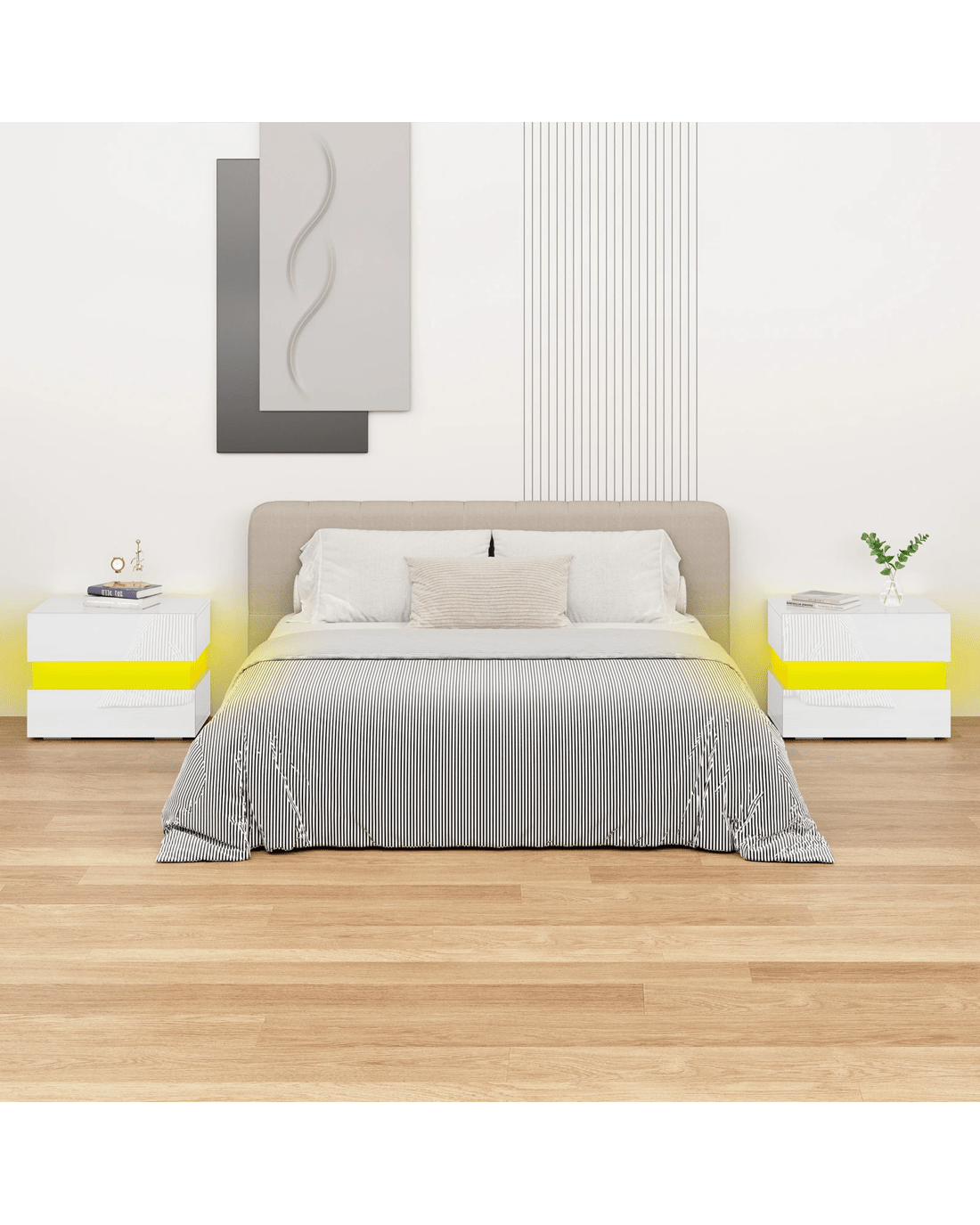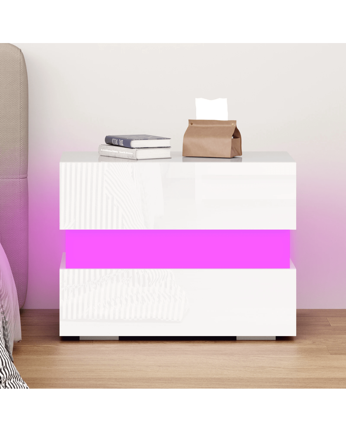 Sold by Aussie Union GroupAlfordson 2x Bedside Table LED Nightstand 2 Drawers Gloss - White