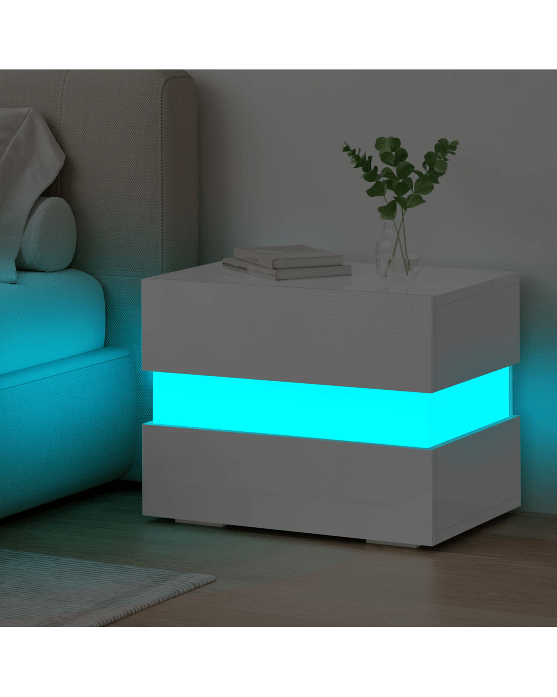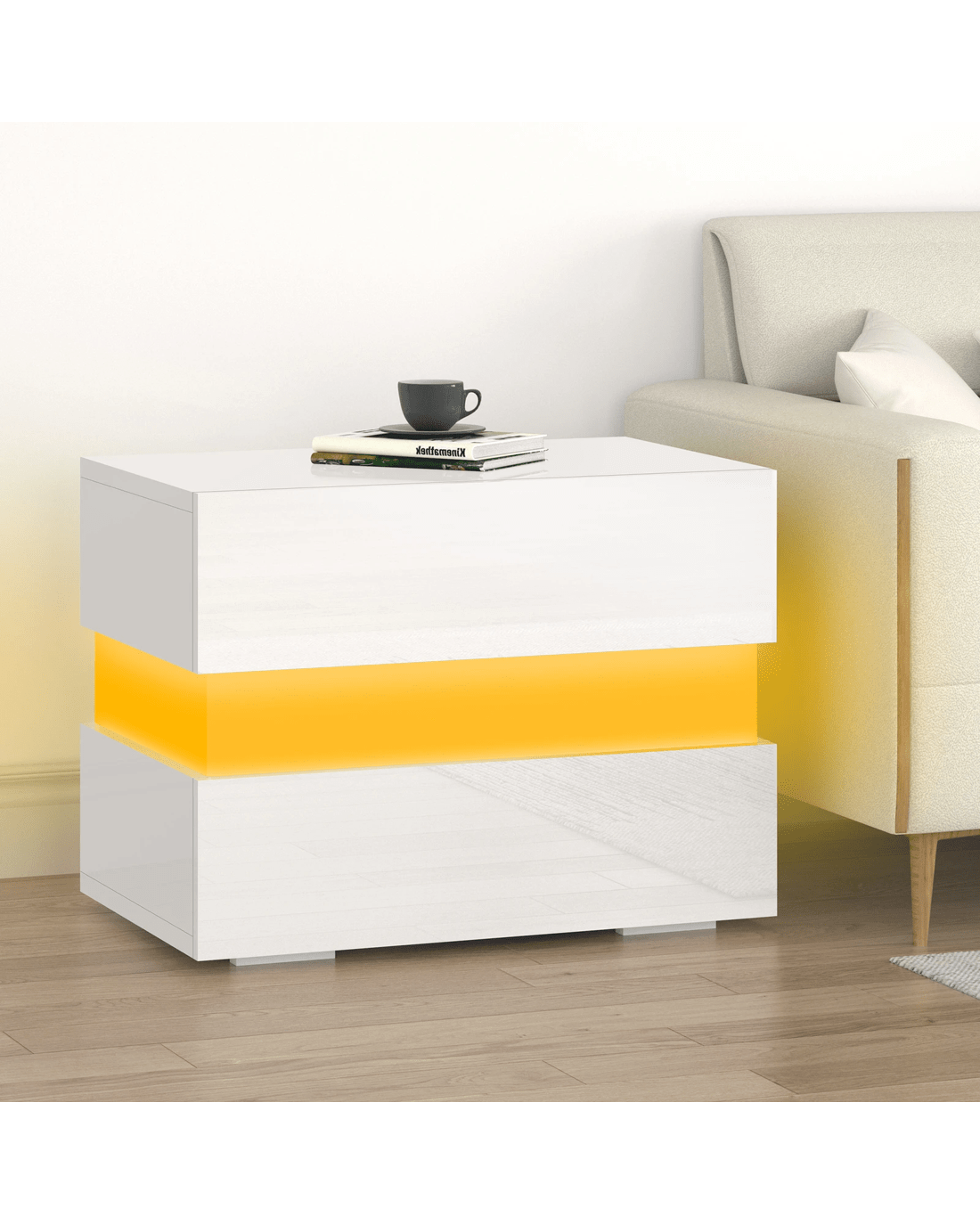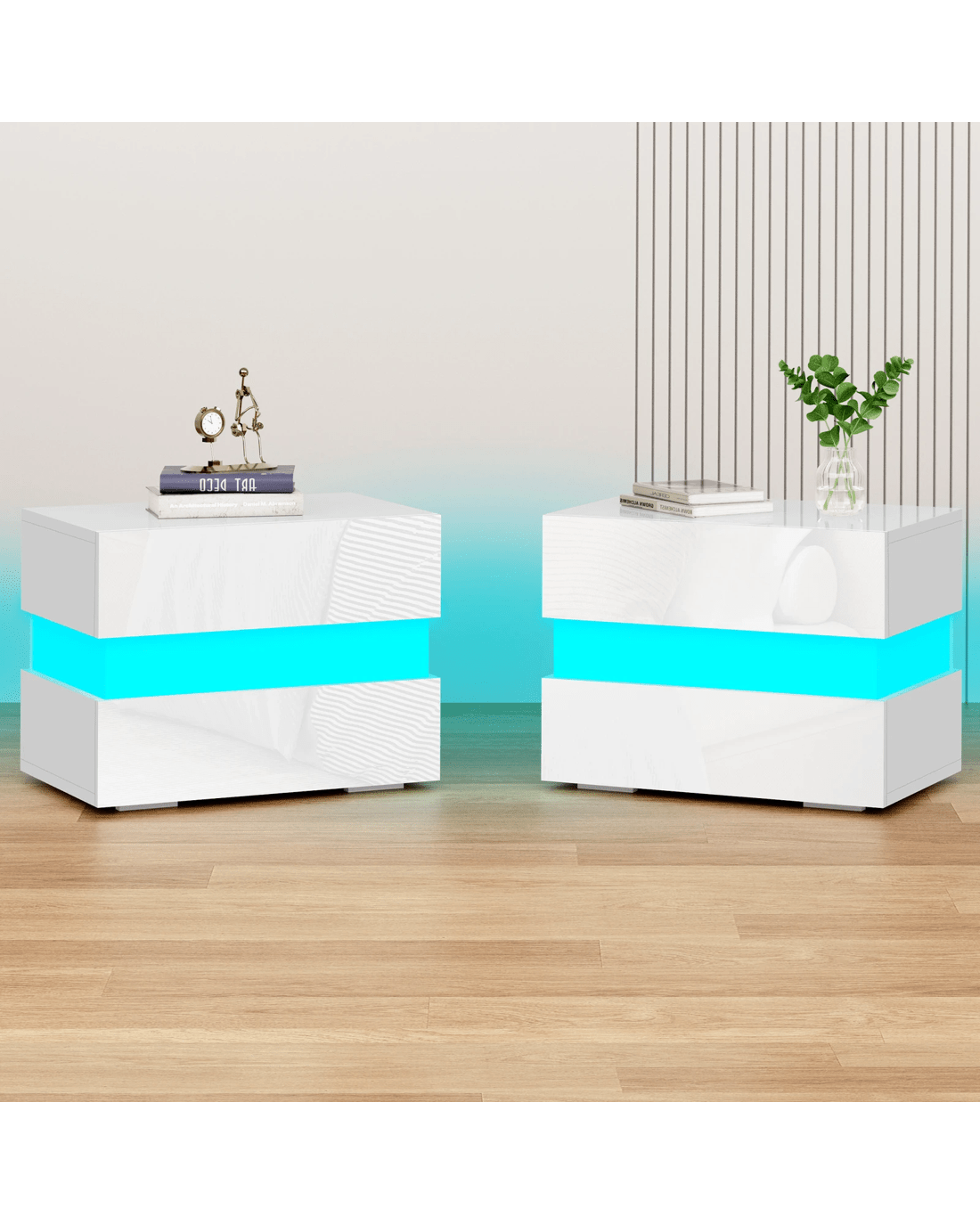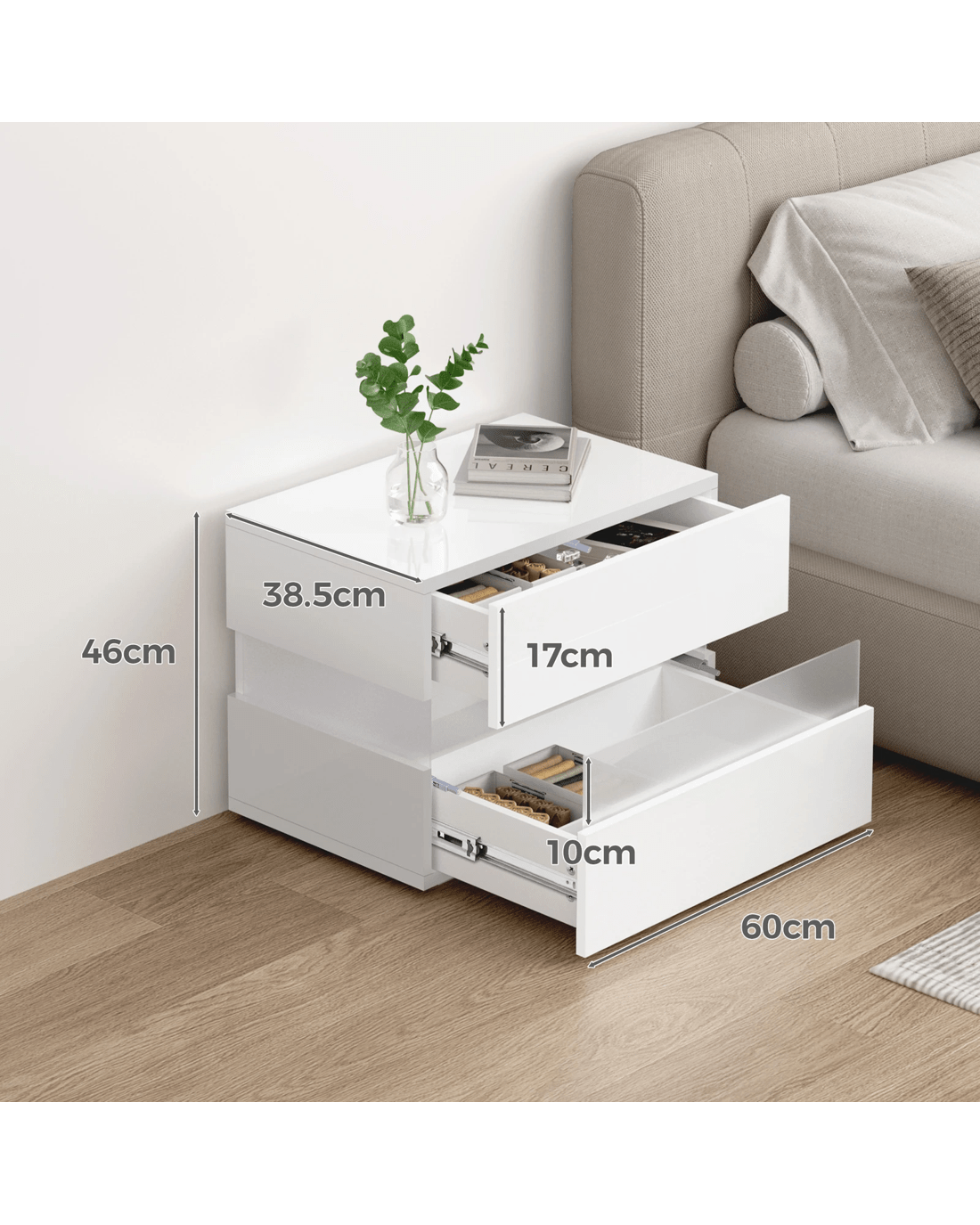 Sold by Aussie Union GroupAlfordson 2x Bedside Table LED Nightstand 2 Drawers Gloss - White