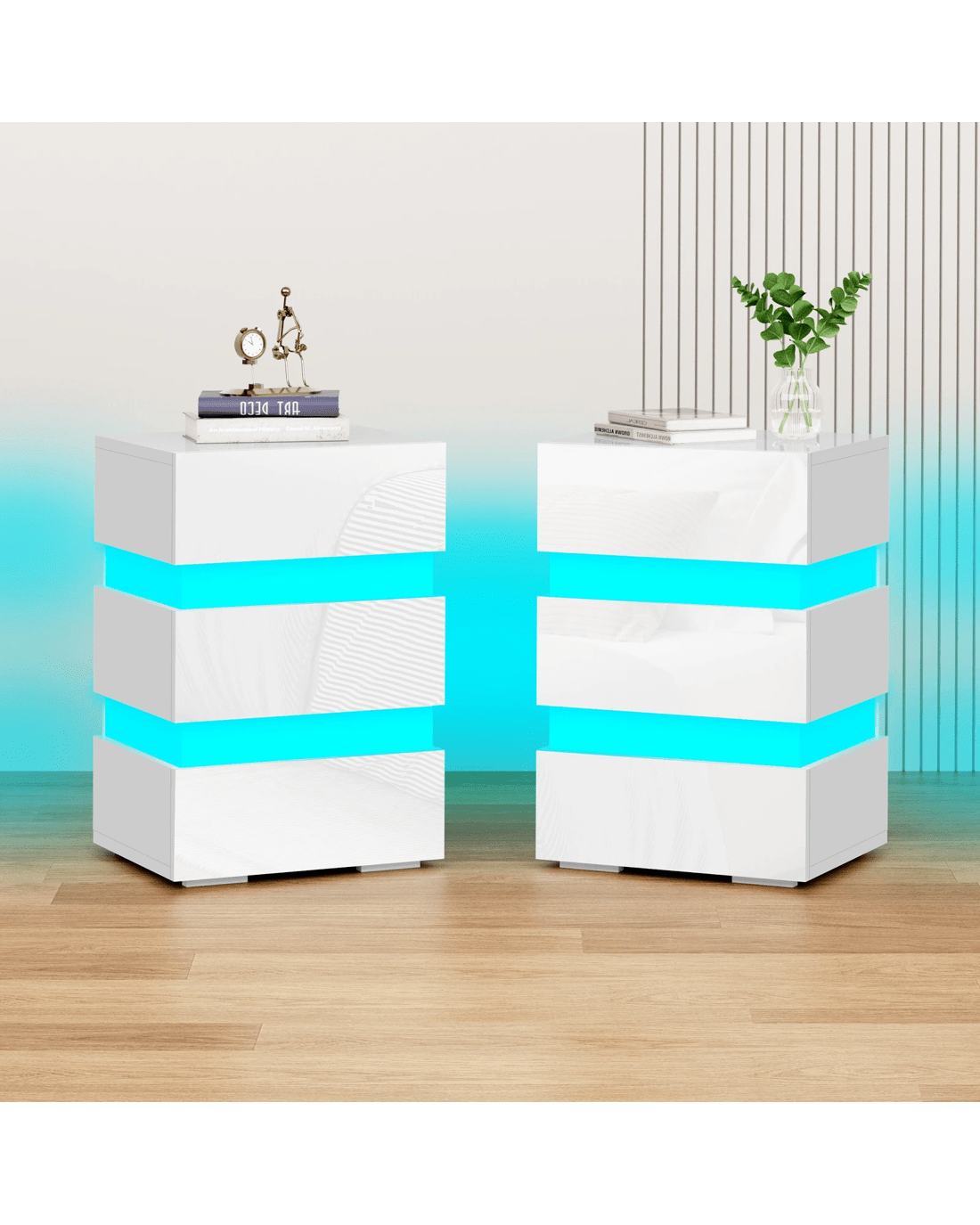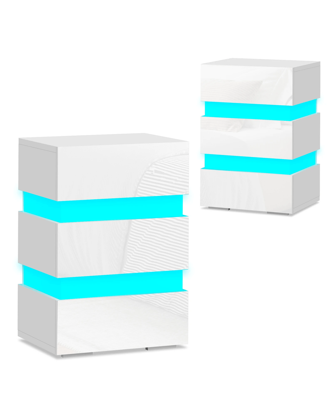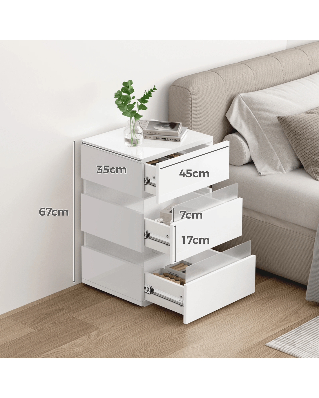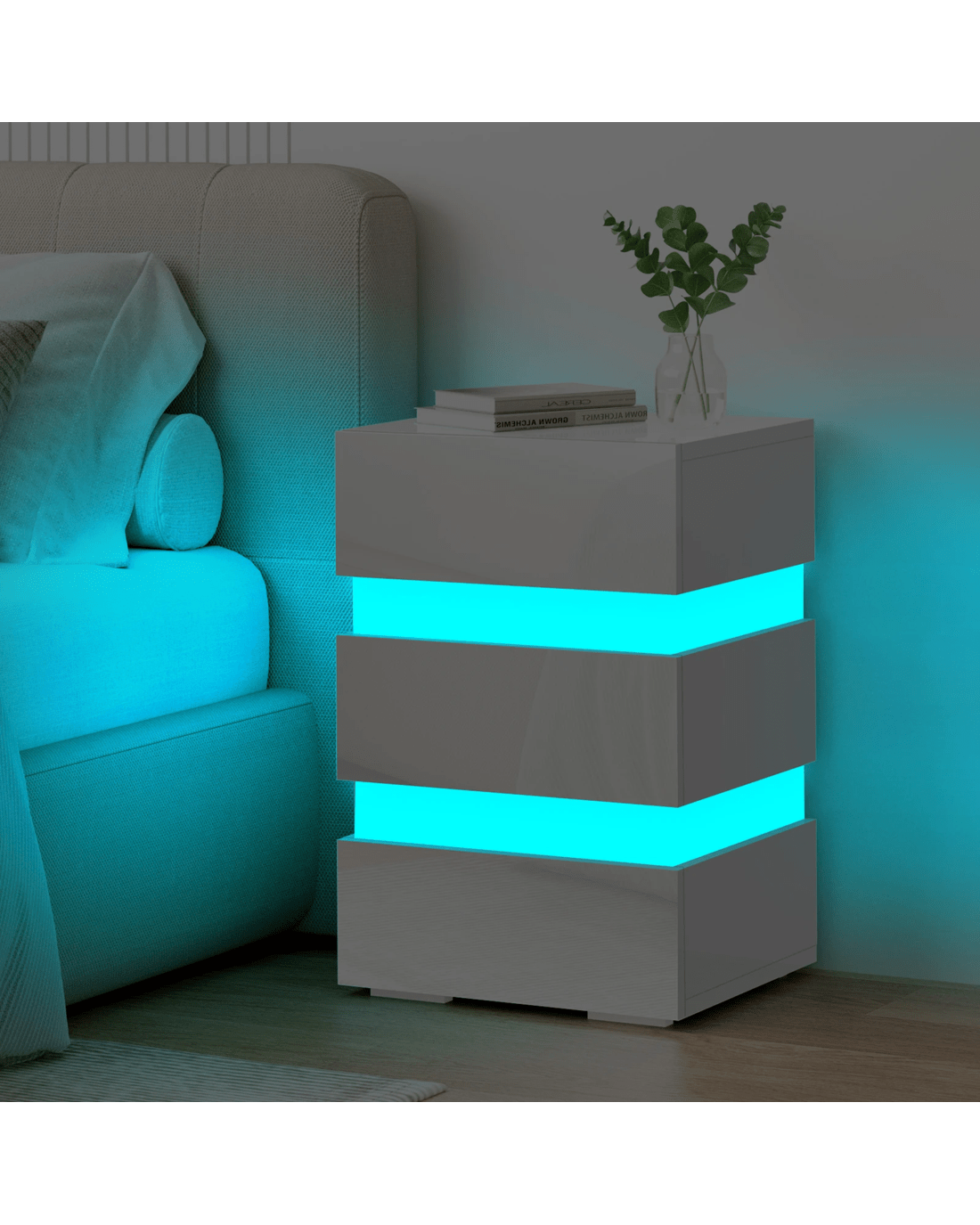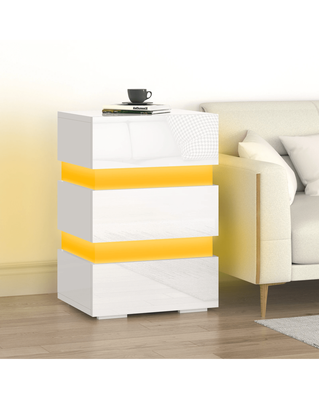 The ALFORDSON bedside table provides a surface to place necessary items like a lamp, a laptop, a book or whatever you may want to keep close by the bed. It features 3 deep drawers to provide ample storage so that those items you store away in the drawers won't gather dust. Practicalities aside, this bedside table is also a key decorative element in your room. Our bedside table has gorgeous high gloss on 4 sides (top, front, right and left sides). It is not only easy to maintain and clean, but helps to enhance the feeling of space with its light-reflecting properties. It comes with LED lighting and a remote control for turning light on/off or changing light color. You will find this LED lighting especially practical in dark.