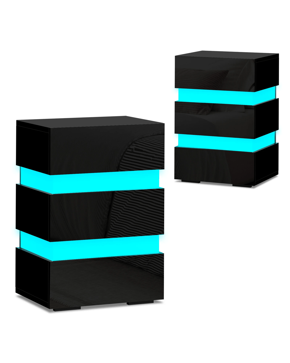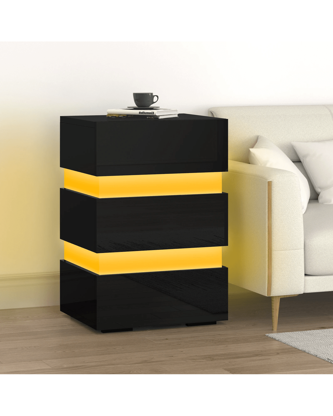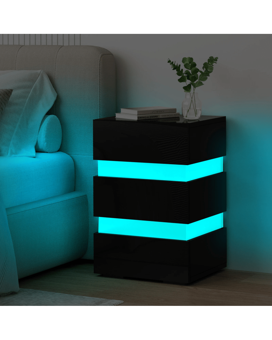 The ALFORDSON bedside table provides a surface to place necessary items like a lamp, a laptop, a book or whatever you may want to keep close by the bed. It features 3 deep drawers to provide ample storage so that those items you store away in the drawers won't gather dust. Practicalities aside, this bedside table is also a key decorative element in your room. Our bedside table has gorgeous high gloss on 4 sides (top, front, right and left sides). It is not only easy to maintain and clean, but helps to enhance the feeling of space with its light-reflecting properties. It comes with LED lighting and a remote control for turning light on/off or changing light color. You will find this LED lighting especially practical in dark.