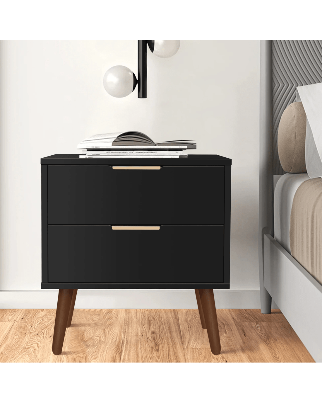 Sold by Aussie Union GroupAlfordson 2x Bedside Table Nightstand Side Storage Cabinet Scandinavian - Black