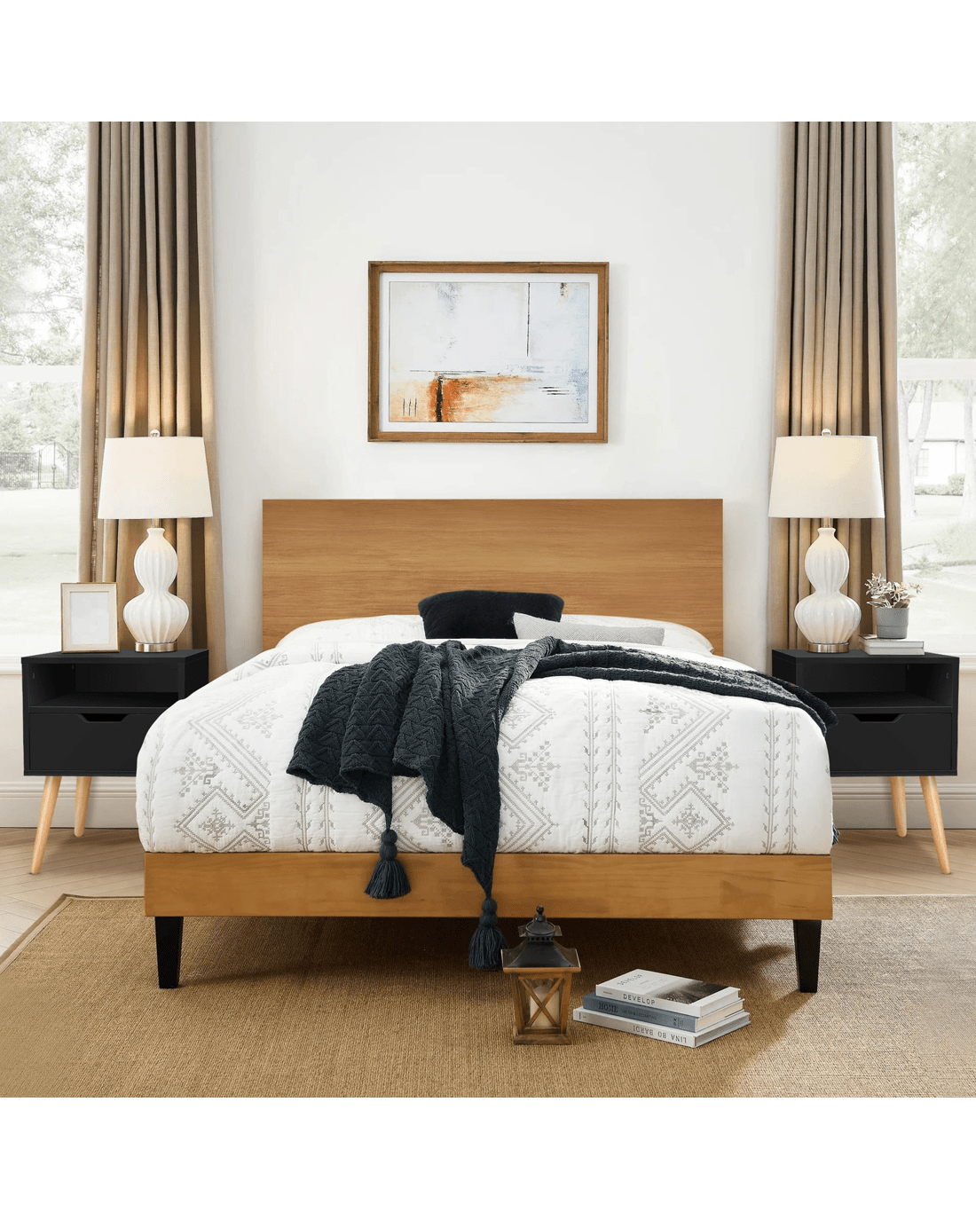 As you may or may not know, most people prefer to have two bedside tables in the bedroom because they help achieve symmetry in the design and increases storage space. Moreover, these tables can be used as side tables next to your lounge or TV stand.