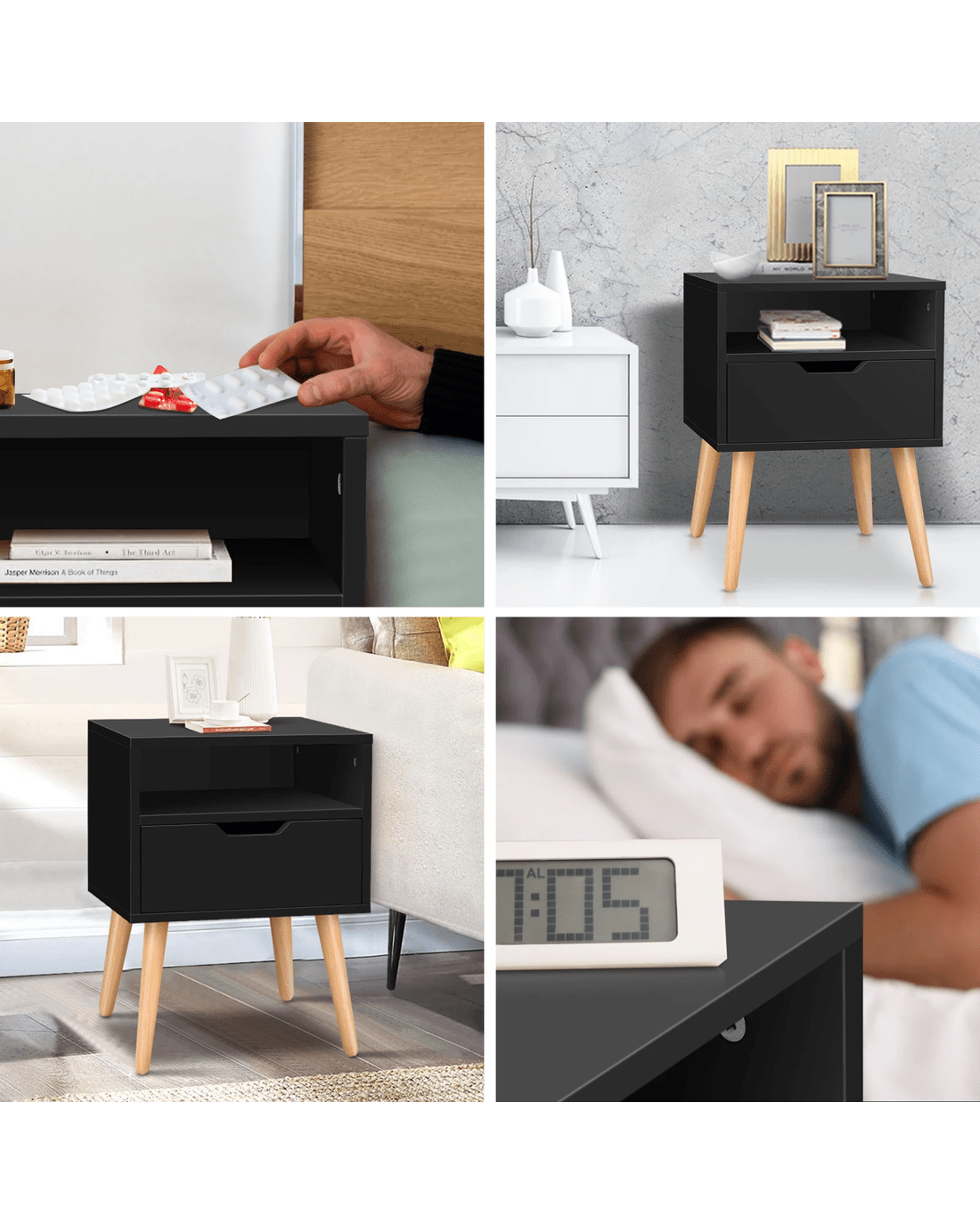 Made of superior E1 grade and 15mm thick particle board, this bedside table is designed to be highly durable. Unlike some other sellers, we have no compromise on materials used. Instead of flimsy paper finish, our bedside table is well made with melamine finish. It is not only easy to maintain and clean, but also long lasting and durable. Being functional yet stylish, you will definitely love our bedside table. It can complement your stylish home with ease.