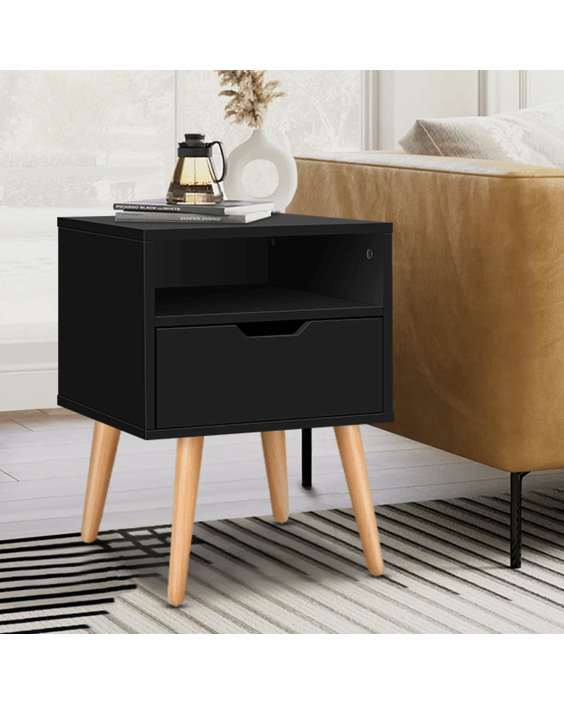 Sold by Aussie Union GroupAlfordson 2x Bedside Table Nightstand Side Storage Cabinet Scandinavian - Black