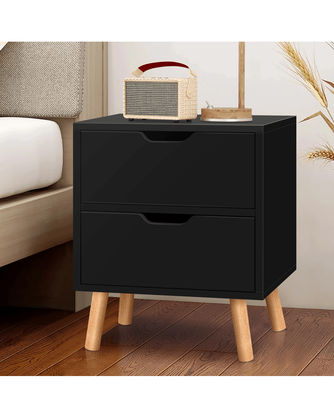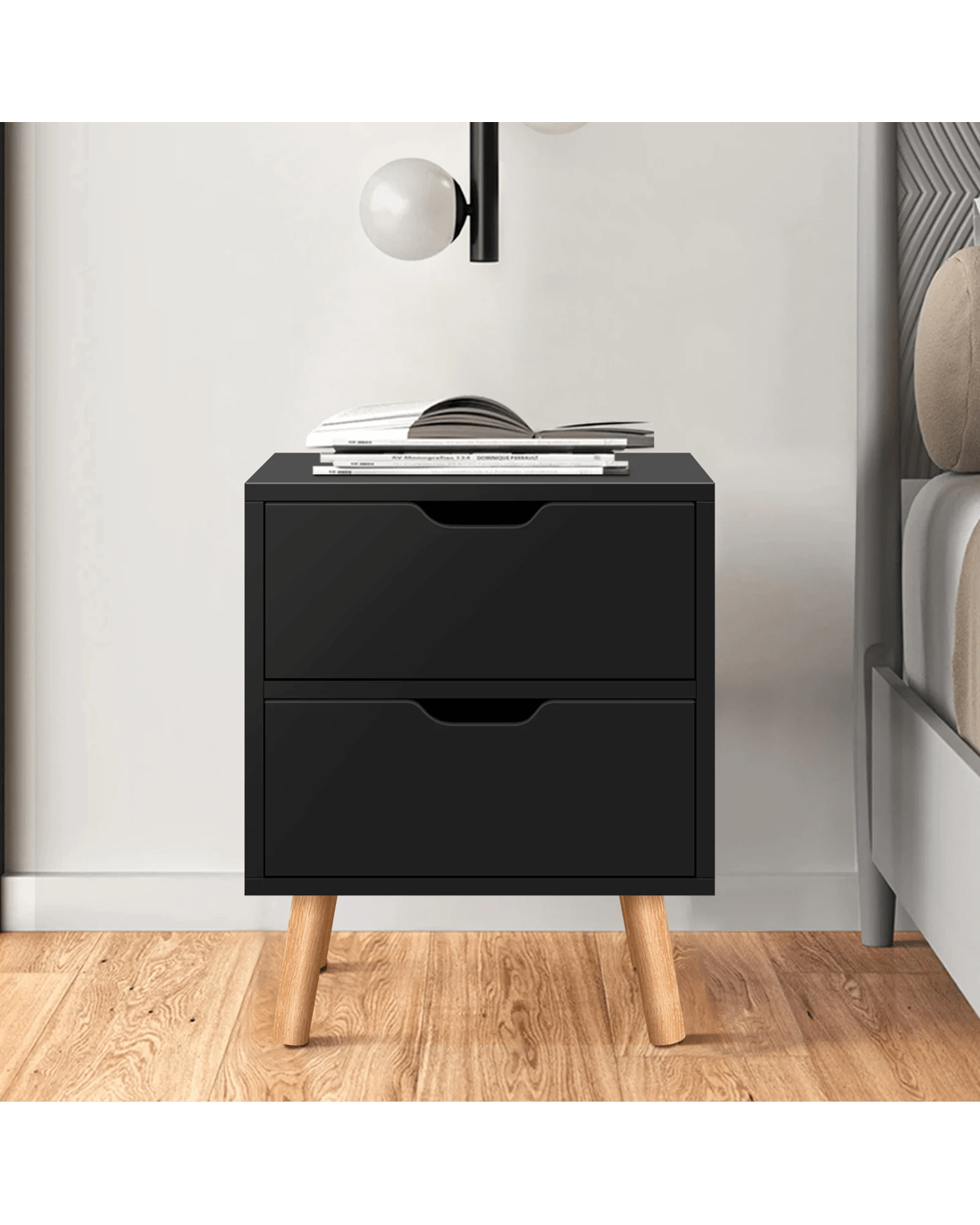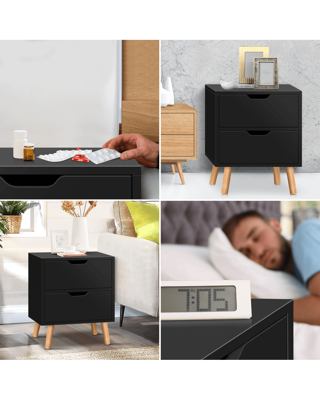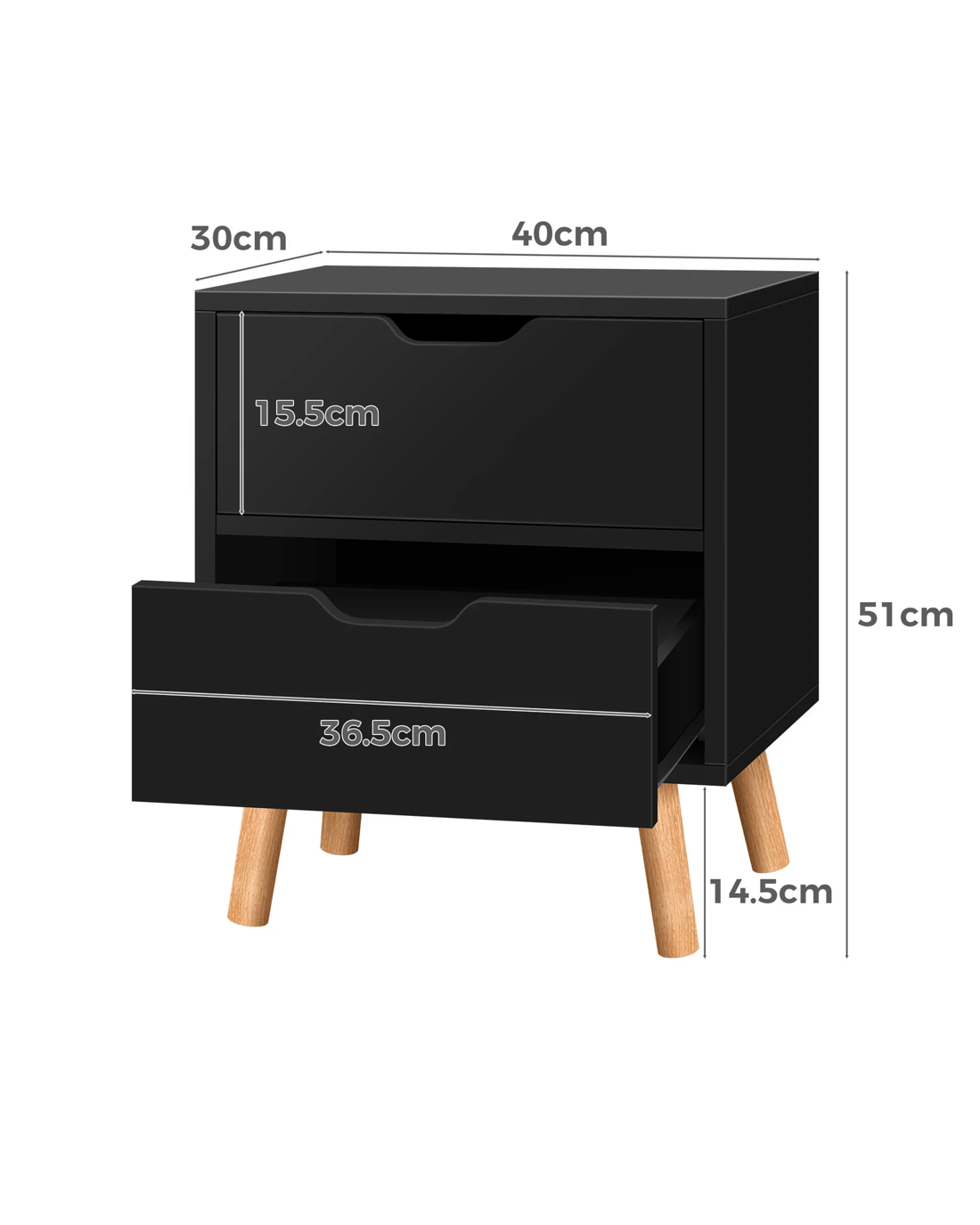 Made of superior E1 grade and 15mm thick particle board as well as extra thick wooden legs, this bedside table is designed to be highly durable and stable. Unlike some other sellers, we have no compromise on materials used. Instead of flimsy paper finish, our bedside table is well made with melamine finish. It is not only easy to maintain and clean, but also long lasting and durable. Being functional yet stylish, you will definitely love our bedside table.