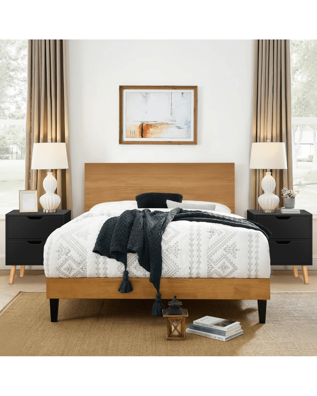 As you may or may not know, most people prefer to have two bedside tables in the bedroom because they help achieve symmetry in the design and increases storage space. Moreover, these tables can be used as side tables next to your lounge or TV stand. It can complement your contemporary home with ease.