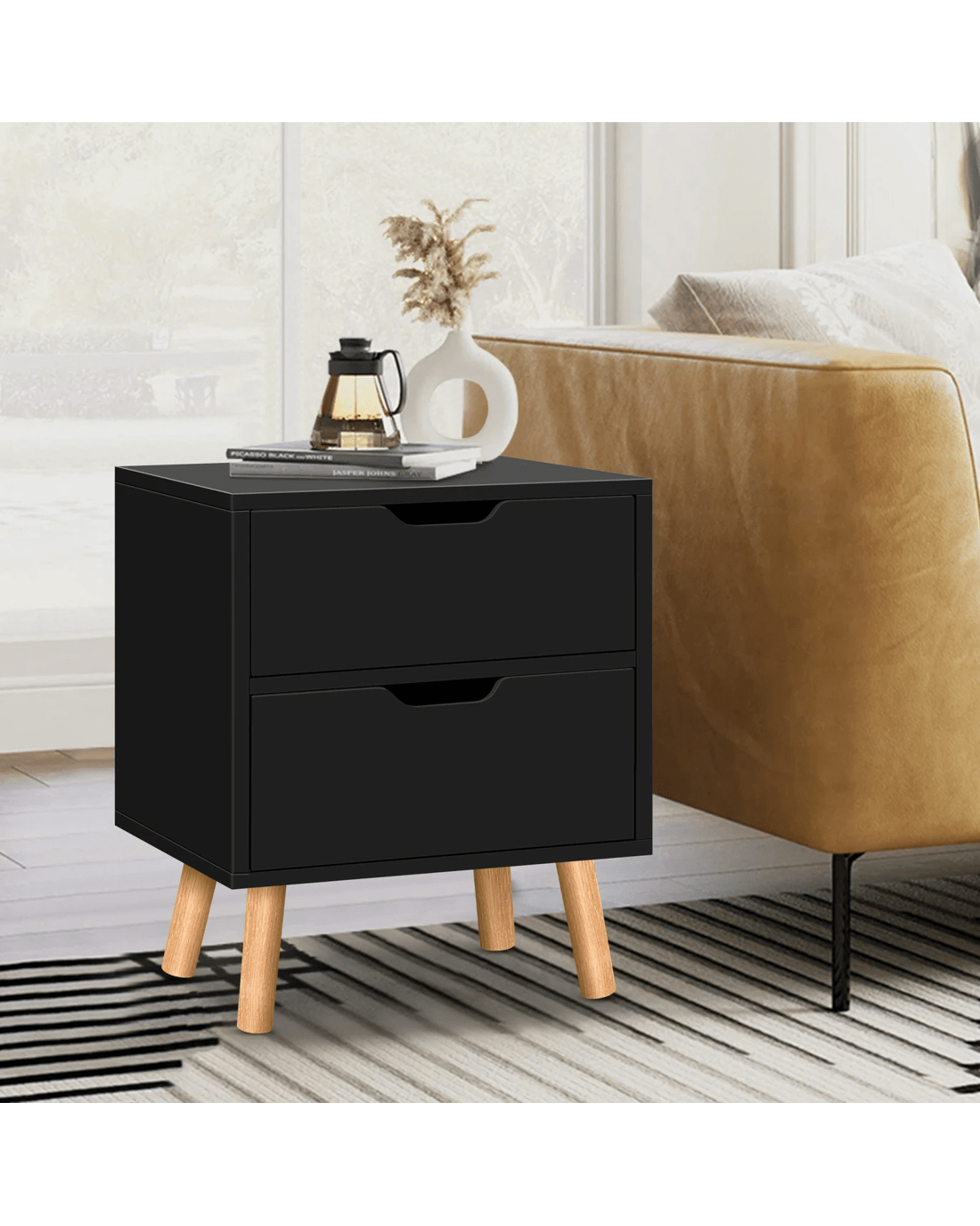 Sold by Aussie Union GroupAlfordson 2x Bedside Table Nightstand Side Table 2 Drawers - Black
