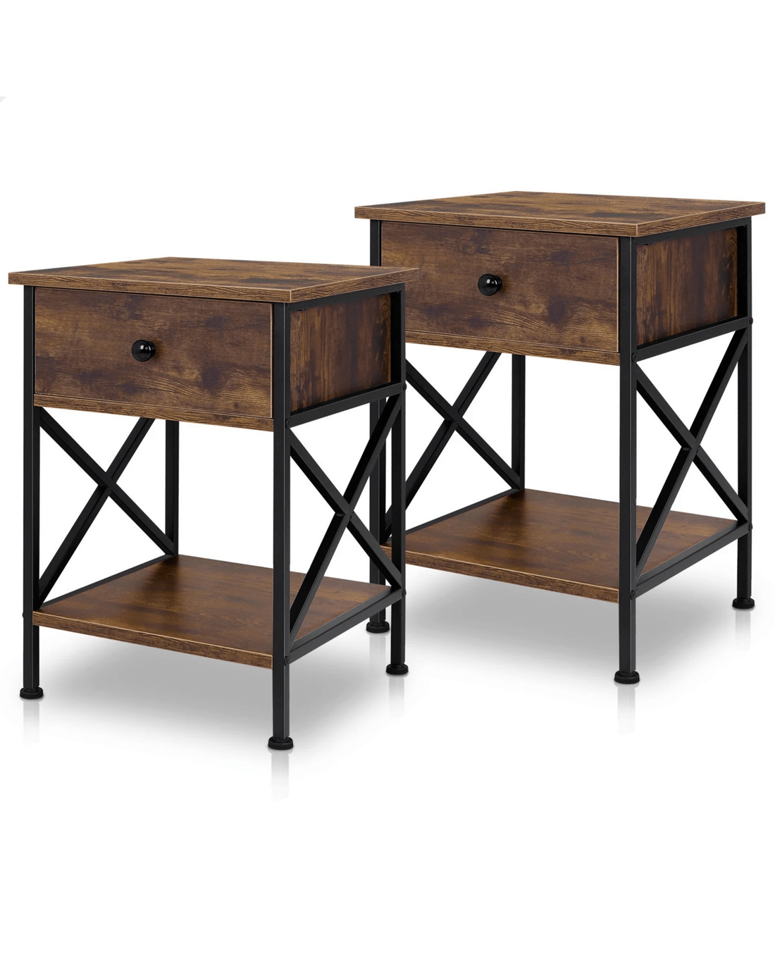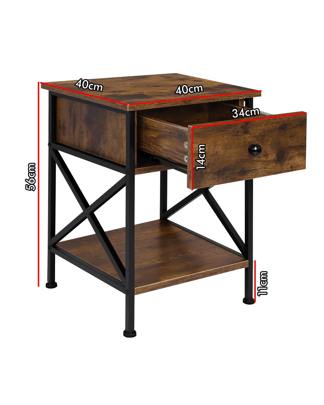 Sold by Aussie Union GroupAlfordson 2x Bedside Table Retro Nightstand 1 Drawer - Dark Oak