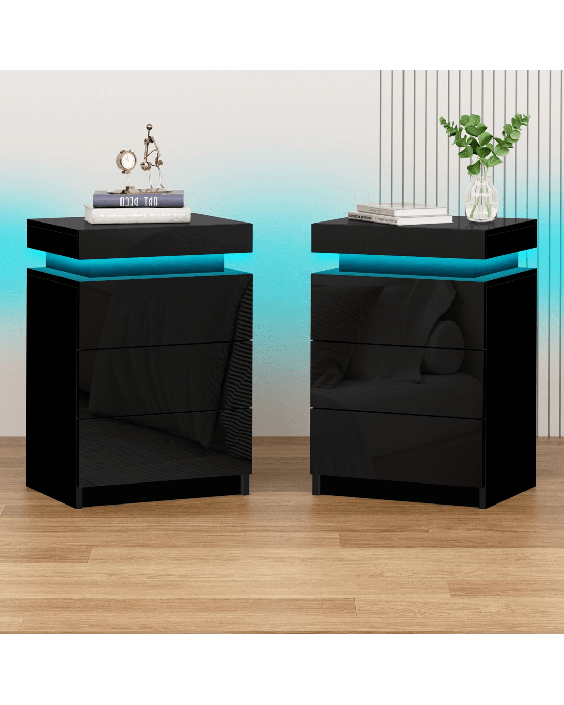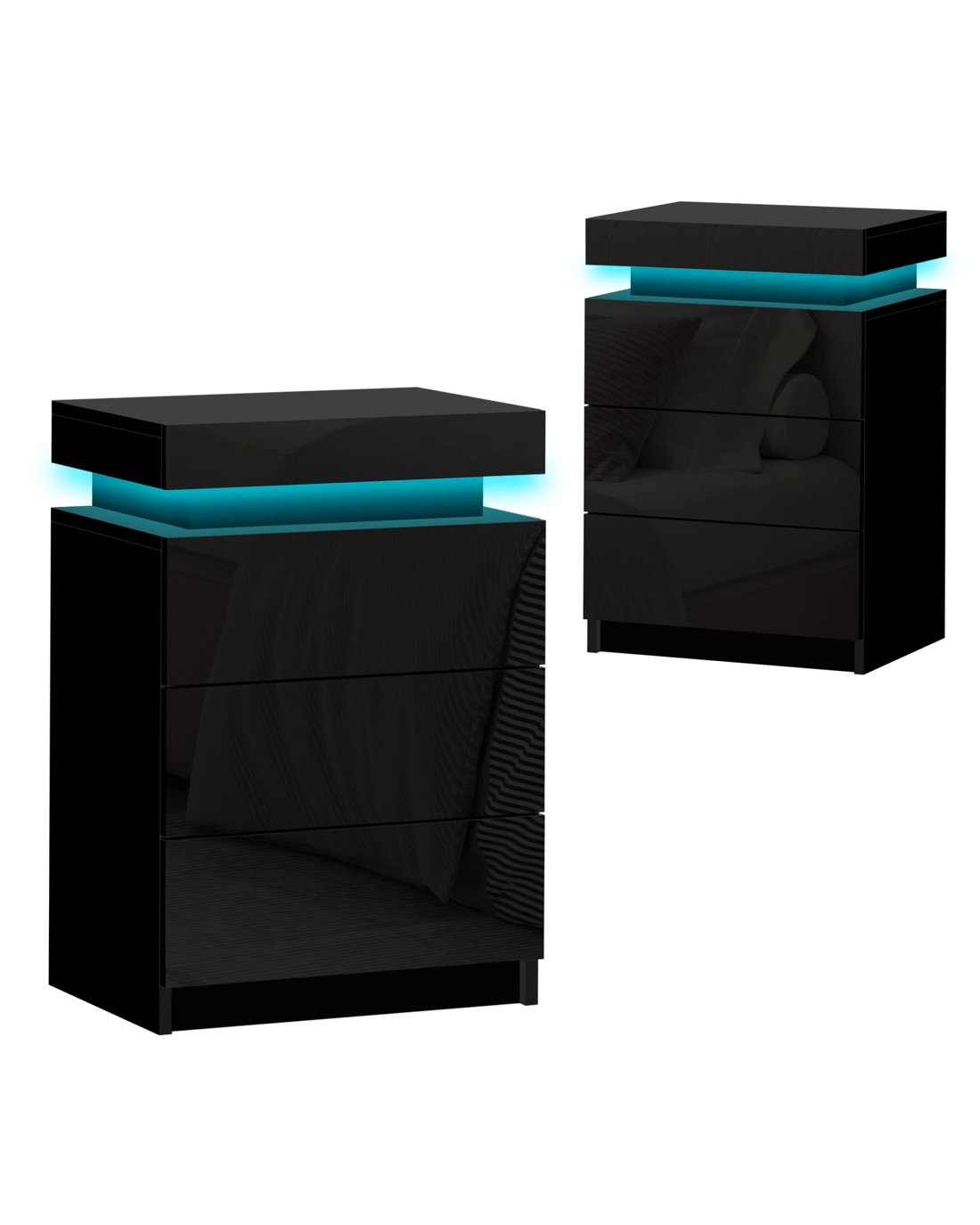 Sold by Aussie Union GroupAlfordson 2x Bedside Table RGB LED Nightstand 3 Drawers High Gloss - Black