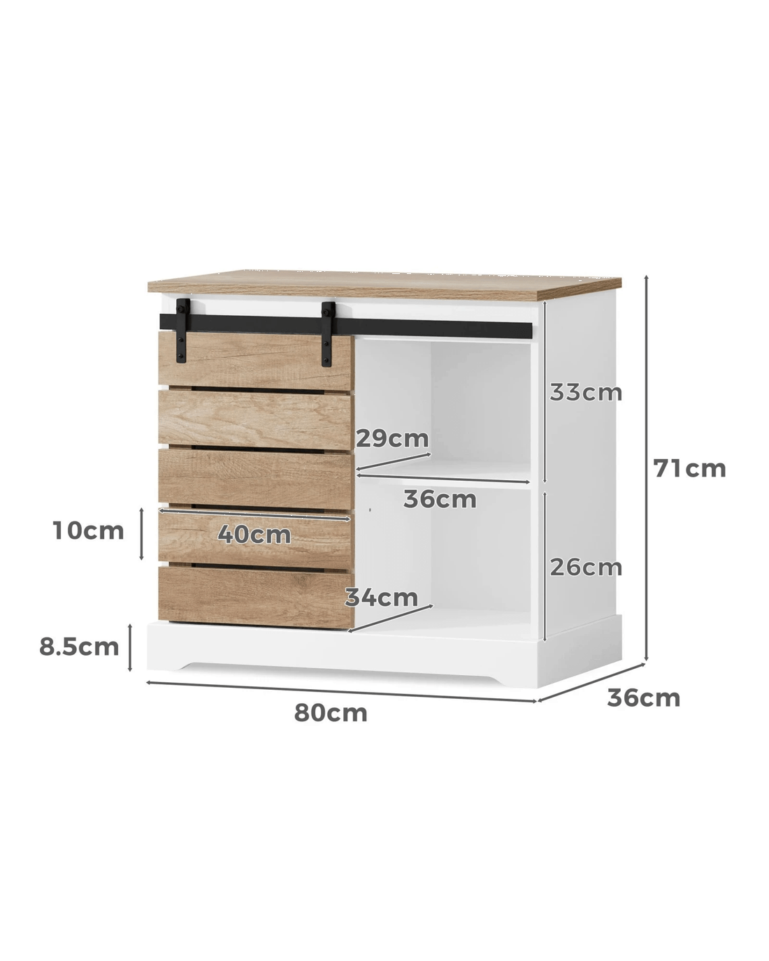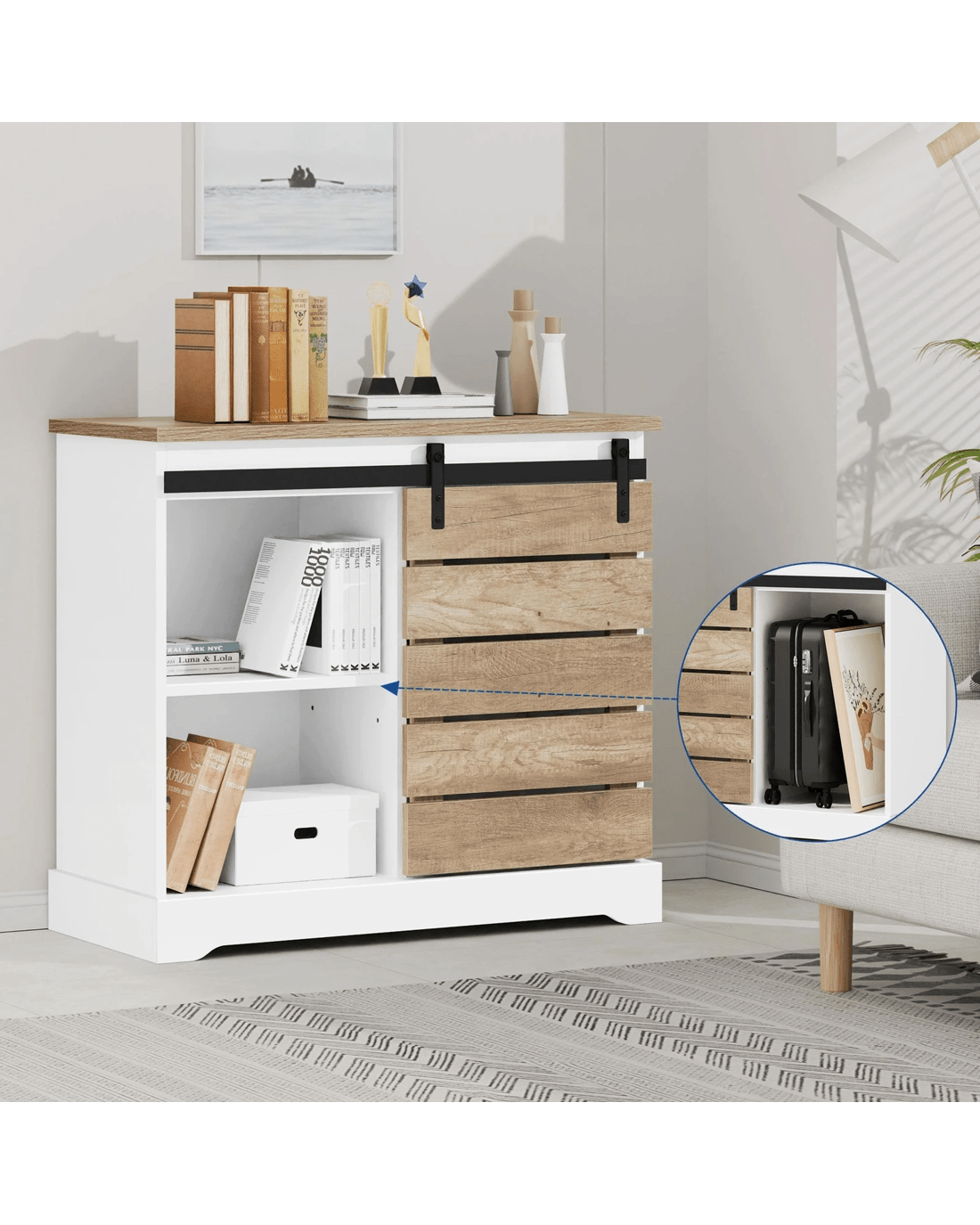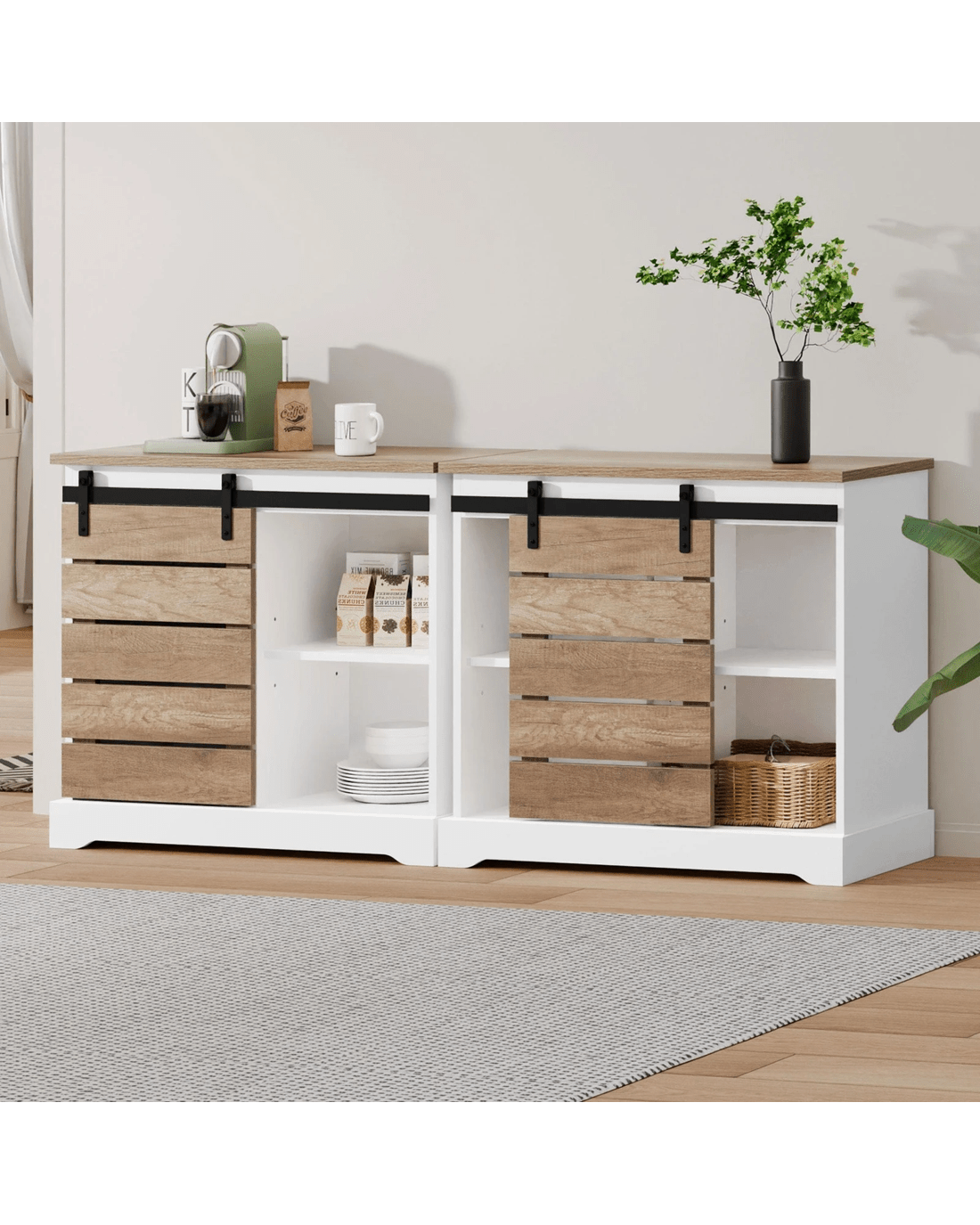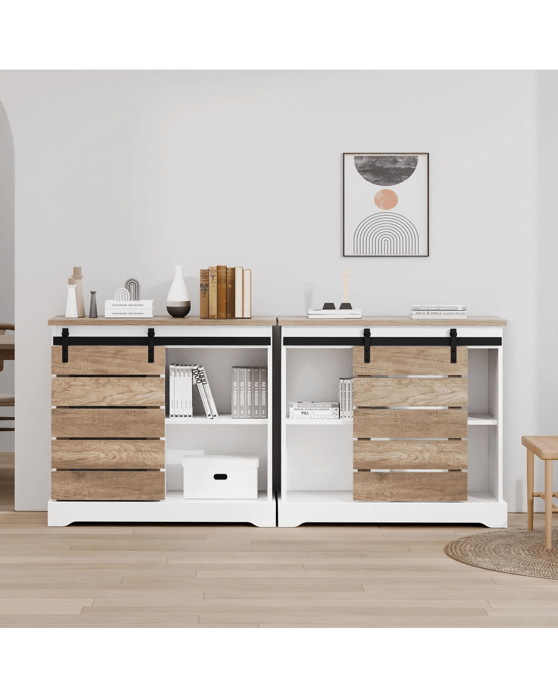 Versatile Design for Any Space - Featuring a two-tone color scheme and elegant wooden sliding doors, this sideboard seamlessly blends with modern and rustic interiors. Its versatile design allows it to complement a variety of d??cor styles, making it a perfect fit for any room.