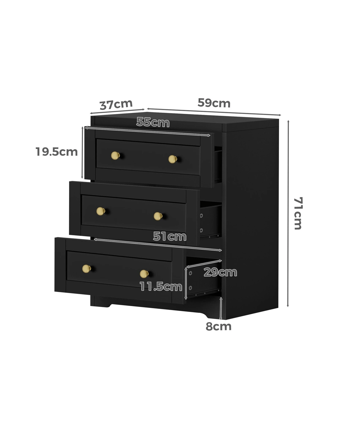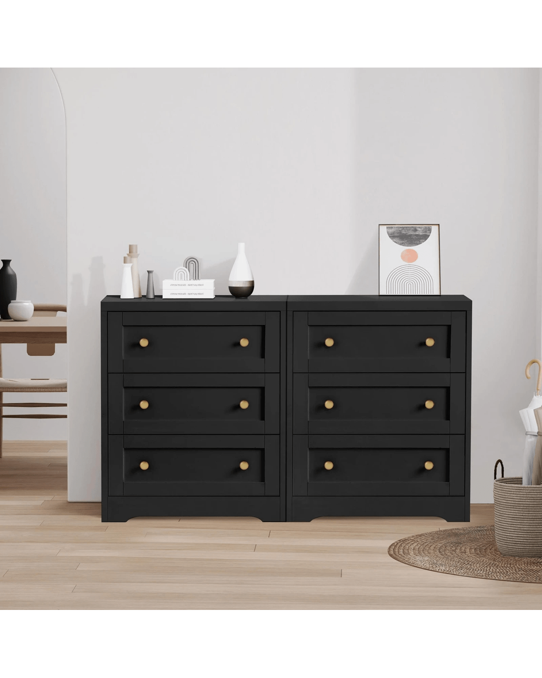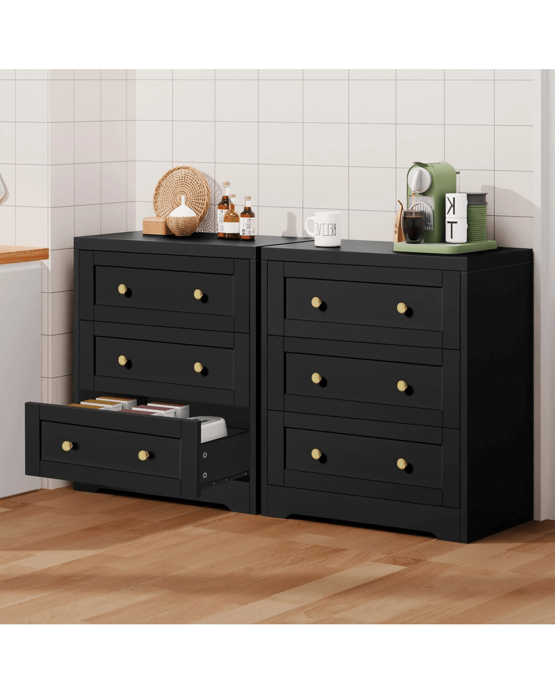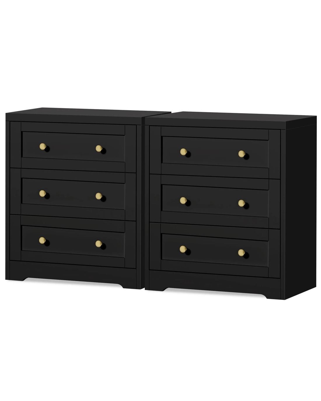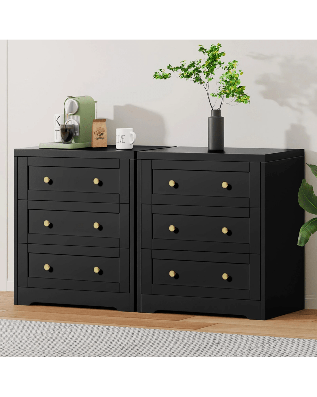 Alfordson 2x Chest of Drawers Storage Cabinet Bedside Table Hamptons Drawers - Black