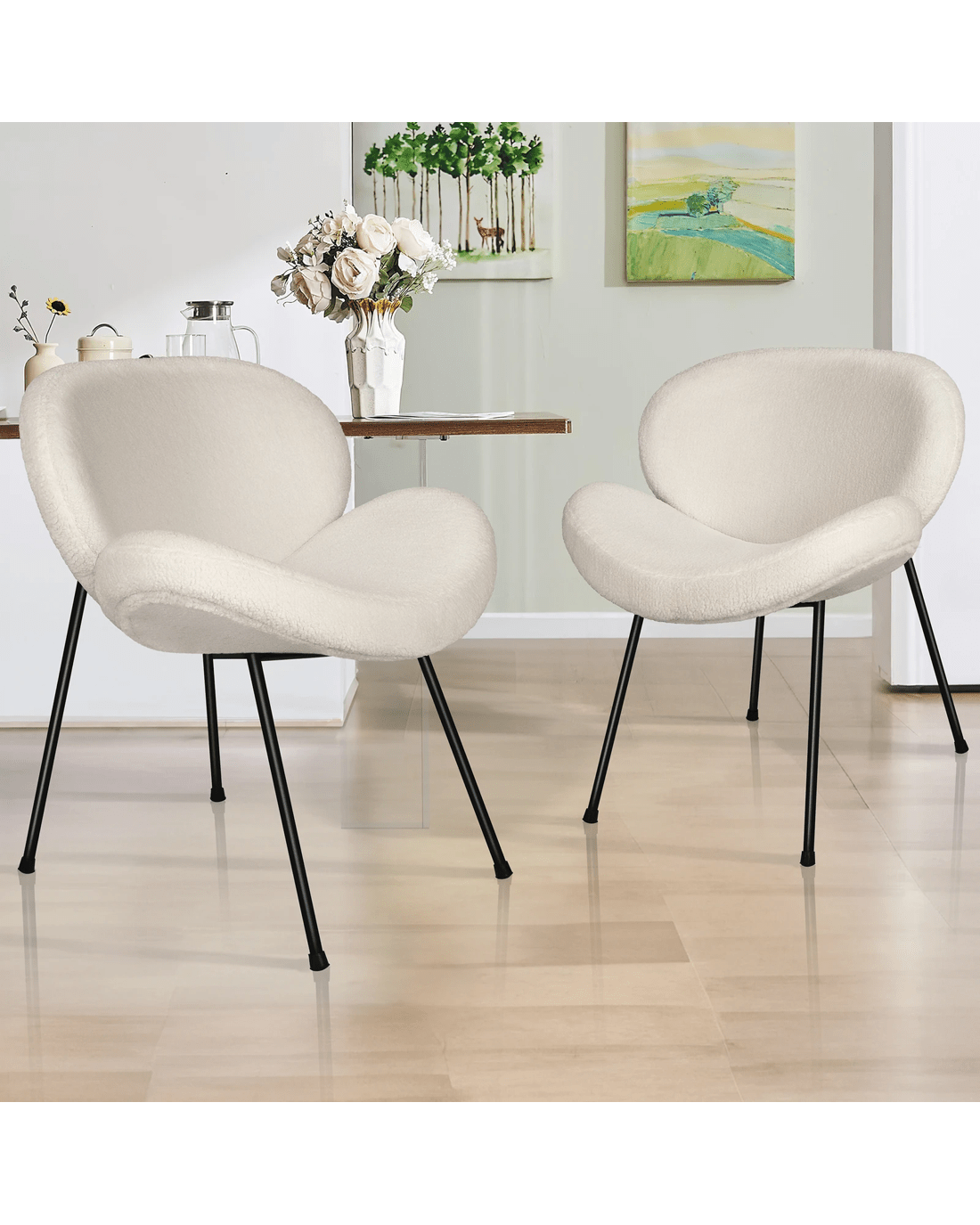 Sold by Aussie Union GroupAlfordson 2x Dining Chair Armchair Accent Kitchen Padded Living Room Sherpa - White