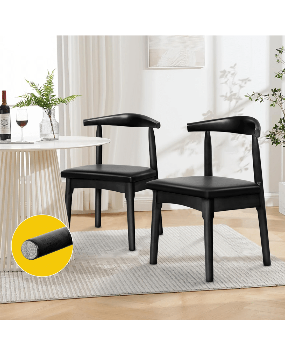 Sold by Aussie Union GroupAlfordson 2x Dining Chair Kitchen Lounge Cafe Retro Wood PU Leather Seat - Black