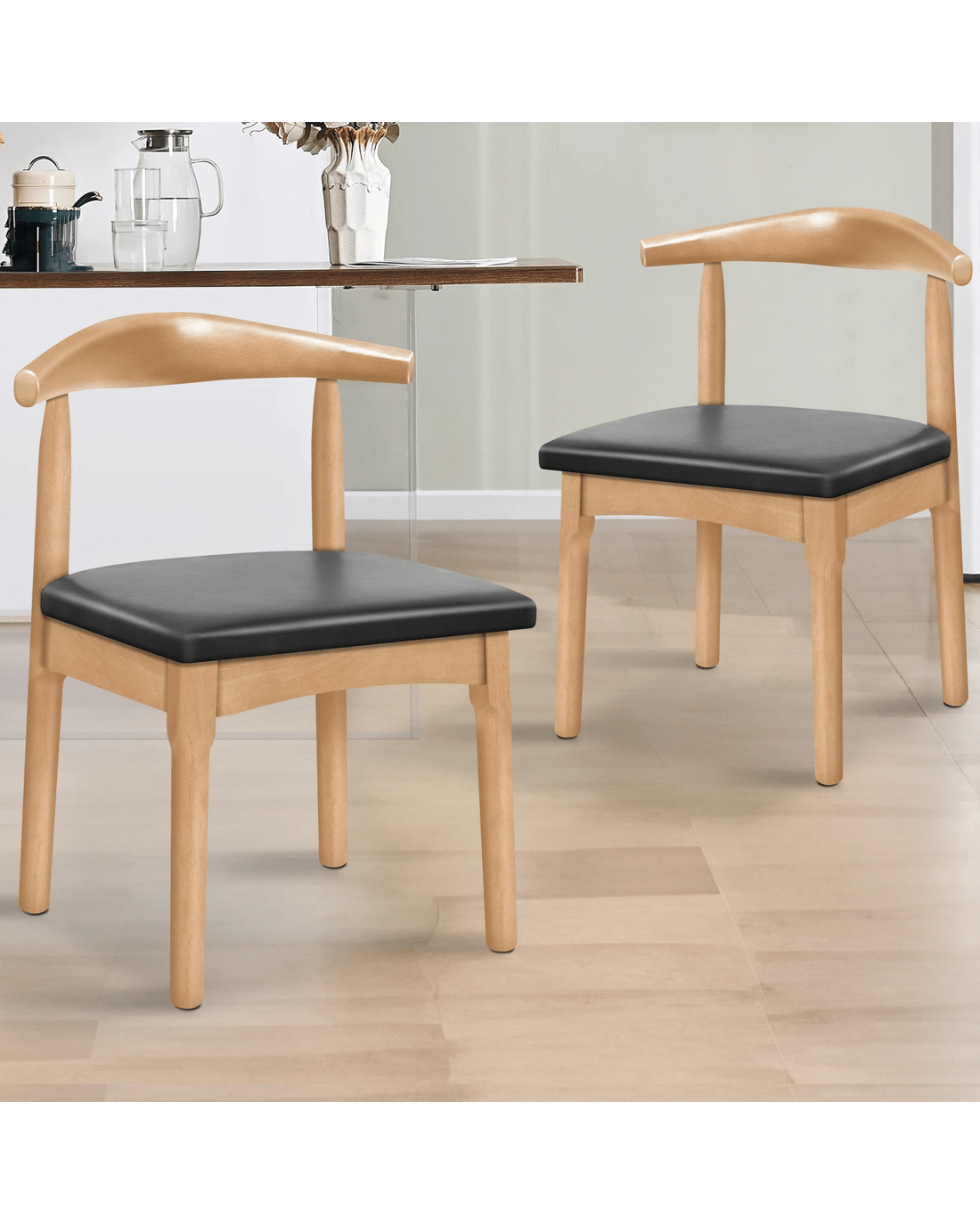 Alfordson 2x Dining Chair Kitchen Lounge Cafe Retro Wood PU Leather Seat - Oak