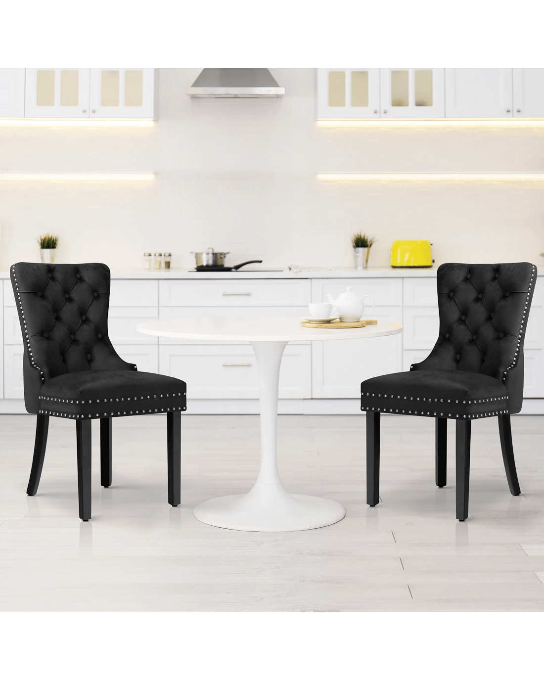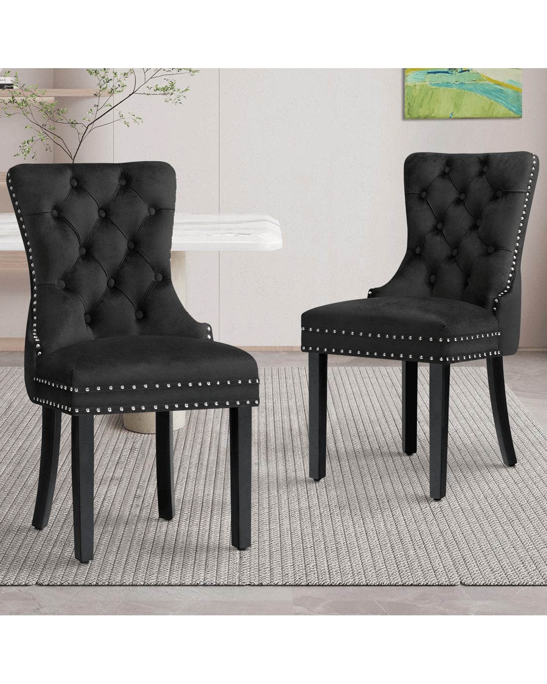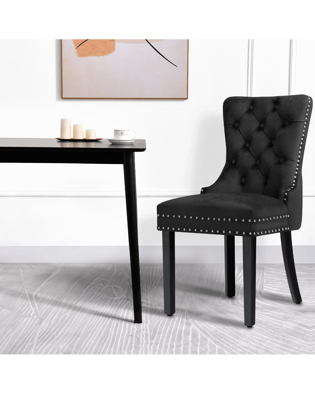 Sold by Aussie Union GroupAlfordson 2x Dining Chair Kitchen Lounge Retro Button Tufted Wooden Velvet - Black