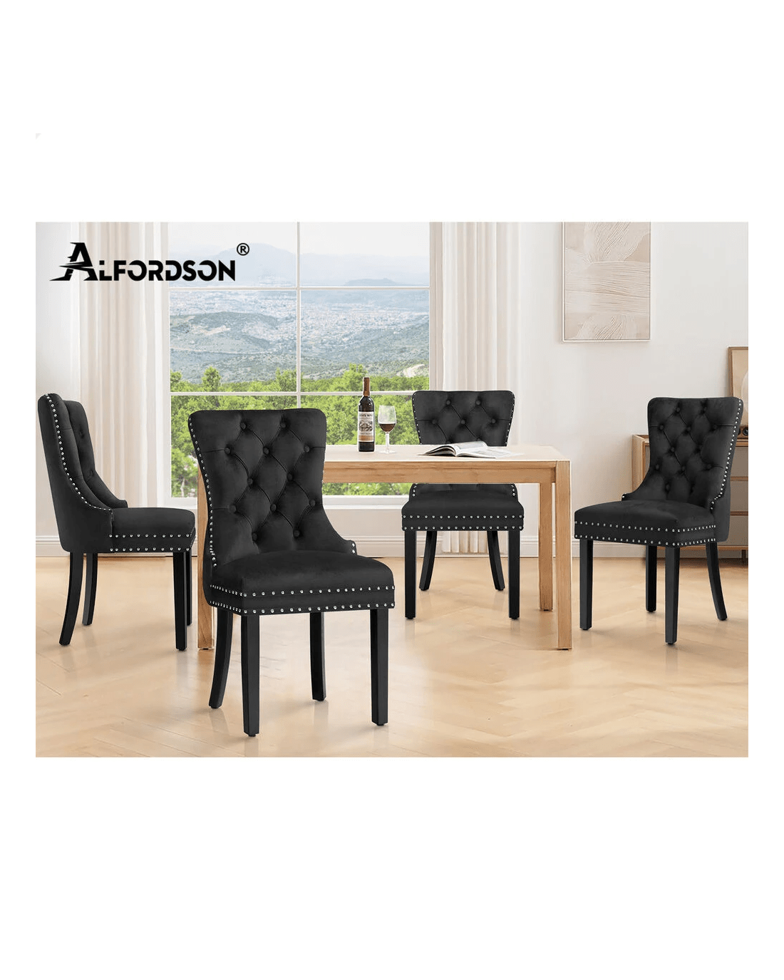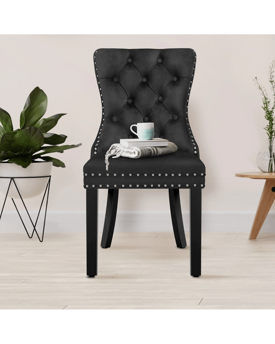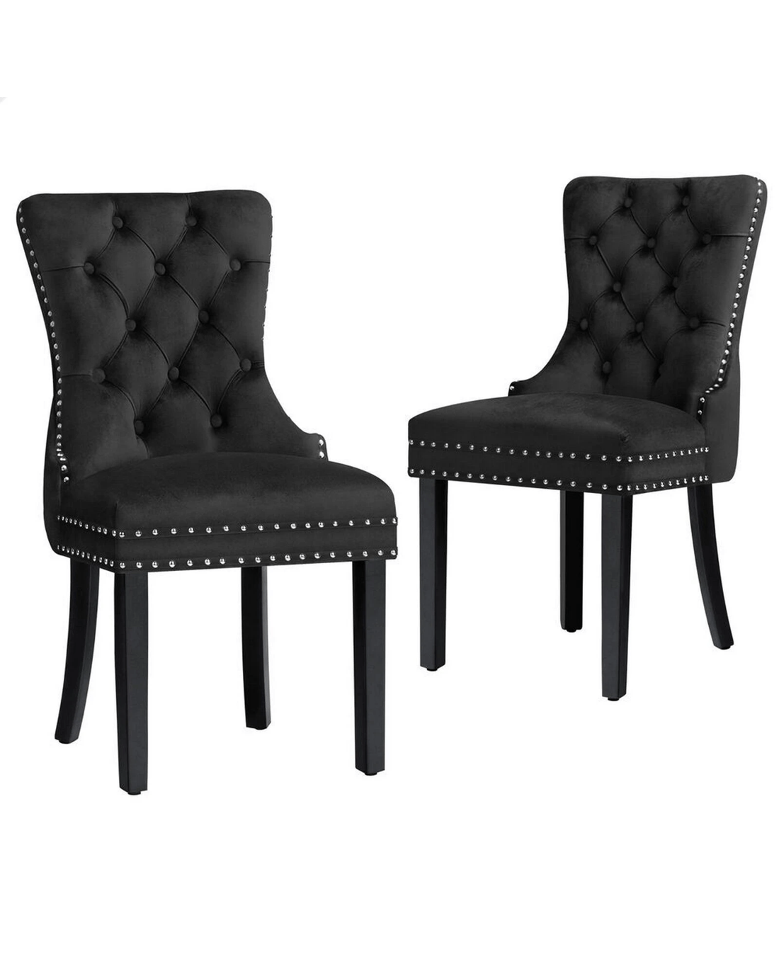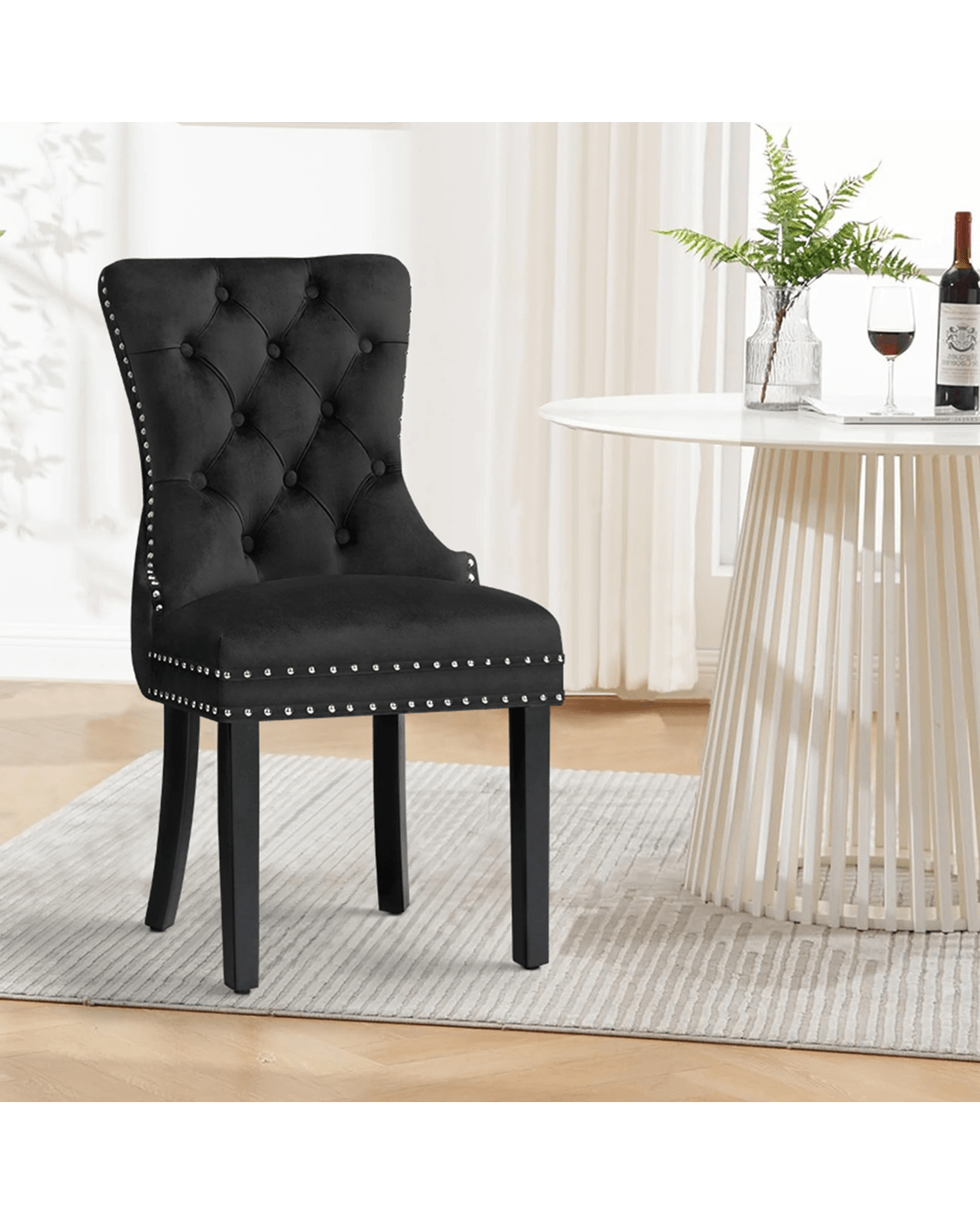 Sold by Aussie Union GroupAlfordson 2x Dining Chair Kitchen Lounge Retro Button Tufted Wooden Velvet - Black
