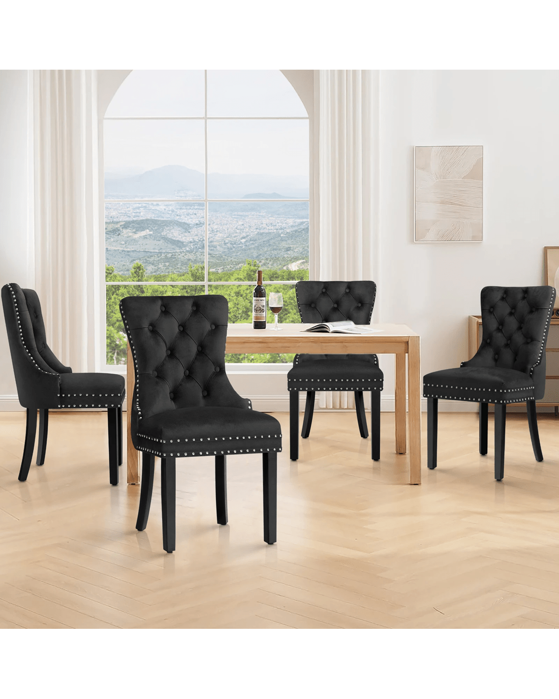 Ultimate comfort - Upholstered in premium velvet fabric, the seat and backrest are generously padded with high-density foam, providing exceptional support and comfort. Combined with its ergonomically curved high-back design, our chair offers a delightful seating experience so that you and your guests can enjoy long, leisurely meals without discomfort.