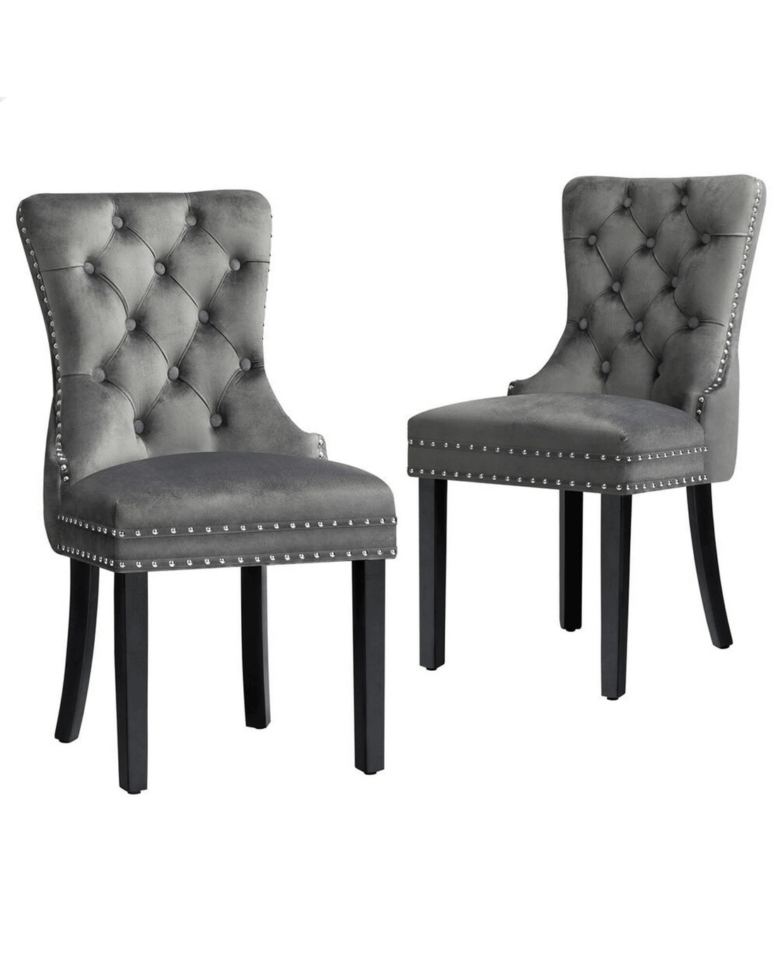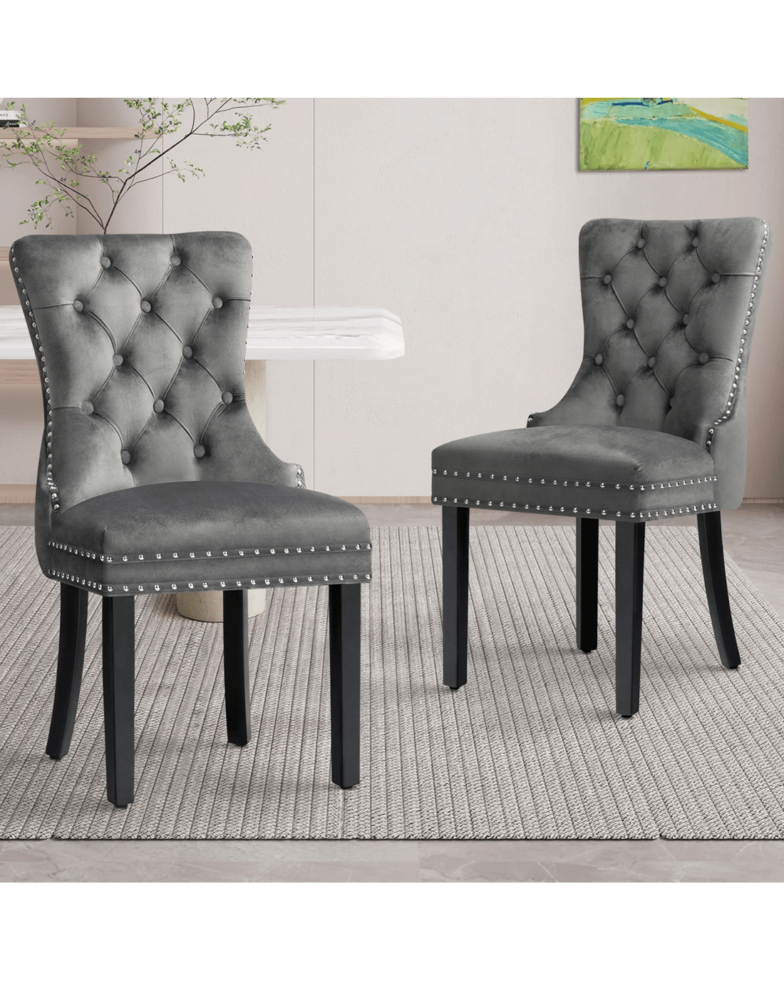 Sold by Aussie Union GroupAlfordson 2x Dining Chair Kitchen Lounge Retro Button Tufted Wooden Velvet - Grey