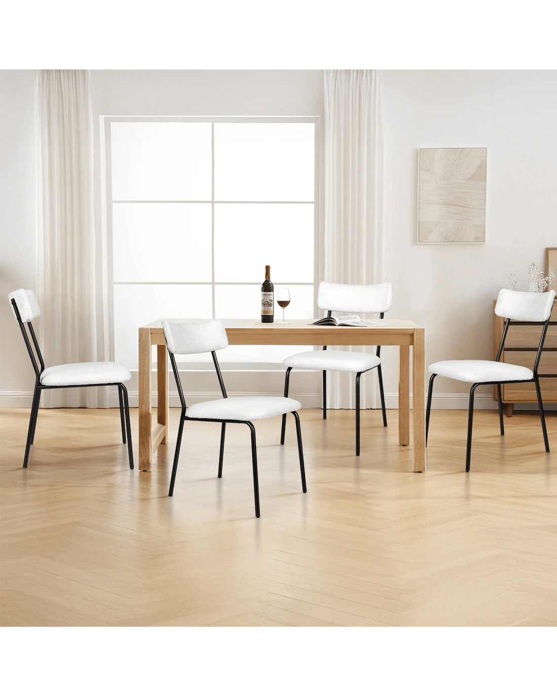 Ultimate comfort - Upholstered in premium sherpa fabric, the seat and backrest are generously padded with high-density foam, providing exceptional support and comfort. Combined with its ergonomic design, our chair offers a delightful seating experience so that you and your guests can enjoy long, leisurely meals without discomfort.