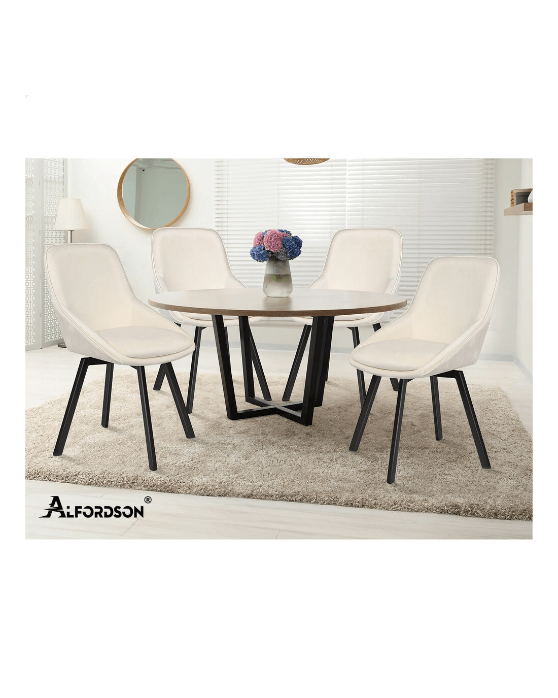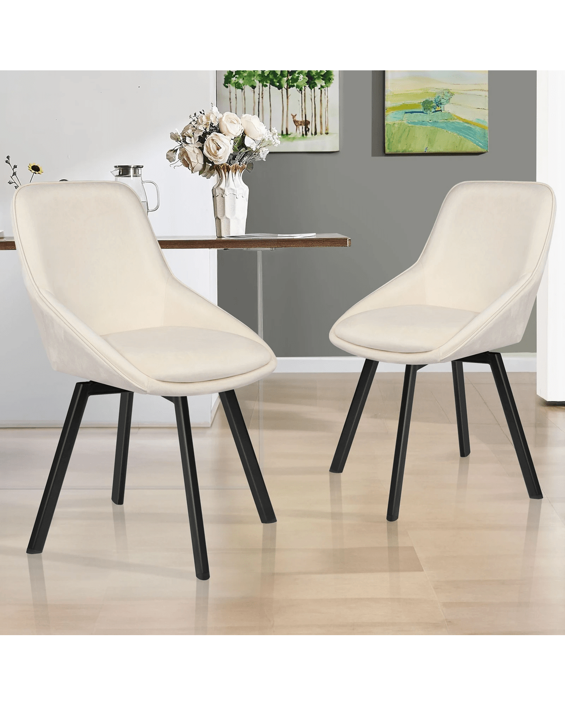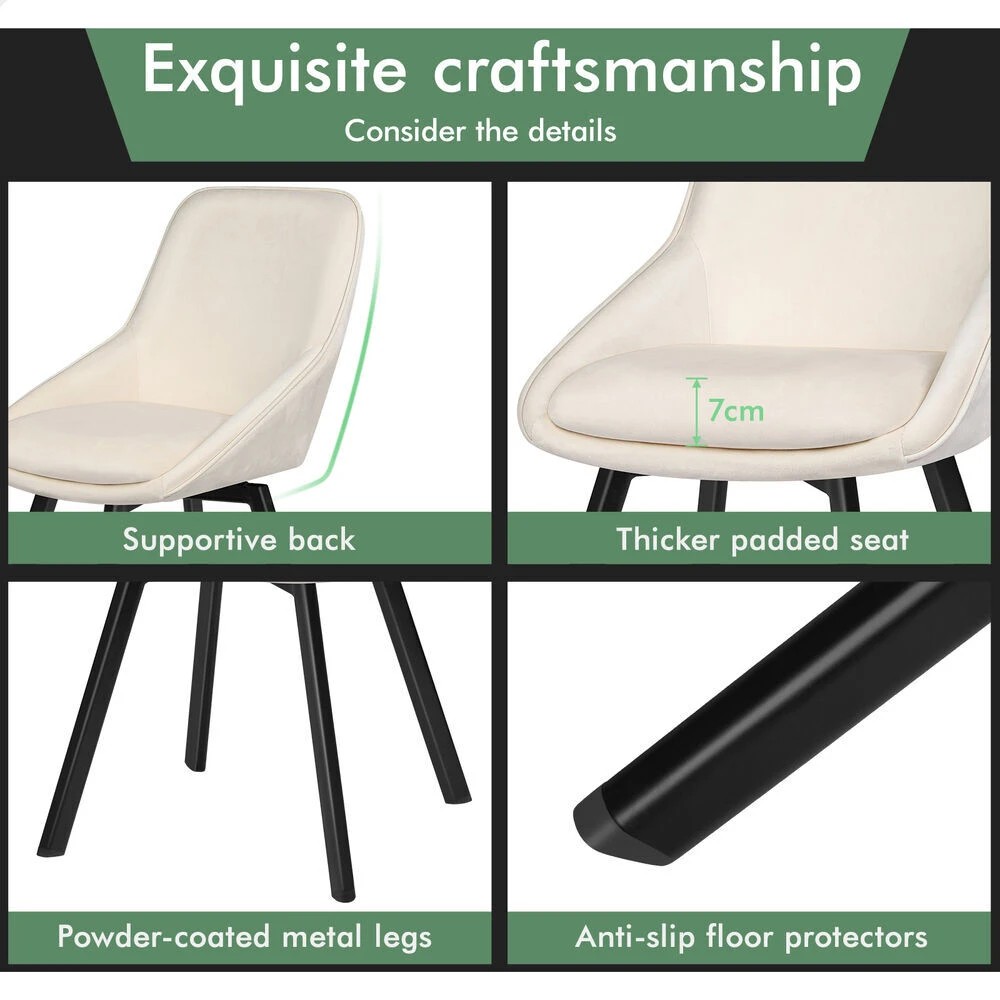 Alfordson 2x Dining Chairs Accent Kitchen Swivel Lounge Padded Seat Velvet - Beige