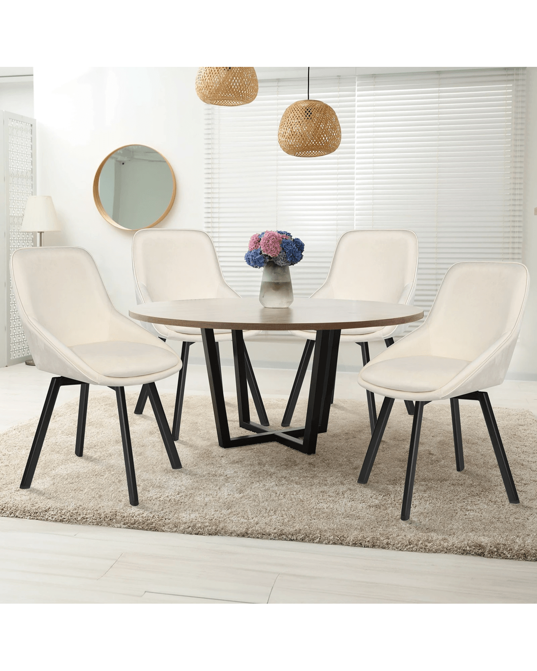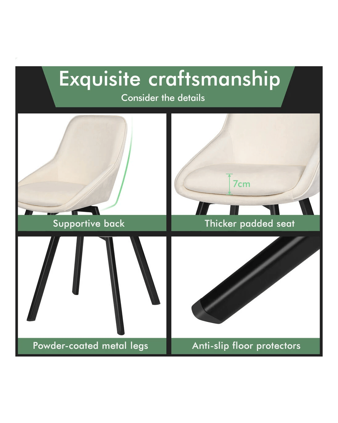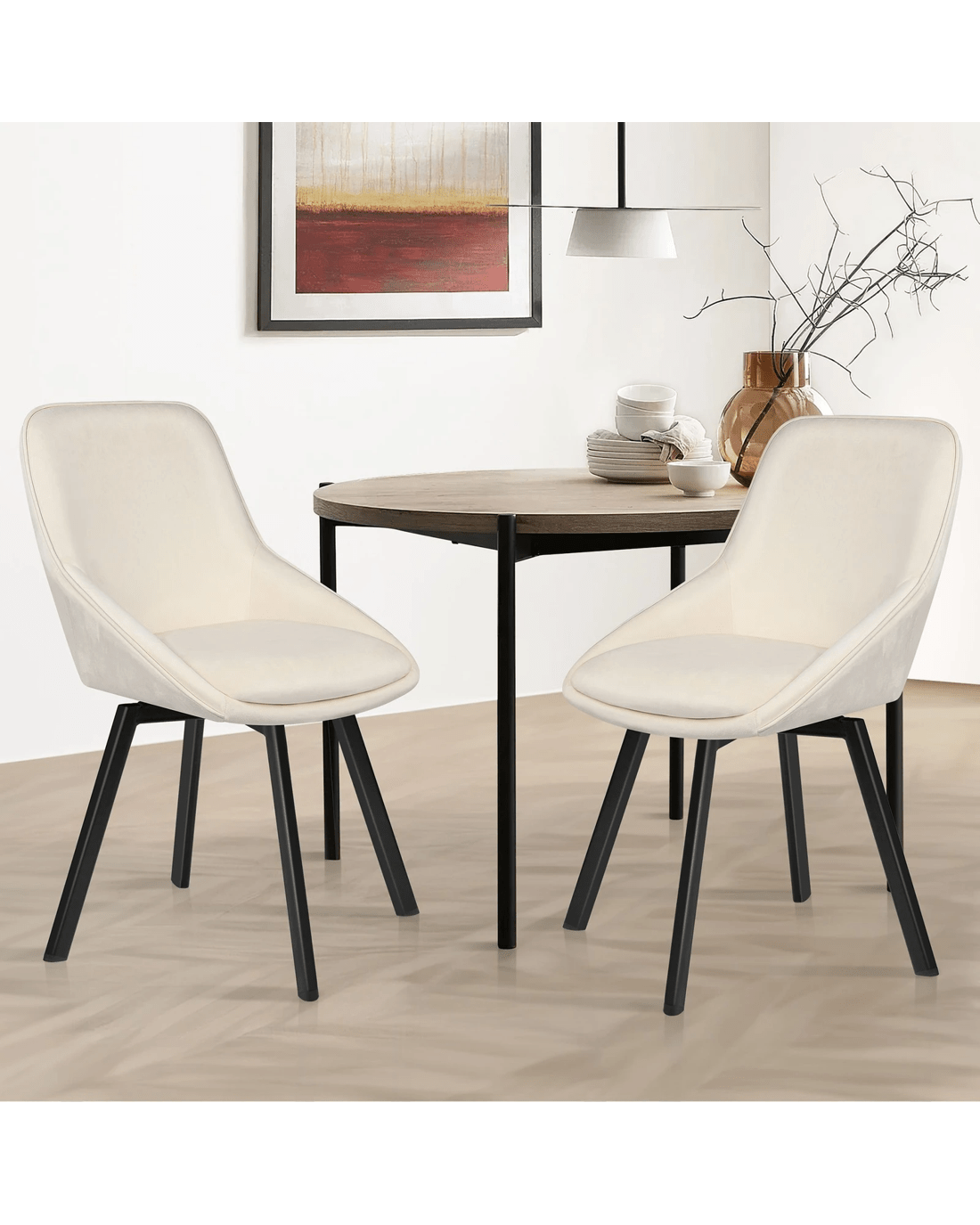 Alfordson 2x Dining Chairs Accent Kitchen Swivel Lounge Padded Seat Velvet - Beige