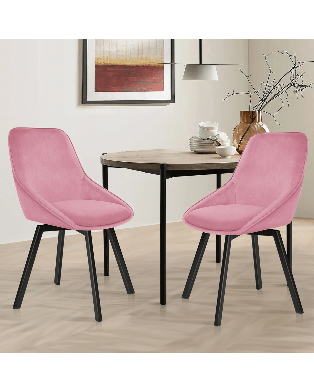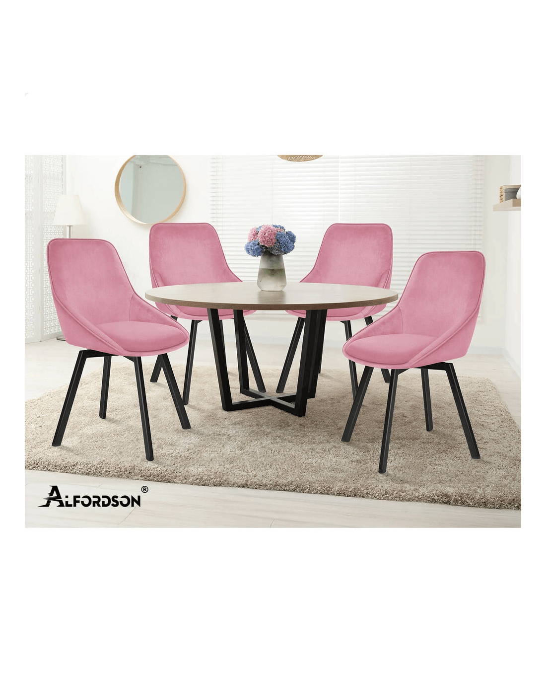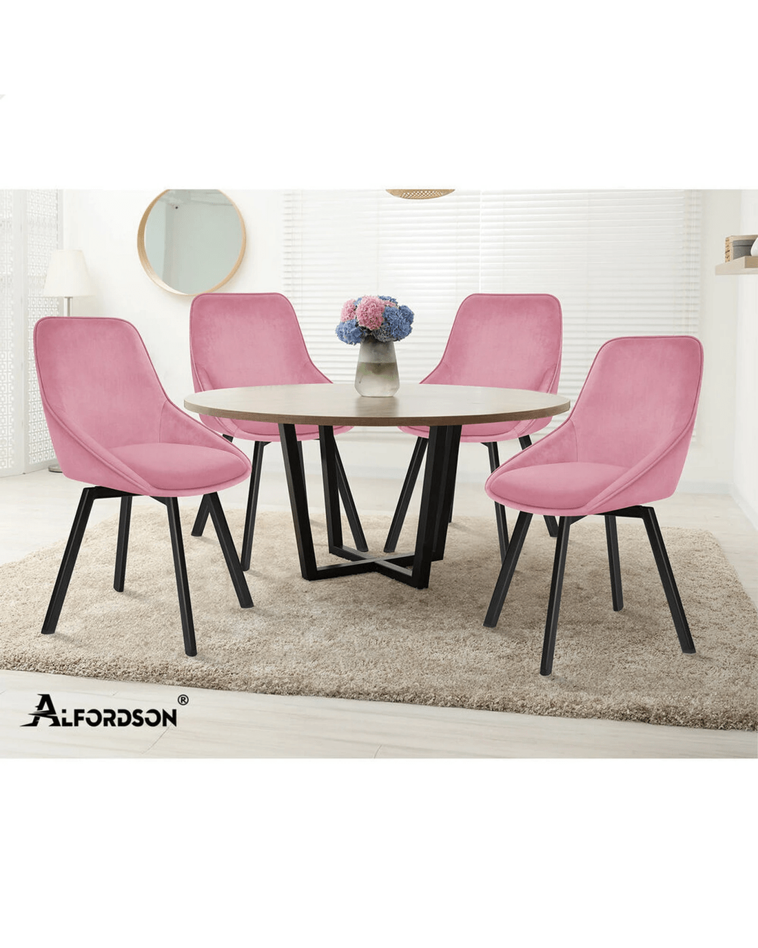 Alfordson 2x Dining Chairs Accent Kitchen Swivel Lounge Padded Seat Velvet - Pink
