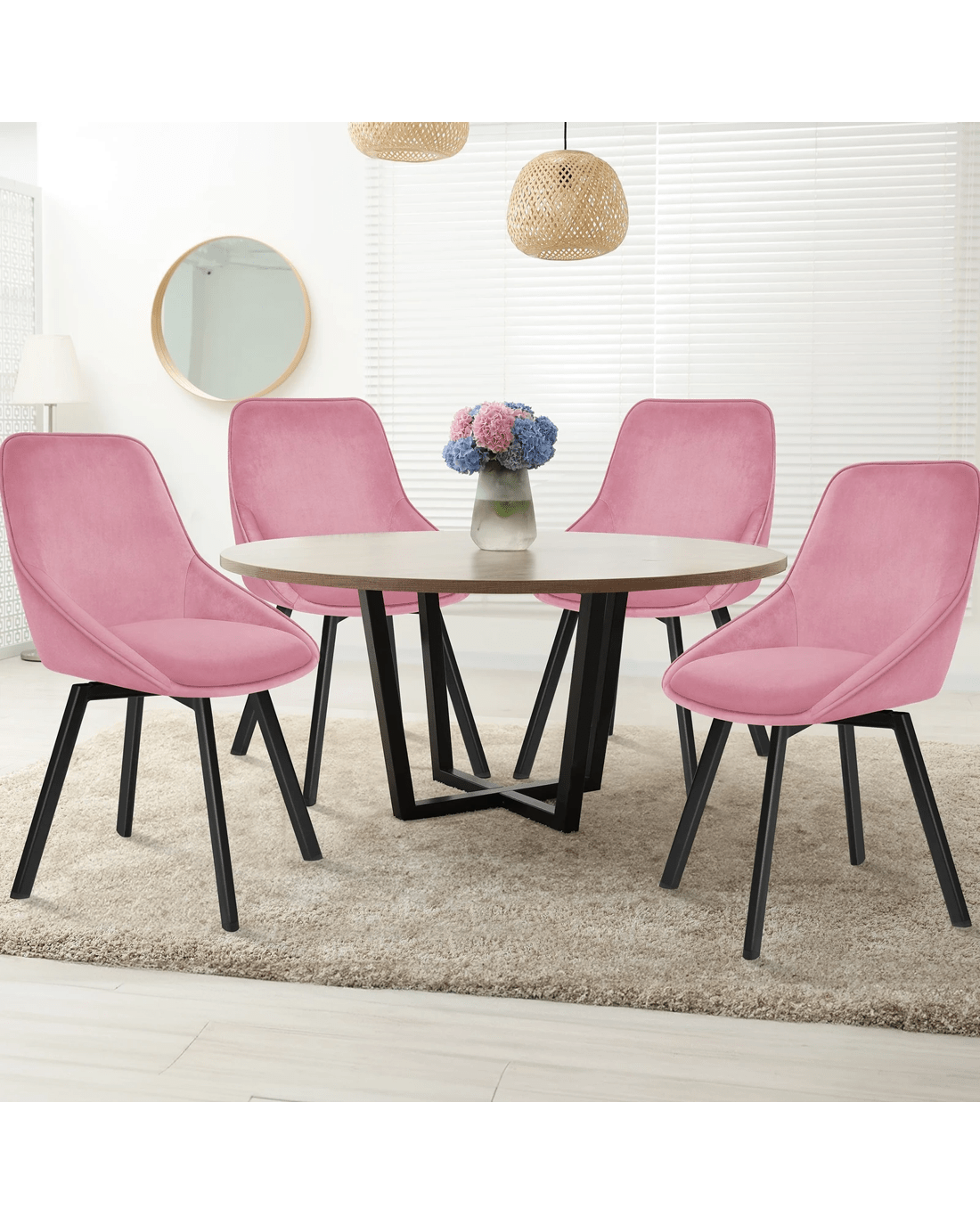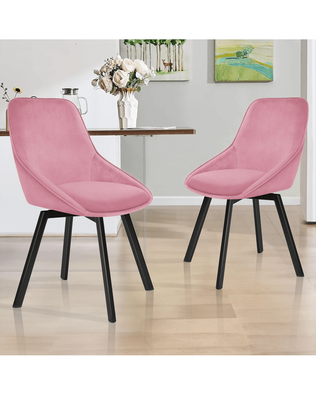 Designed with a blend of comfort and elegance, this accent chair invites you to dine in relaxation. Upholstered in premium velvet fabric, the seat and backrest are padded with high resilient foam. Combining its curved backrest, the kitchen chair offers a delightful seating experience. Together with its heavy duty and swivel mechanism, this chair can be rotated all around for easy facing in any direction, which makes your conversations smoothie.