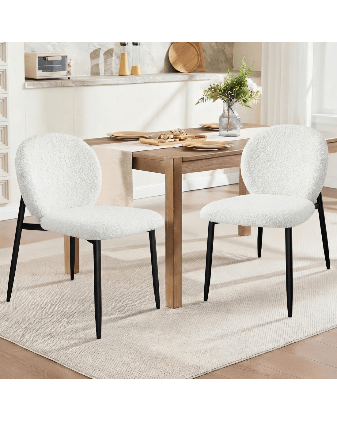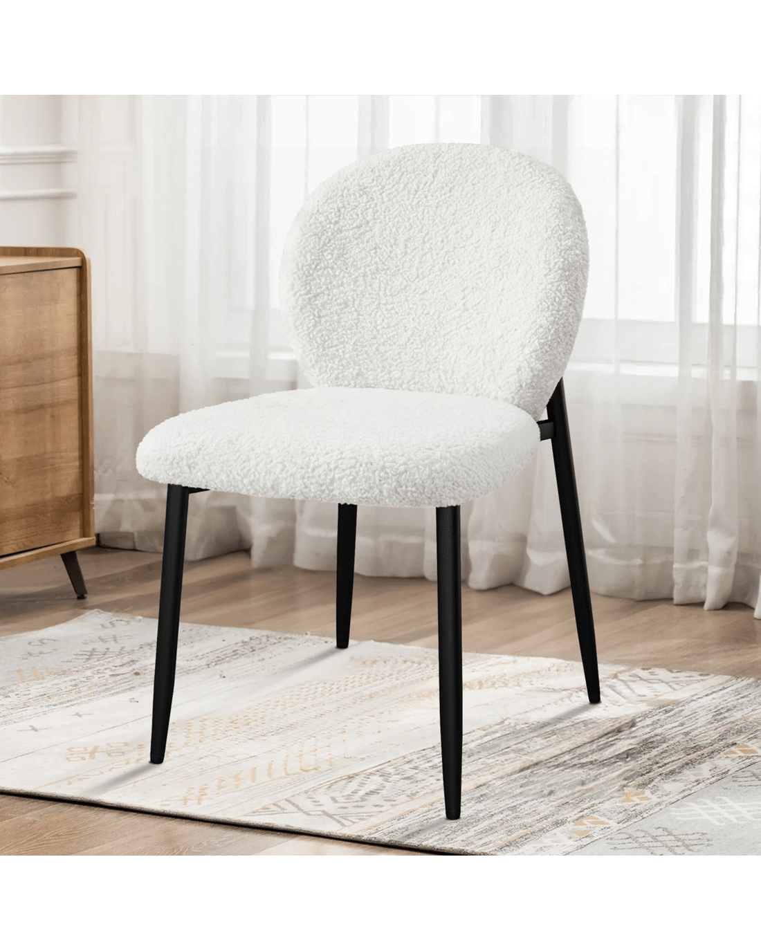 Ultimate comfort - Upholstered in premium sherpa fabric, the seat and backrest are generously padded with high-density foam, providing exceptional support and comfort. Combined with its ergonomic design, our chair offers a delightful seating experience so that you and your guests can enjoy long, leisurely meals without discomfort.