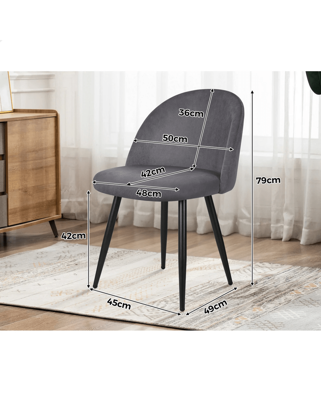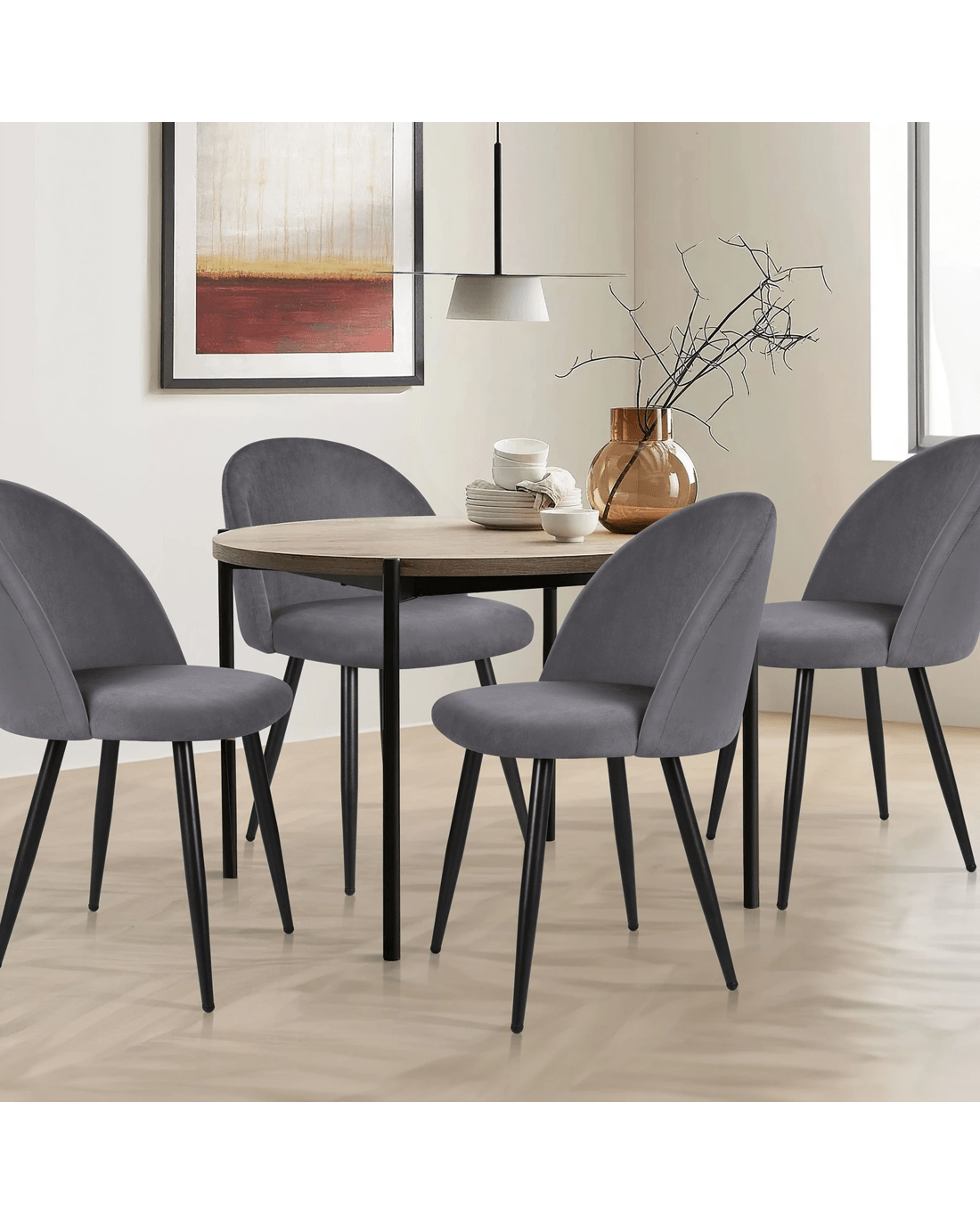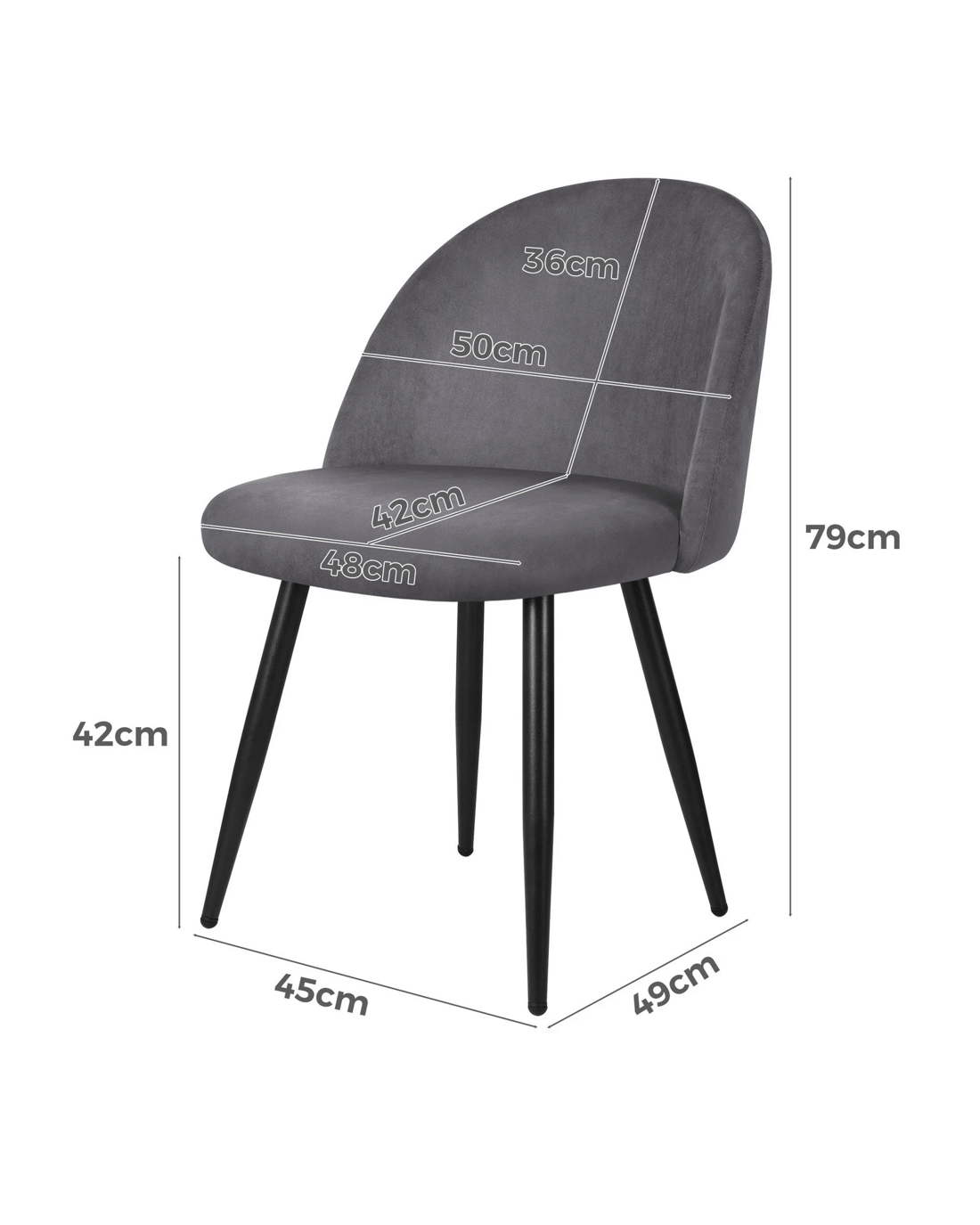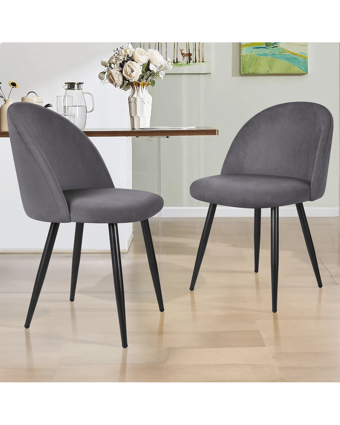 Designed with a blend of comfort and elegance, this accent chair invites you to dine in relaxation. Upholstered in premium velvet fabric, the seat and backrest are padded with high-resilient foam. Combining its curved backrest, the kitchen chair offers a delightful seating experience.