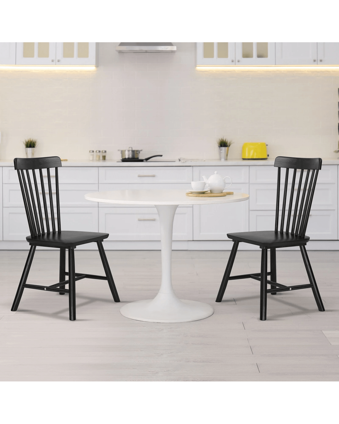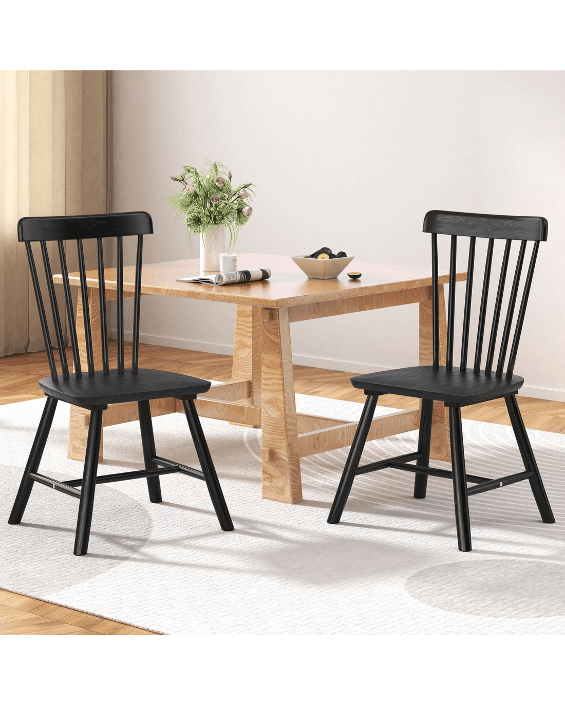 Sold by Aussie Union GroupAlfordson 2x Dining Chairs Kitchen Lounge Cafe Retro Solid Wood Modern - Black