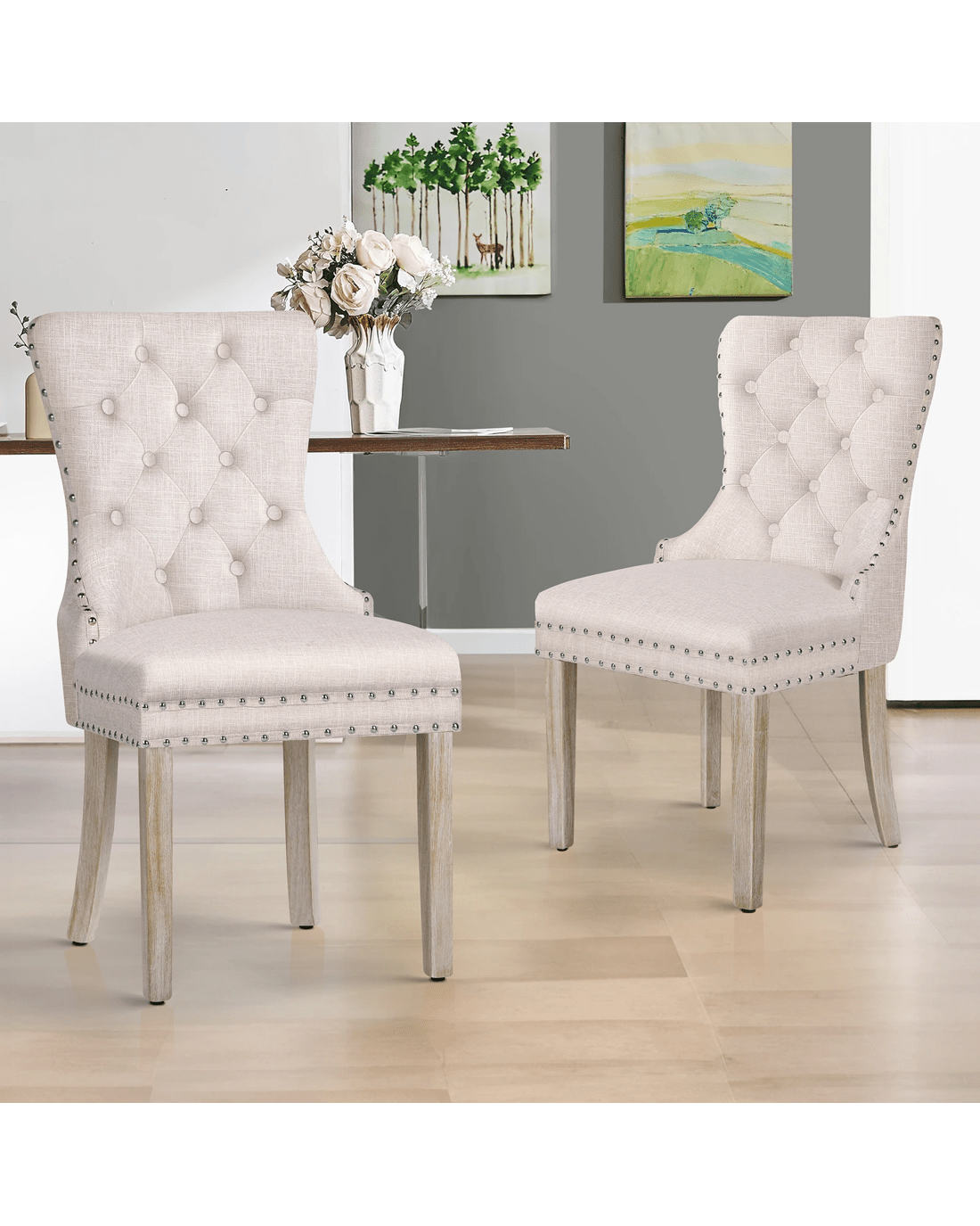 Sold by Aussie Union GroupAlfordson 2x Dining Chairs Kitchen Lounge Padded Diamond Tufted Fabric - Beige